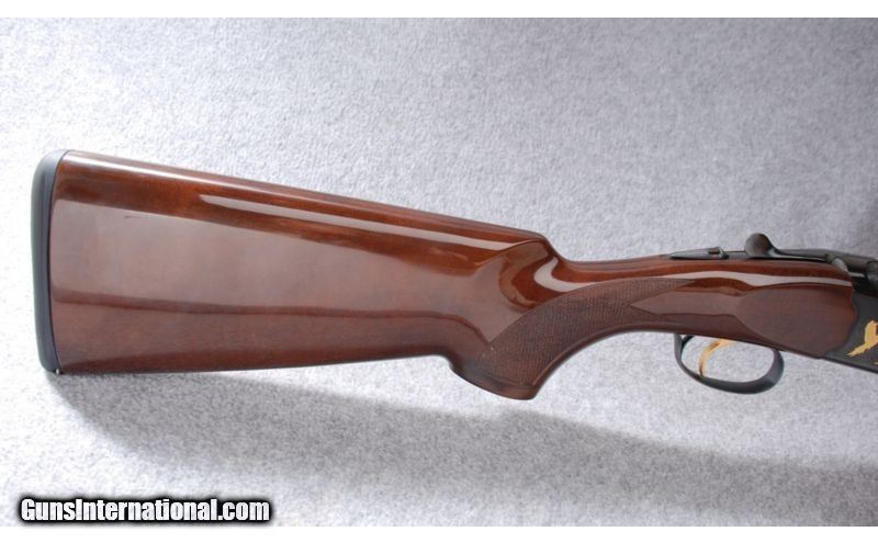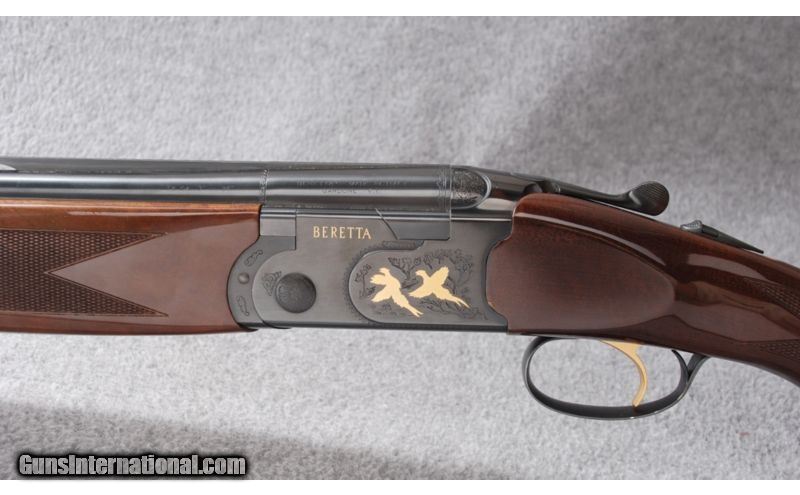 Description: . Not the original Beretta box SOLD Caliber Info: 12 Ga. Chambers: 3 Metal Condition: Insignificant handling marks Wood Condition: Minor handling marks Bore Condition: Mirror bright Barrels: 28 Triggers: Single Selective. Mechanical. Stock: Gloss Walnut with checkered pistol grip Stock Dimensions: 14 5/8" LOP: 1 1/2" DAC: 2" DAH Fore End: Checkered gloss Walnut with schnabel tip Butt Pad: Rubber Weight: 7 Lbs. 6 Oz. Sights: Brass bead Chokes: Interchangeable. Full and Modified in gun. Extras: Box Item Location: Billings, MT |