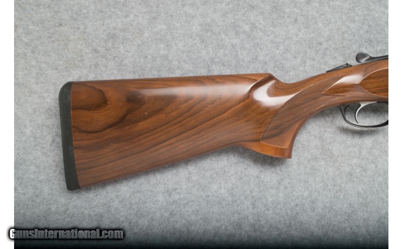 Description: Used. SOLD Caliber Info: 12 Ga. Chambers: 3 Metal Condition: Excellent Wood Condition: Very good; a few handling marks Bore Condition: Clean and bright Barrels: 29 1/2" - Ported Triggers: Smooth silver plated; single selective Stock: Checkered pistol grip walnut Stock Dimensions: LOP - 14 1/2 Fore End: Checkered walnut Butt Pad: Black rubber pad Weight: 7 lbs. 14 oz. Sights: White Bradley front Chokes: Choke tubes Extras: (8) choke tubes; no box or case. Item Location: Sun Prairie, WI |