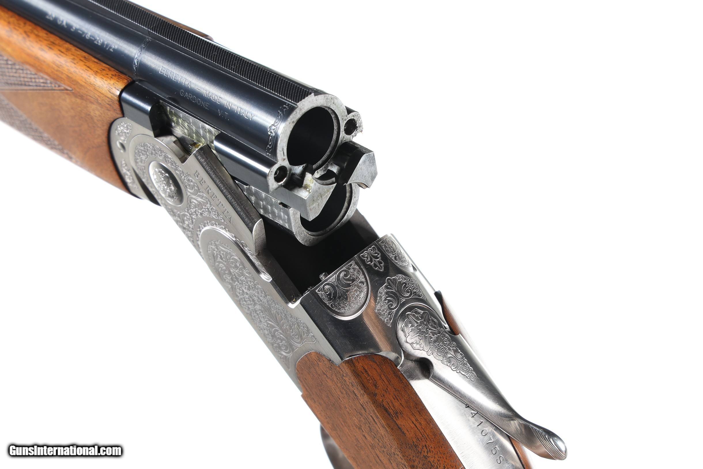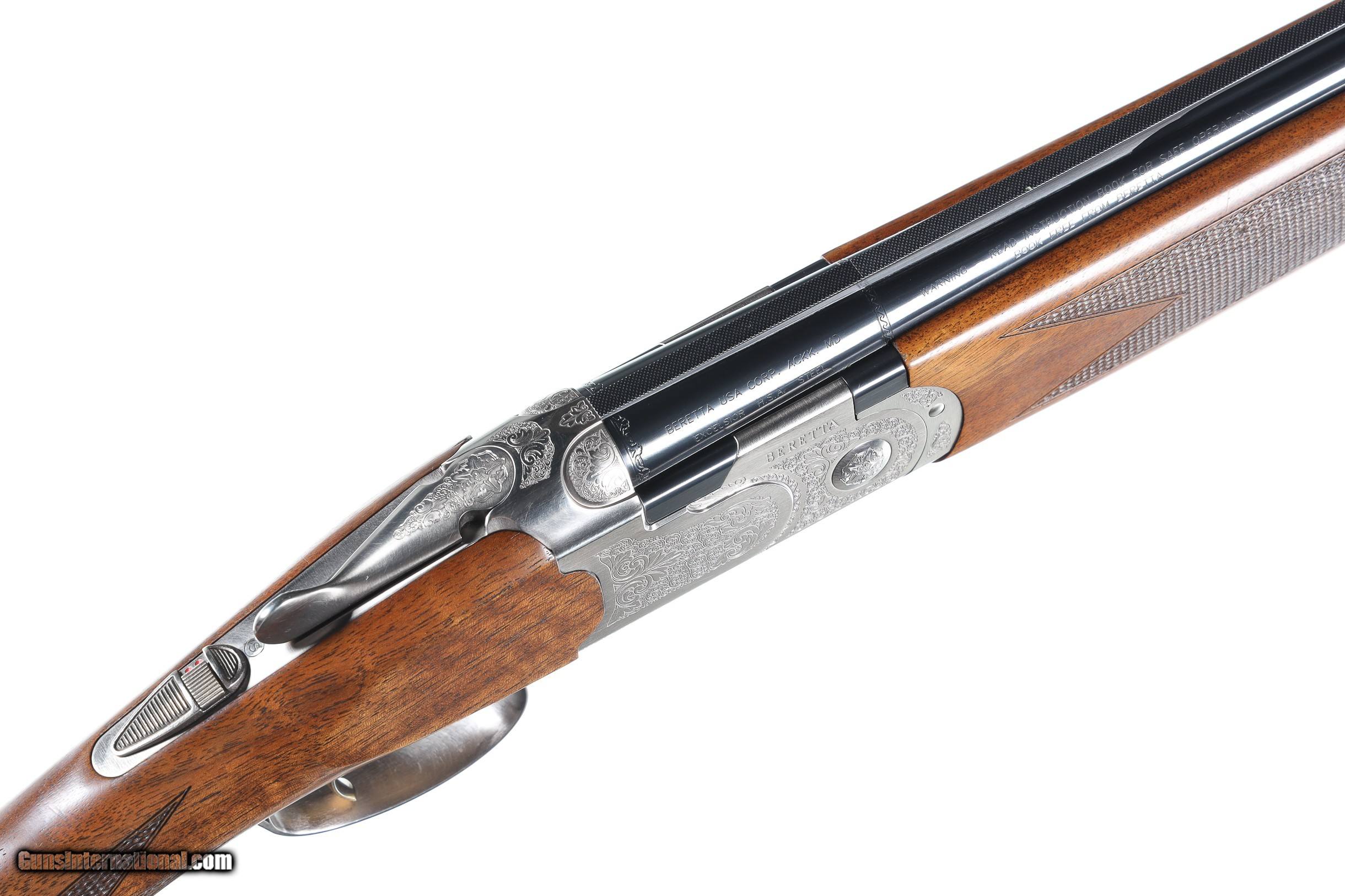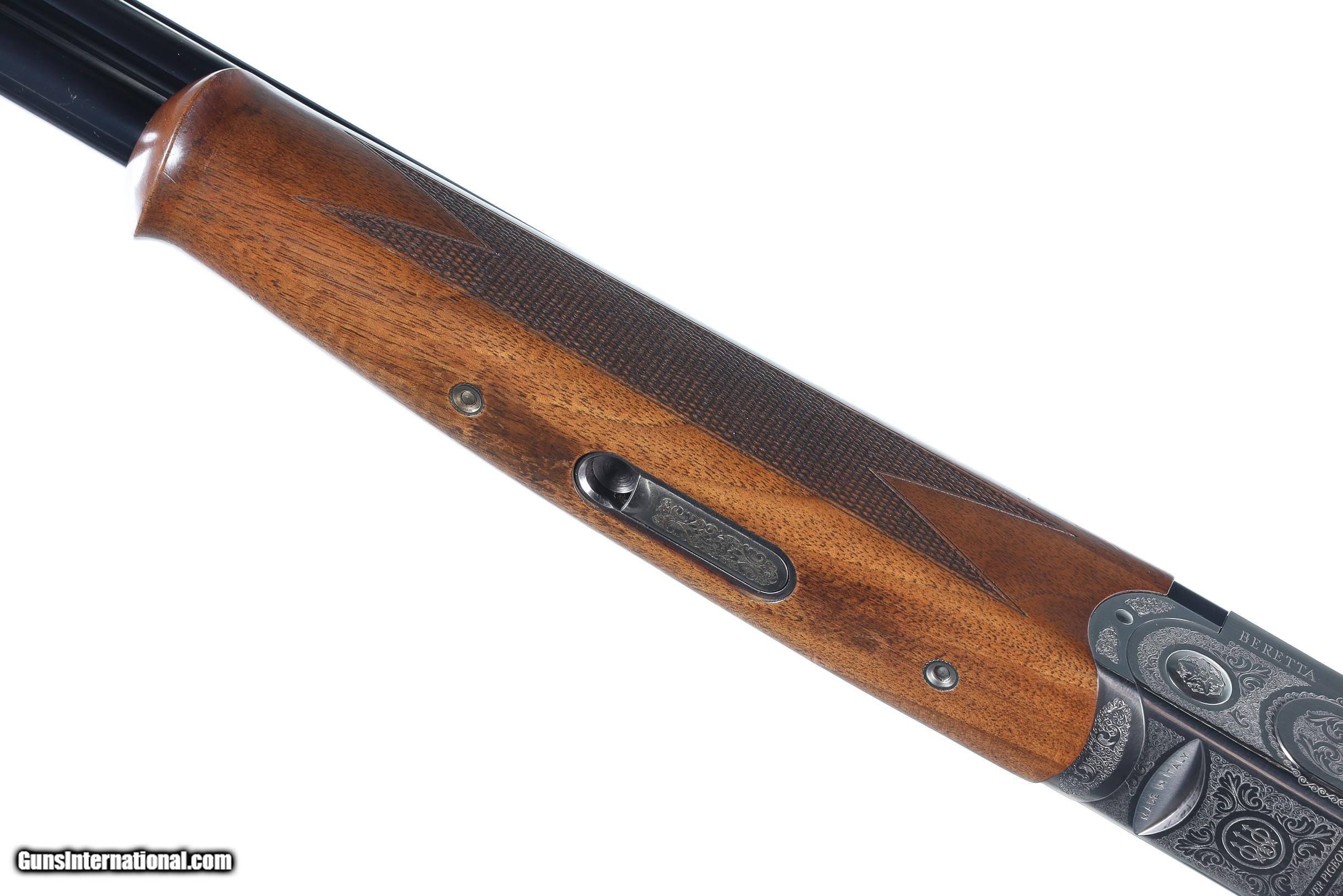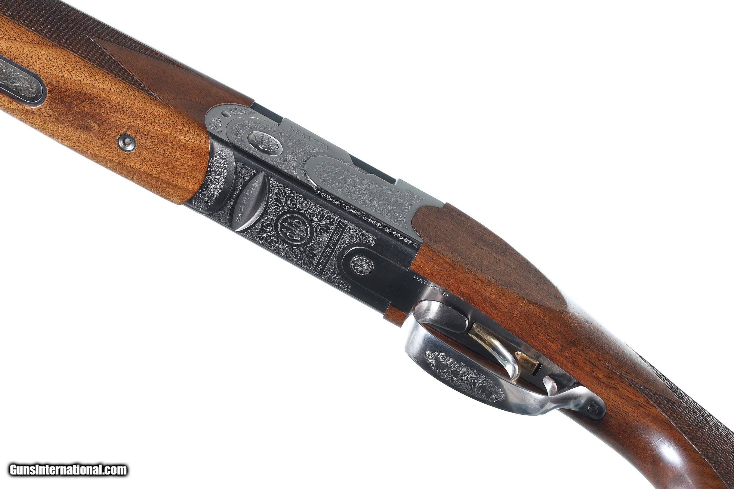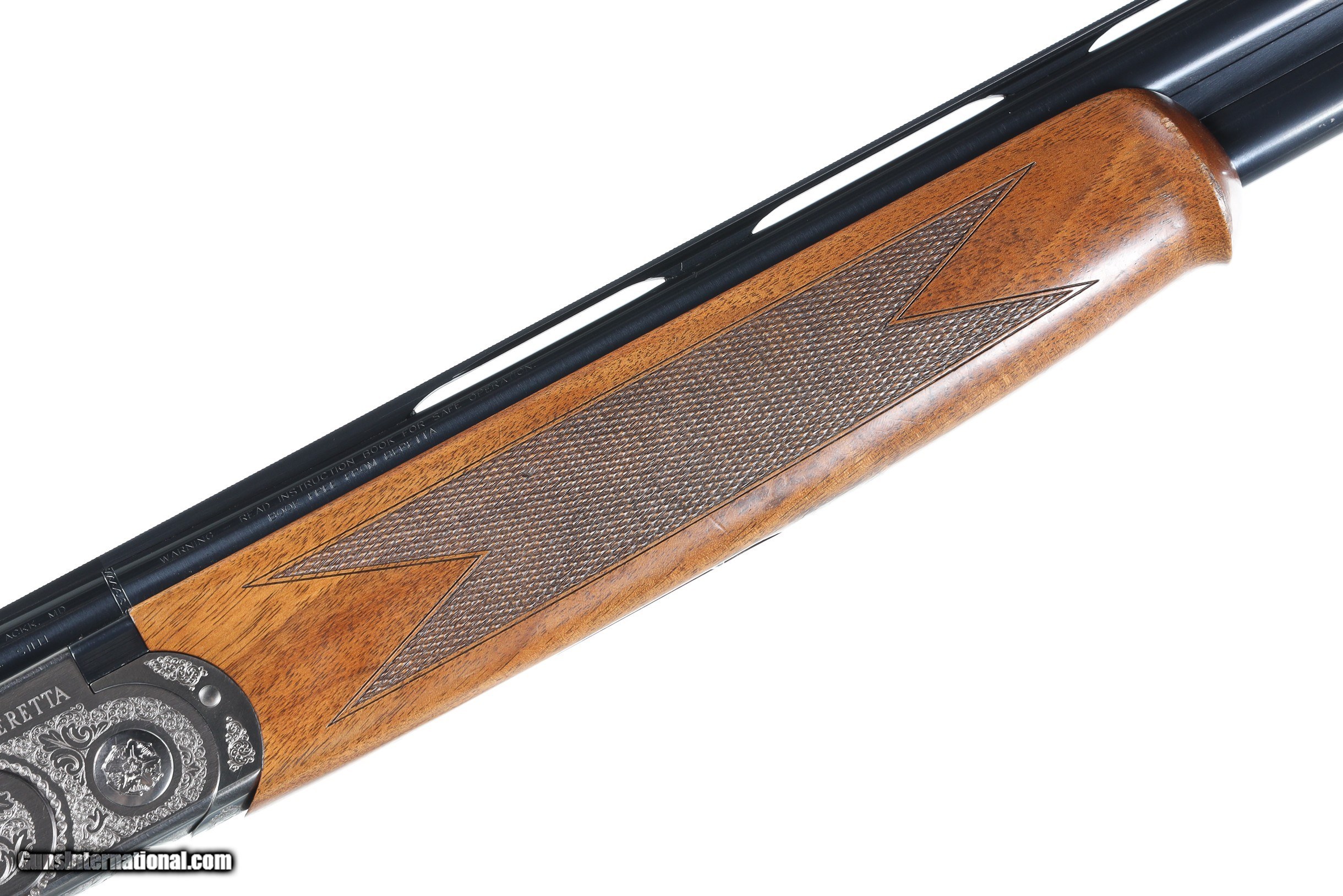 Description: P. Beretta Model 686 Silver Pigeon. 29 1/2" Vent rib Bbl with interchangeable chokes ( 5 included). 3" chamber Coin finished scroll engraved receiver with single selective trigger. Varnished walnut stocks. 14 1/2" LOP 1 1/2" DAC 2 1/4" DAH 6 lbs 3 oz. Condition, Extremely fine with little use and retaining all metal finishes. Mechanically excellent. Stocks are very fine with a small varnish wear area on forearm. Mfg 2012 Slightly cast off 2mm at heel 5mm at toe. • Free Shipping, No Credit Card Fees. • Lay-a-way available for this firearm. • 1/3 Down, a 1/3 in 30 Days 1/3 in 60 Days. SOLD Shotgun Gauge: 20 Gauge Manufacturer: Beretta Model: 686 Silver Pigeon 1 Serial Number: V41075S Barrel Length: 29 1/2 |
