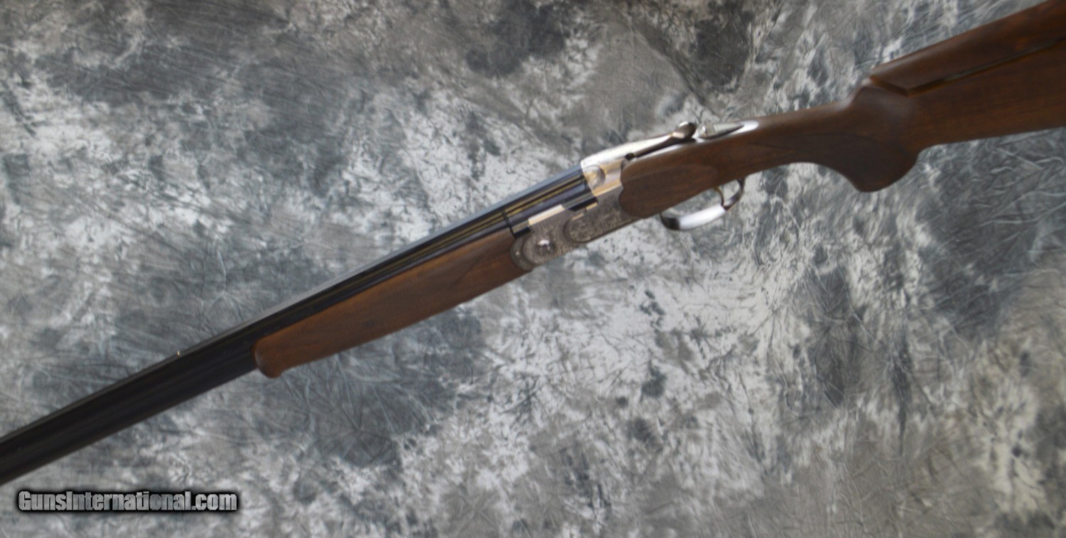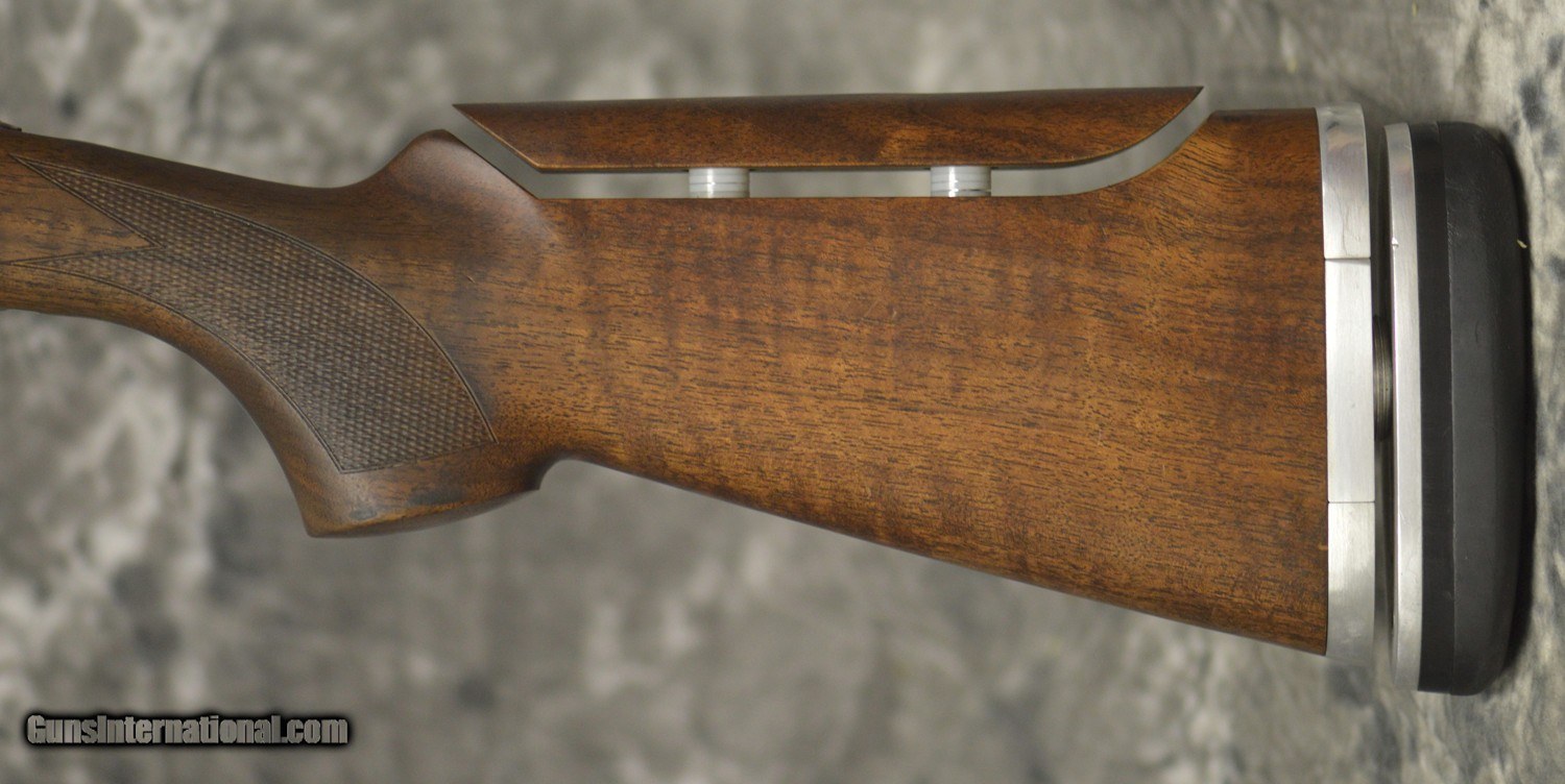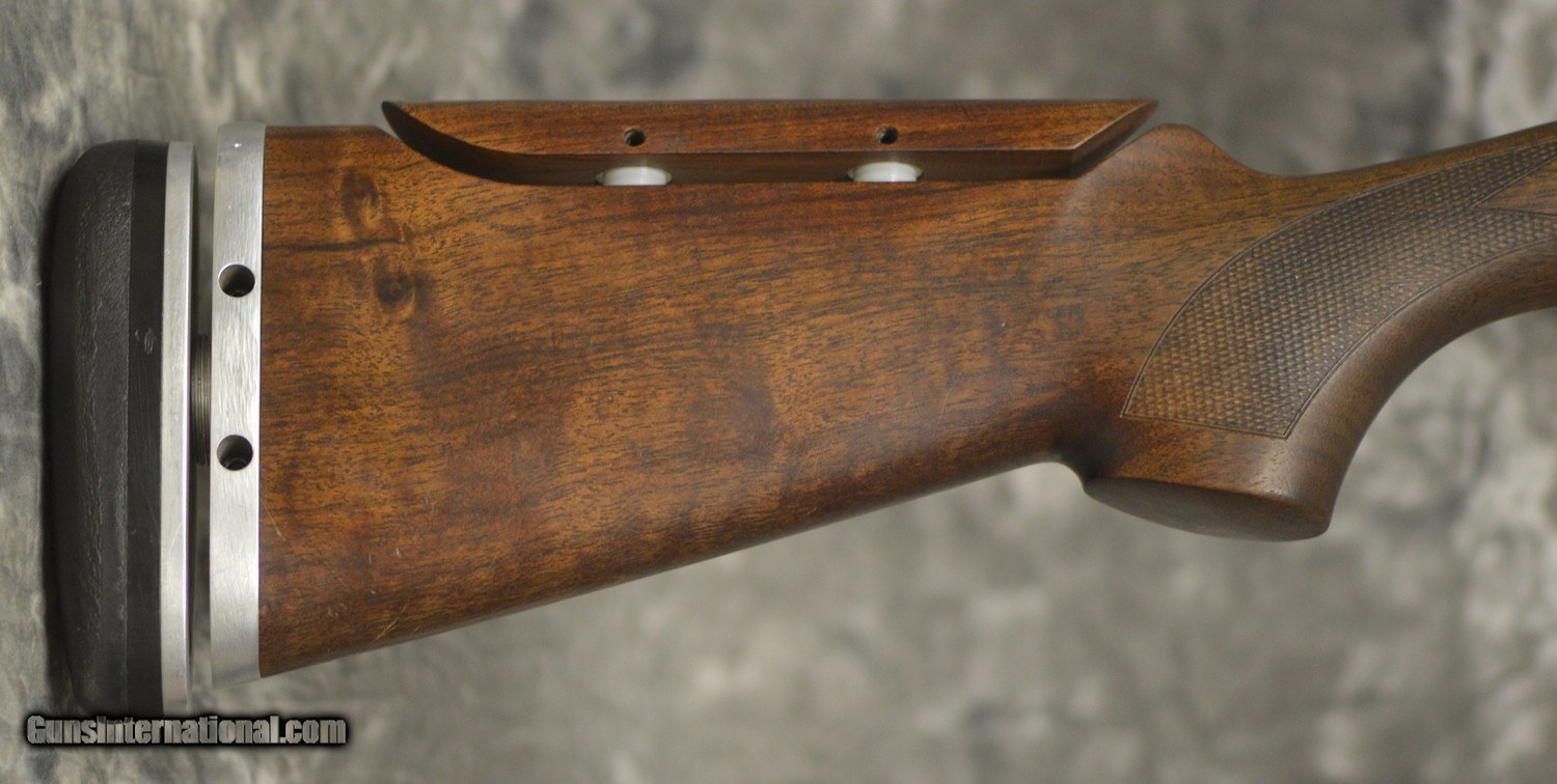 Description: Pre-Owned Beretta 686 Silver Pigeon I Field 20GA with 28" factory Mobil choked barrels, fitted set of Briley Ultralight 28GA and .410 bore sub-gauge tubes (choked SKT/SKT) installed. Nickel finished receiver with roll engraving. Factory pistol grip stock with Graco adj. butt plate and Graco adj. comb, schnabel forearm. Handling marks on stock and forearm, minor bluing wear on barrels. Includes case, chokes and tools. Consignment, ineligible for trade-ins. SOLD |