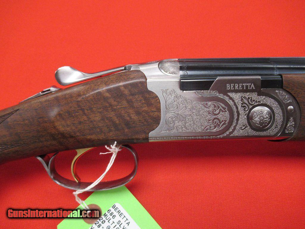 Description: Beretta 686 Silver Pigeon Grade I Field 20ga/28" Multichoke -- Excellent condition overall appearing to have seen little use: pistol grip stock, schnable forend, ejectors, threaded for Mobil choke. Comes with the factory box and case, five flush choke tubes, and the paper work. SOLD |