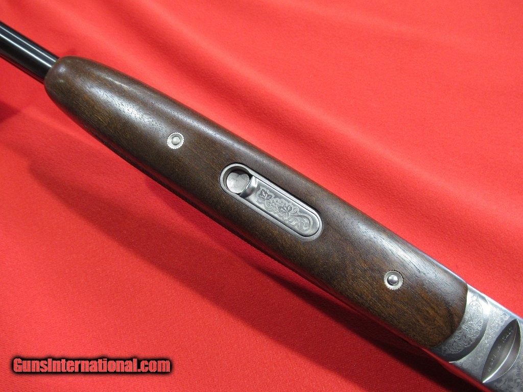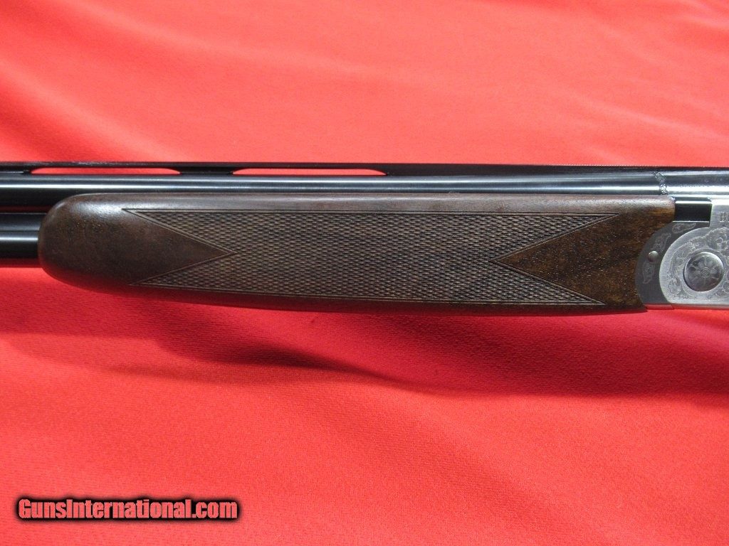 Description: Beretta 686 Silver Pigeon I field gun with pistol grip stock, rounded forend, scroll engraving, ventilated rib, automatic selective safety, threaded for factory choke tubes. Comes with a case, five flush chokes, choke tube wrench, and paper work. SOLD |