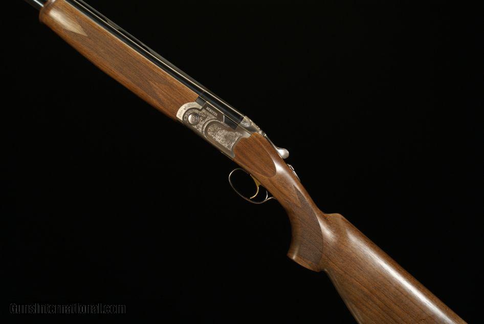 Description: Beretta 686 Silver Pigeon I, 12 bore, 3" chambers, 28" barrels with screw-in chokes, 7 lbs. 5 oz., 14 3/4" LOP over a checkered butt, 1 1/2 DAC, 2 1/4" DAH, 1/8" cast off, pistol grip, vent rib, single selective trigger, ejectors, silver action with scroll engraving, oil stock finish. Comes with hard case and extra choke tubes. New and in stock. Gun number U00748S. SOLD |