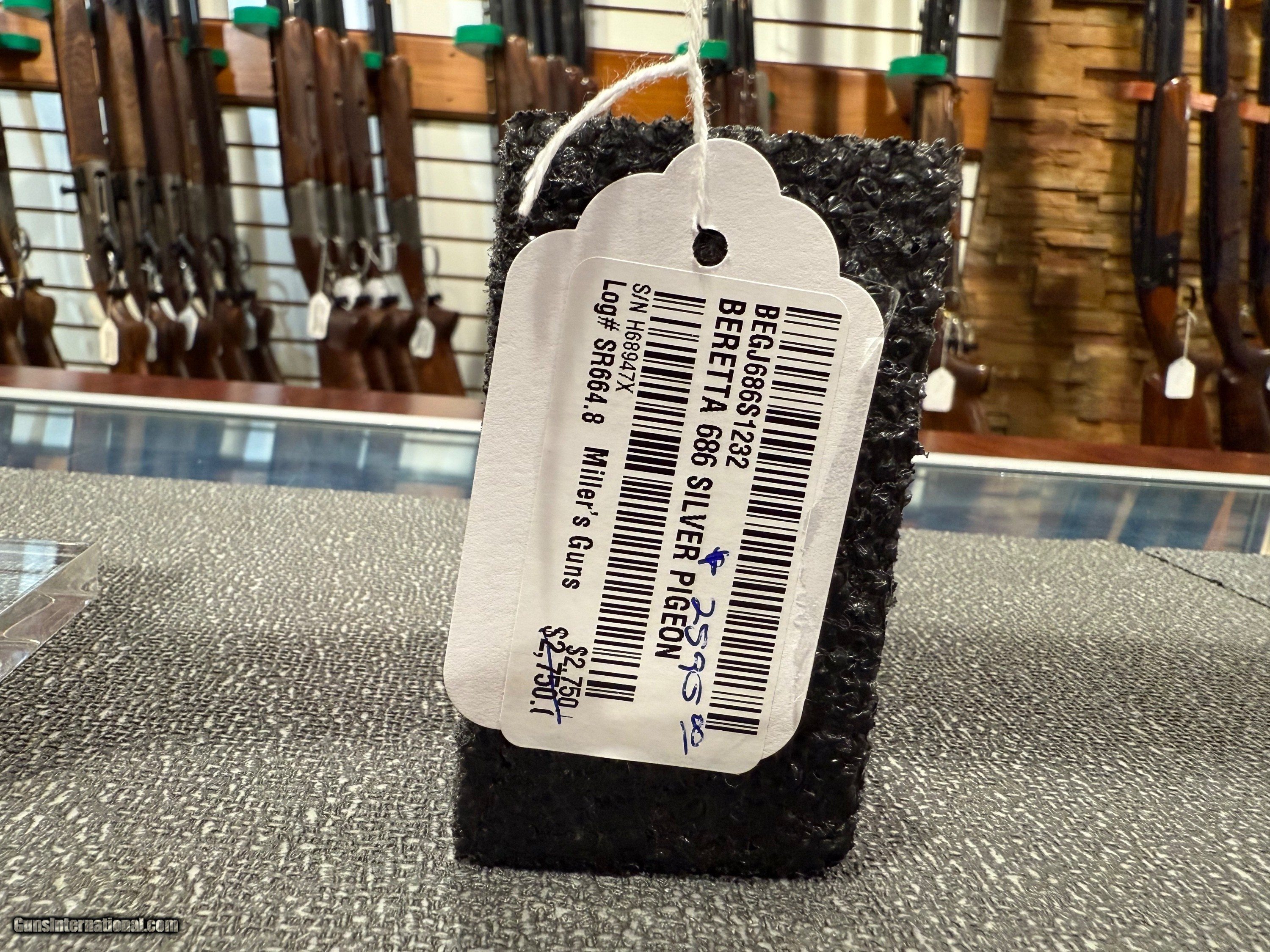 Description: Beretta 686 Silver Pigeon I Sporting 12ga 32" barrels 3" chamber 48" OAL 14.38" LOP 7lbs Shotgun Gauge: 12 Gauge Manufacturer: Beretta Model: 686 Silver Pigeon I Sporting Serial Number: H68947X Barrel Length: 32 Condition: NEW Price: $2,950.00 Contact Seller |