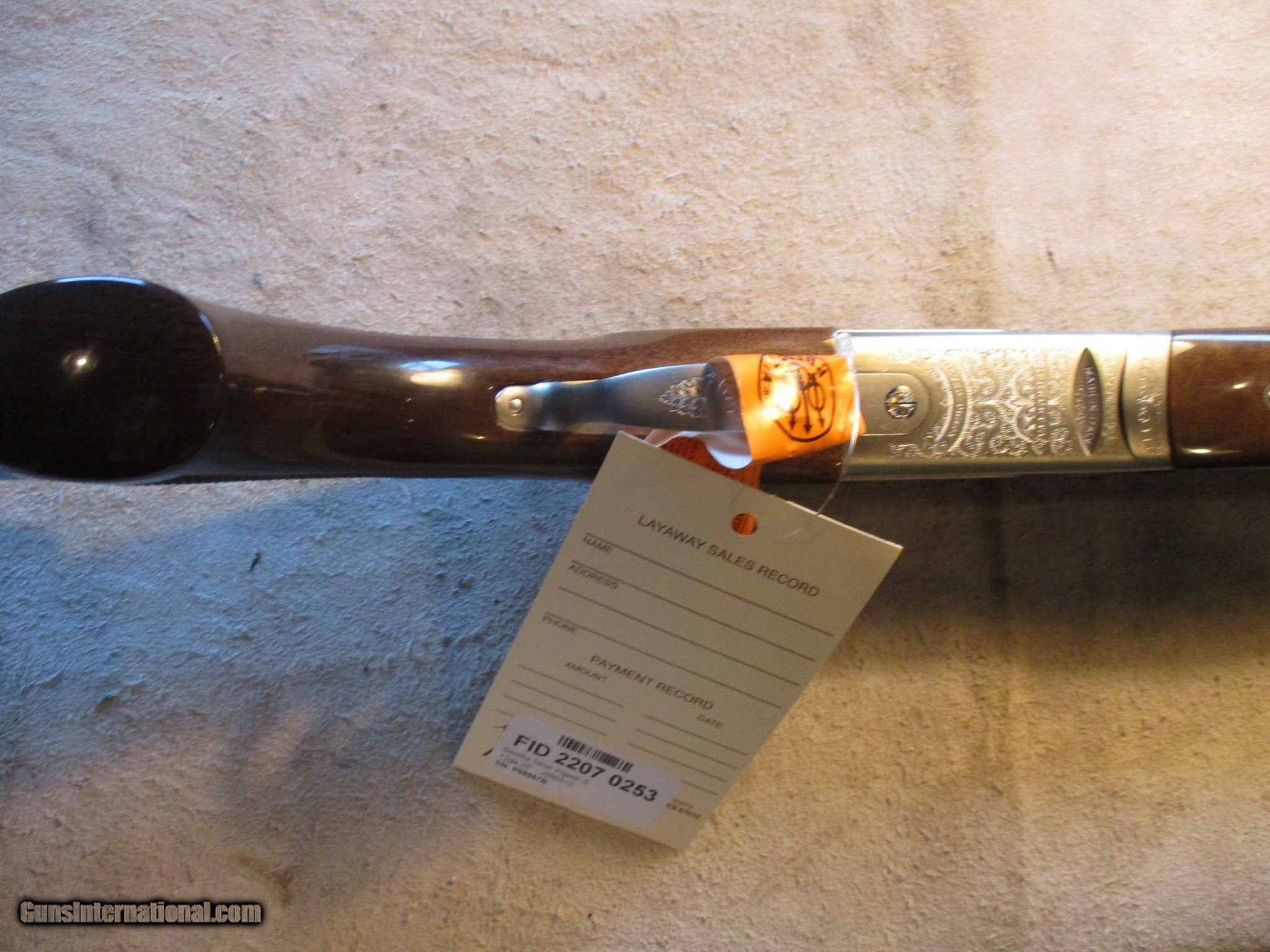 Description: Beretta 686 Silver Pigeon S, now called the Silver Pigeon 1 with a different engraving pattern. 12ga, 3" mag, 26" barrels, 5 factory flush chokes, new in factory case. SN is P099xxB, made in 2002. We will trade for silver and gold. We accept personal check, any certified funds, Venmo or Zelle. We can also take your credit card, +3%. Email me if you would like these pictures sent to you, they will come through bigger and better than on the listing page here. We do offer Layaway. Our standard terms are 25% down, 90 days. Initial deposit is not refundable. Email me with any questions. Please check your local laws to confirm it is legal to own in your state! Buyer pays $25 shipping and insurance to your FFL in the lower 48. AK, HI or PR is extra. I will ship to California, as long as it is legal, NO PROBLEM! All my guns come with a non-firing, 3 day unconditional return privilege, from the day UPS delivers to your dealer. Buyer pays shipping both ways if the gun comes back. Please make sure to make it to your FFL to inspect within the 3 days. If your gun doesn't have a box or case we can add a new hard case by PLANO for secure shipping for $30 if the buyer wishes (highly recommended, cheap insurance, really helps keep the UPS monster from eating my guns!). I am a licensed FFL, and will include a copy of my FFL with the gun for your dealer’s records. I will ship to a C&R if the gun is eligible. I will ship to California, but you need to confirm the gun is legal where you are, California or other. WE BUY AND CONSIGN GUNS AND GUN COLLECTIONS! We will travel to pick up collections! I am always looking for good clean, old original Winchesters to buy, consign, or trade, especially Pre '64's model 70's and model 54's. WE ALSO TRADE FOR CLASSIC CARS AND TRUCKS! We also trade for gold and silver. SOLD Shotgun Gauge: 12 Gauge Manufacturer: Beretta Model: 686 Barrel Length: 26 Condition: New Old Stock |