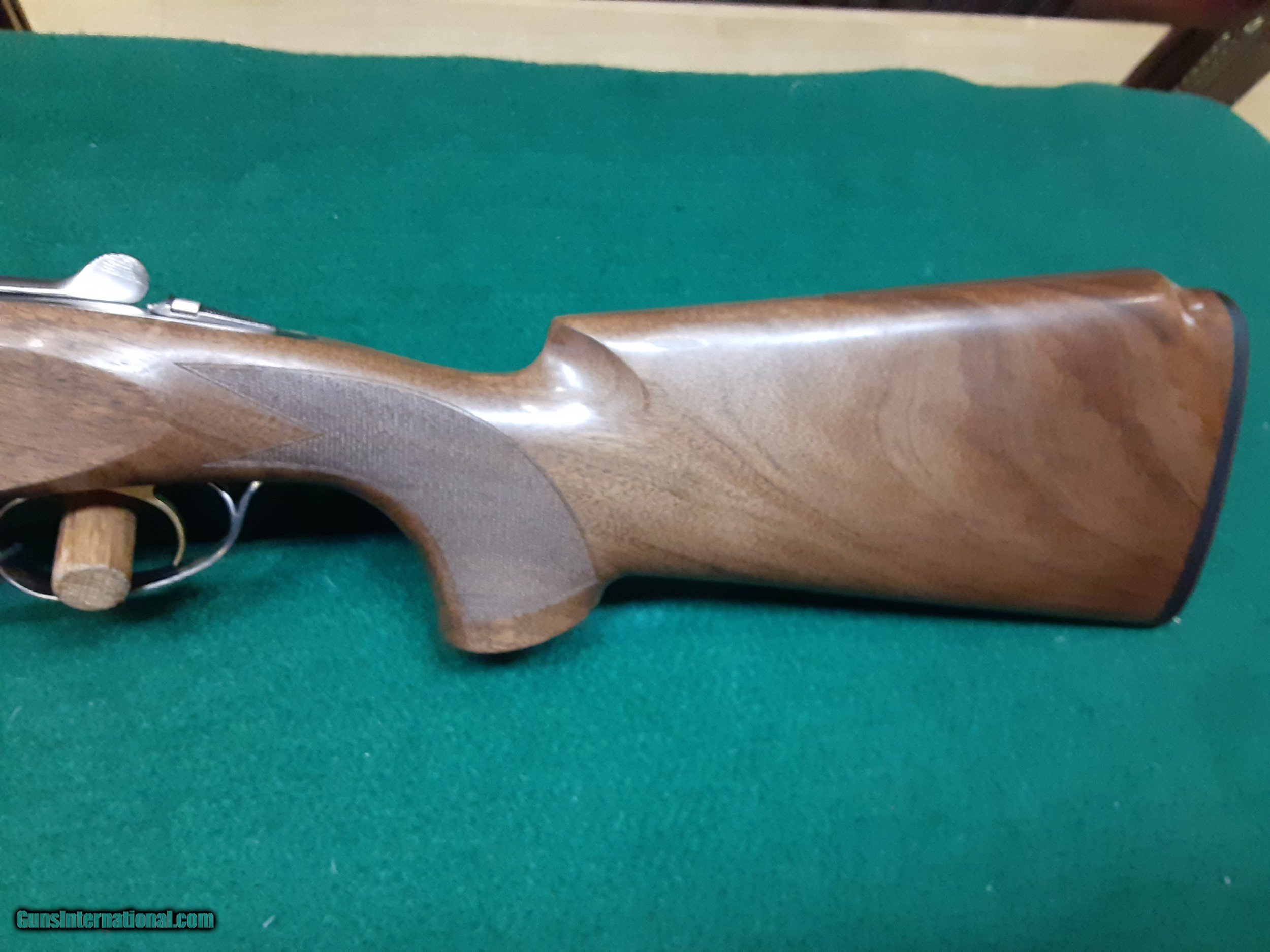 Description: The new Vittoria series is the first Beretta shotgun range specifically designed for women. Developed with input from champion lady pro-shooters, the Vittoria series shotguns feature dedicated ergonomics to ensure a smooth, comfortable and precise handling. The stocks have been completely re-engineered to fit a women’s dimensions. Made of beautiful grade 2.5 oiled walnut, the length of pull is reduced and the comb features a semi-Monte Carlo design with a slight drop and additional “toe-out” cast. The checkering on both the stock and the fore end are extra fine for added comfort during a long day of training or competing. The 690 Sporting Vittoria is built on the same durable, heirloom quality receiver and cold hammer forged Steelium barrels as the standard 691, features a sporting vent side rib and tapered top rib and extended Optima HP chokes. The attractive contemporary scroll engraved receiver is coated in a solid and durable Nistan finish providing excellent resistance to corrosion. The low profile receiver ensures a quick mount and good fit ensuring maximum clay breaking success. Vittoria shotguns perfectly fit smaller frames while offering full-size performance. SOLD Shotgun Gauge: 12 Gauge Manufacturer: Beretta Model: VITTORIA Serial Number: N89814S Barrel Length: 30 Chambers: 3 Ejectors: Automatic Condition: NEW Action: O/U Case: Blue plastic Item Location: New York (NY) |