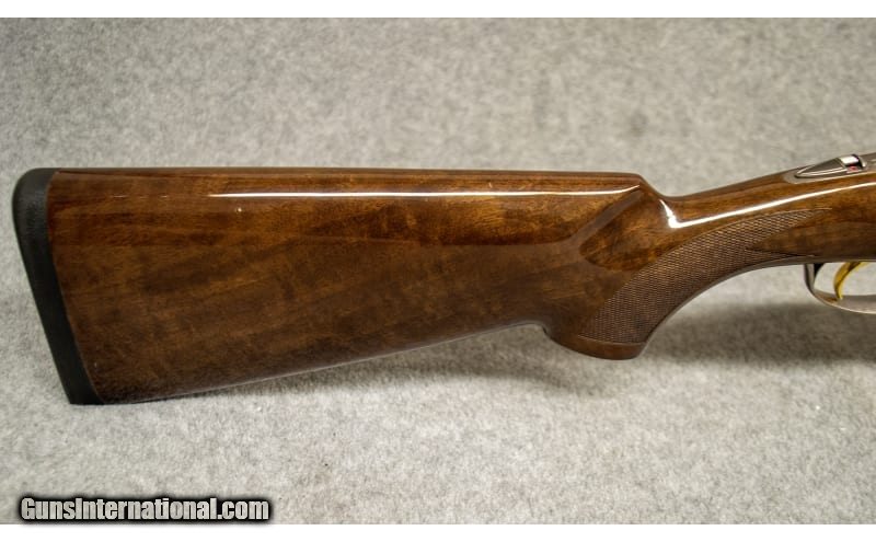 Description: 12 Gauge, 3" chambers, 28" vent rib barrels. High-gloss walnut stock and forearm that show some minor scuffs, jeweled receiver, gilded trigger shoe, single bead sight, boxlock action, SST. Firearm ships with its original box as well as a set of chokes. 12 Gauge SOLD Chambers: 3" Chambers Metal Condition: Excellent Wood Condition: Very Good Bore Condition: Excellent Barrels: 28 Triggers: Gold-Plated Trigger Shoe Stock Dimensions: LOP: 14 3/4" Drop at Comb: 1 1/2" Drop at Heel: 2 1/8 Butt Pad: Beretta Rubber Pad Sights: Single Bead Chokes: Screw-In Chokes Item Location: Greenville, SC |