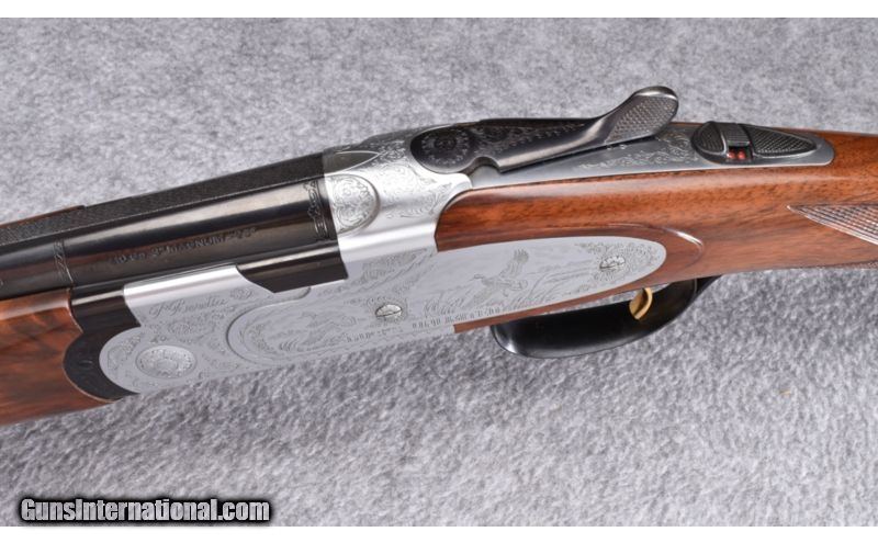 Description: Excellent overall condition showing only light use marks. Beautiful Ducks Unlimited with hard canvas case! SOLD Manufacturer: S/N L116XXX Caliber Info: .410 Bore Chambers: 3" Magnum Metal Condition: Excellent Wood Condition: Excellent Bore Condition: Excellent Barrels: 26" Vent Rib Triggers: Factory Stock: Checkered Walnut Straight Grip Stock Dimensions: 14 5/8" LOP Fore End: Checkered Walnut Butt Pad: Brown Rubber Butt Pad Weight: 6 1/2 LB Sights: Brass Front Bead Chokes: Full/Improved Choke Tubes Item Location: Wheeling, WV |