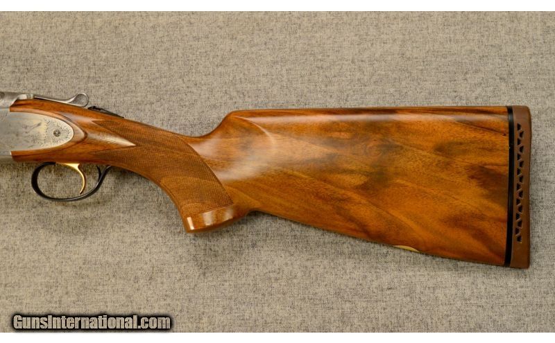 Description: This is a pre-owned Beretta 687 EELL in 12 gauge. The 687 EELL is the absolute top of the line of Beretta's 680 series over-under shotguns. It features sideplates that act as extra canvas for the hand-chased engraving, as well as a specially selected walnut stock that gives it a true heirloom quality. This is an over-under with the feel and allure of a classic, for the discriminating shooter who appreciates all the finer points of a perfectly made shotgun.Choked Full & Modified, this gun with 30" barrels would make and excellend Sporting Clays double. SOLD Manufacturer: 1992 Caliber Info: 12 GA Chambers: 2 3/4 Metal Condition: Very good with a few small scratches and missing the median bead Wood Condition: Very good with a few small scratches and dents Bore Condition: Clean and bright Barrels: 30 Triggers: Single selective Stock: Checkered walnut Stock Dimensions: 14 1/2" LOP Fore End: Checkered walnut Butt Pad: Beretta pad Weight: 8 Lbs. Sights: Red bar front Chokes: Fixed Full/Mod. Item Location: Glendale, AZ |