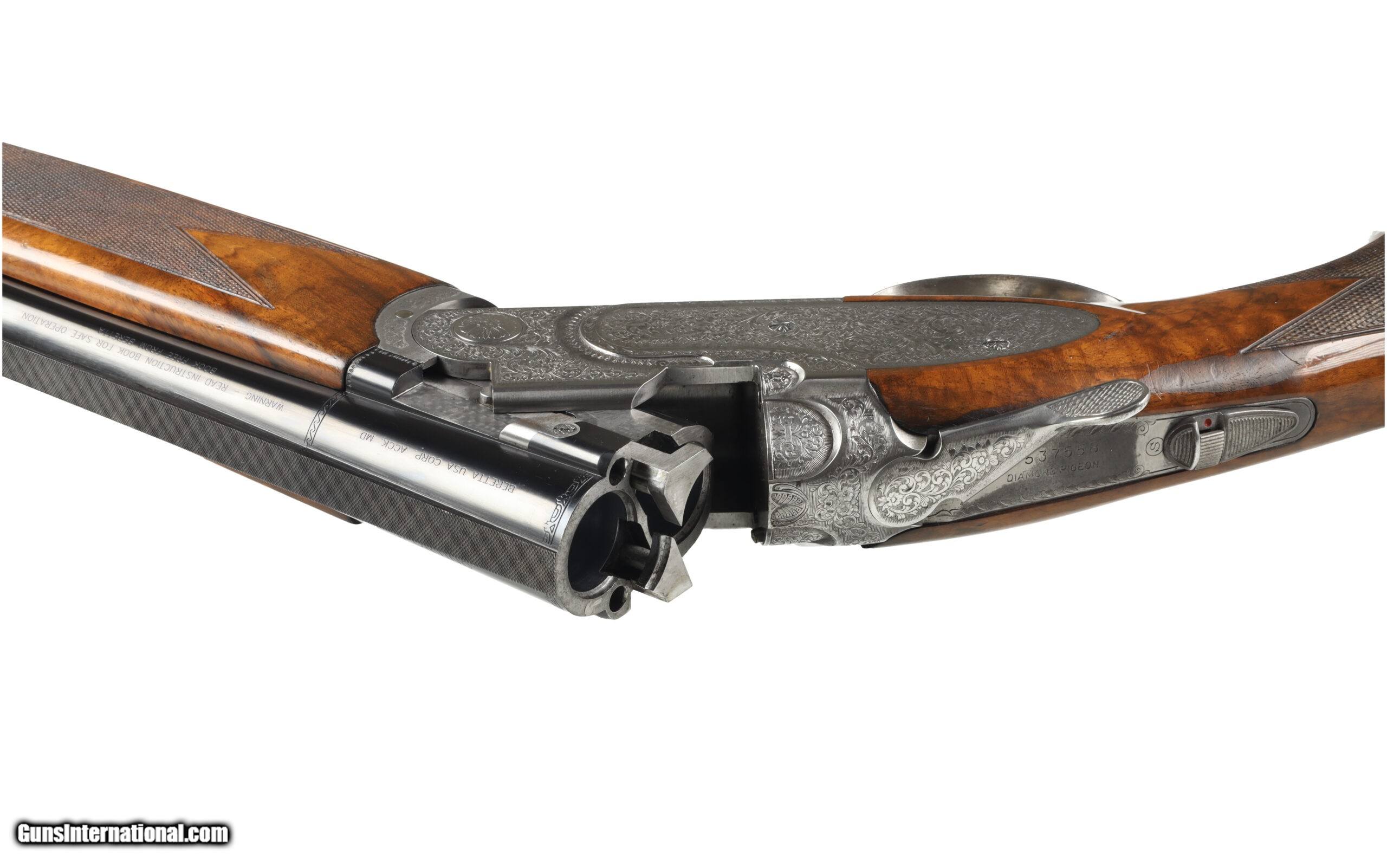 Description: The 687 EELL is the top of the line for Beretta 680 series shotguns, this model is the 687 sporting version, which has been tuned specifically for clay shooting sports. Overall condition is very good with only light to moderate wear across most of the firearm. The only damage of note is the upper barrel, which is bulged at the choke threads, meaning that the choke has likely been shot out at some point, the currently installed choke tube still threads in normally and appears to make a good seal. Manufactured in: Italy Hand: Right Hand Action Finish: Engraved Metal Finish: Original Barrel Length: 32" Barrel Condition: Fair Stock Finish: Original Stock Condition: Very Good Type of Butt: Factory Pad Grip: Pistol Forend: Checkered Schnabel Cast Amount: 1/8" Manufacturer: Beretta Model: 687 EELL Diamond Pigeon Sport Chambers: 3 Ejectors: Yes Condition: Preowned Metal Condition: Very Good Action: Over / Under Triggers: Single Gauge: 12 Gauge Stock Comb: 1 3/8 Stock Heel: 2 1/8 Stock Cast: Off Fore End: Checkered Schnabel LOP: 14 3/4 Rib: Ventilated Finish: Original Weight: 7.9 lbs Chokes: 8 Factory Chokes Case: Makers ABS Case Price: $5,000.00 Contact Seller |