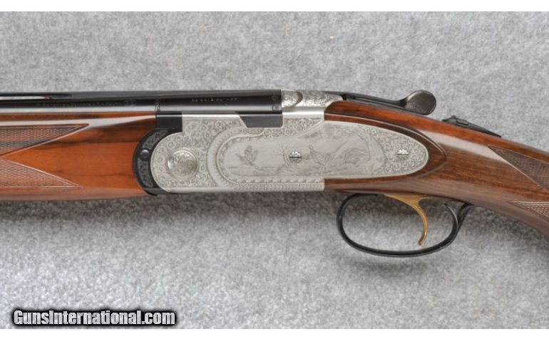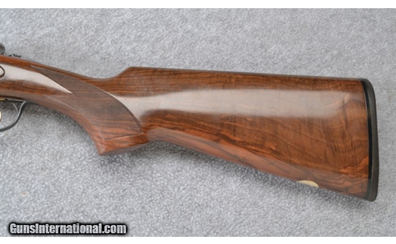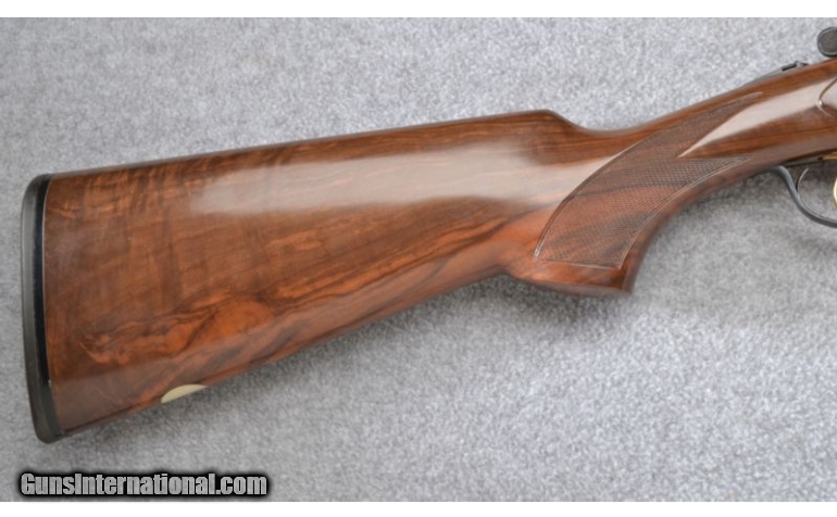 Description: Wood shows a couple faint handling / storage marks and remains excellent. Blue and bores are also excellent. Complete w/box. SOLD Manufacturer: S/N - L409XXB Caliber Info: 28 ga. Chambers: 2 3/4 in. Metal Condition: Excellent Wood Condition: Excellent Bore Condition: Excellent Barrels: 26 3/8 in. Triggers: Single - Selective Safety Stock: Checkered Walnut P.G. Stock Dimensions: 14 5/8 in. LOP Fore End: Checkered Walnut Butt Pad: Black Rubber Weight: 6 1/2 lbs. Sights: Single Front Bead Chokes: Choke Tubes Item Location: Wheeling, WV |