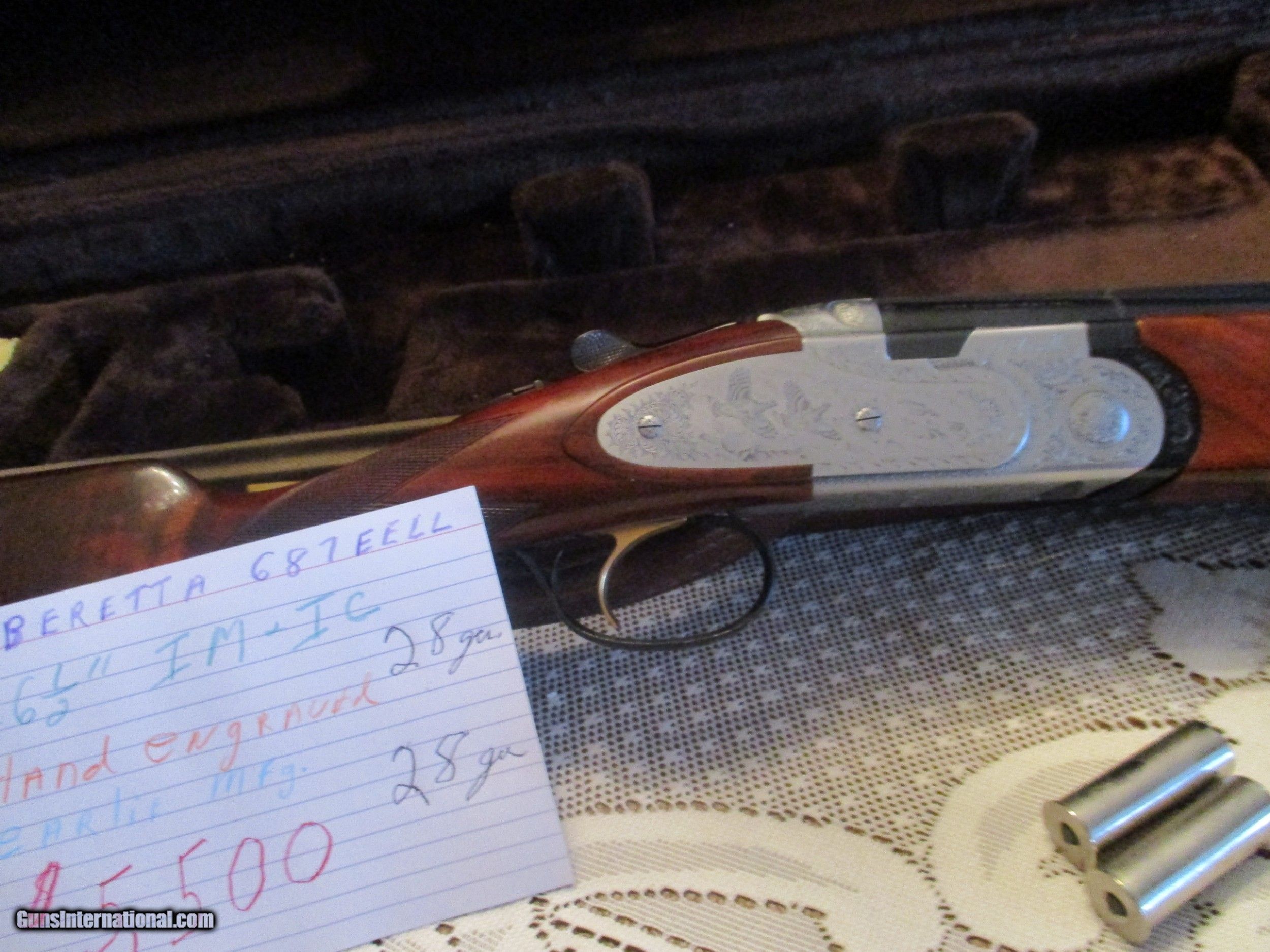 Description: Beretta 687 EELL 28GA - 26 1/2 barrells, MOD & IC, early manufactured, hand engraving by BG. As new condition. $5700.00. For more information call Rick at 973-478-5066. SOLD |
