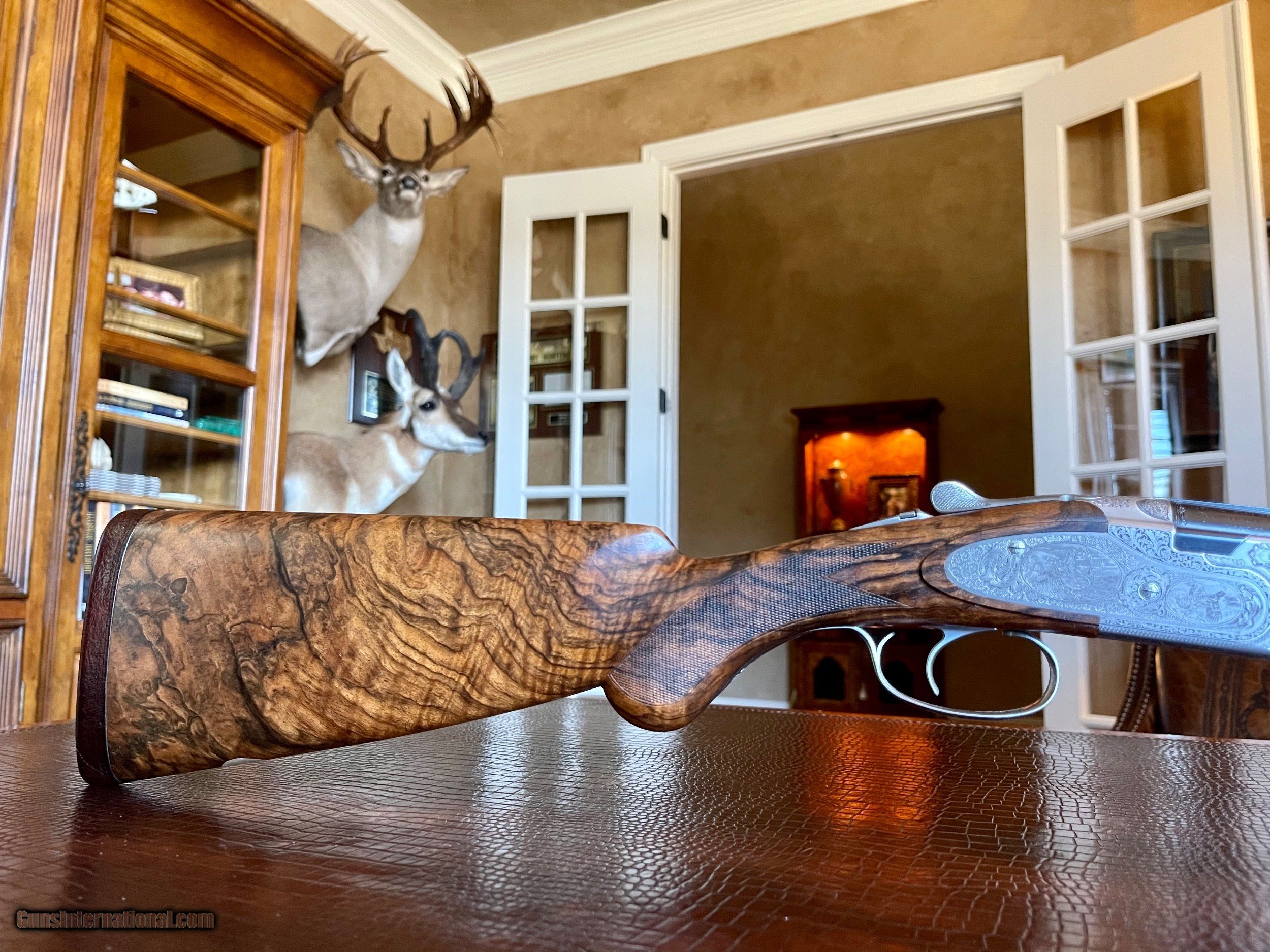 Description: Beretta 687 EELL Classic - 28ga - 28” - MultiChokes - Like New All Accessories Paperwork and Negrini Case - Magnificent Wood and Custom Leather Pad - comes the the original wood buttplate - the leather pad was installed so that the buttplate could simply be reinstalled without much Gunsmithing - comes with tow other factory pads along with all chokes sling swivels paperwork and Beretta cloth covers for stock and barrels - the gun has been fired recently in south Texas on a quail hunt - she's beautifully adorned with the finest Turkish walnut. Sexy shotgun! WHOA!! The wood on this gun!!! 14 3/4" x 1 3/8" x 2 1/4" - 6.2 lbs SN: N96909S The Quillen-Worfe Private Gun Collection - Guns International page – please read prior to making a purchase: