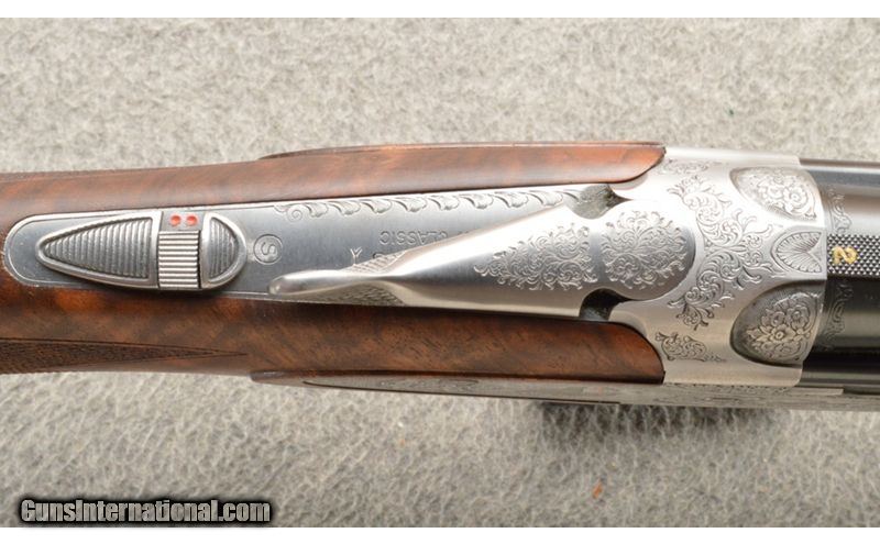 Description: This is an as new Beretta 687 EELL Classic combo in 20 and 28 gauge. The shotgun is a Beretta Certified used shotgun. The 687 EELL Classic is the top of the line of Beretta's 680-series over-under shotguns. It features sideplates that act as extra canvas for the lavish hand-chased engraving, as well as a specially-selected walnut stock that gives it a true heirloom quality. But while it certainly figures well while on display, the Classic's worth as a game gun is equally striking. Weighing about 7 lbs (12-ga version), and with the point of balance right at the hinge-pin, it is a shotgun that comes up naturally to the shoulder while still having enough of a lively feeling forward of the supporting hand. This is an over-under with the feel and allure of a classic, for the discriminating hunter who appreciates all the finer points of a perfectly-made gun. The full sideplates of the 687 EELL feature a super-fine classic game scene, and are enhanced by intricately detailed motifs of branches, leaves and flowers which extend to the trigger plate, trigger guard and fore-end iron lever. The proportions of the engraving blend wonderfully with the dimensions of the shotgun, giving you the sense of a work of art within a work of art. The stock is a classic semi-beavertail, with premium-quality European walnut and a newly designed fine-line checkering. An oval brass shield, inlaid on the stock, will allow you to personalize your gun with initials or a family crest, while the handsome and durable carrying case will protect the shotgun for generations to come. 20 Gauge/28 Gauge SOLD Chambers: The 20 gauge is 3" and the 28 gauge is 2 3/4". Both are Over/Under with ejectors. Metal Condition: As new in case. Wood Condition: As new in case. Bore Condition: As new in case. Barrels: Both are 28" with vent ribs. Triggers: SST silver color trigger. Stock Dimensions: 14 1/4"" LOP, 1 1/2"" DHC and 2 3/8"" DAH. Fore End: Both barrels have EELL grade walnut with checkering and numbered too the barrel. Butt Pad: EELL grade walnut with checkering. Weight: 6 Lbs 6 Oz. Sights: Both come single front beads on the vent ribs. Chokes: Both come with full set of 5 flush fit chokes. Item Location: Owatonna, MN |
