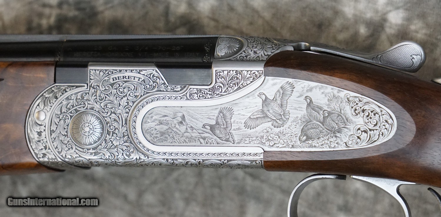 Description: New Beretta 687EELL Deluxe 28GA with 28" factory choke tubed barrels, parallel game rib with solid side ribs. Coin finished action with side-plates featuring detailed game scenes framed by deeply engraved scrolls and florals, scaled 28GA action. Factory pistol grip stock to factory removable wood butt plate and slim game forearm. Includes factory case, chokes and tools. SOLD Shotgun Gauge: 28 Gauge |