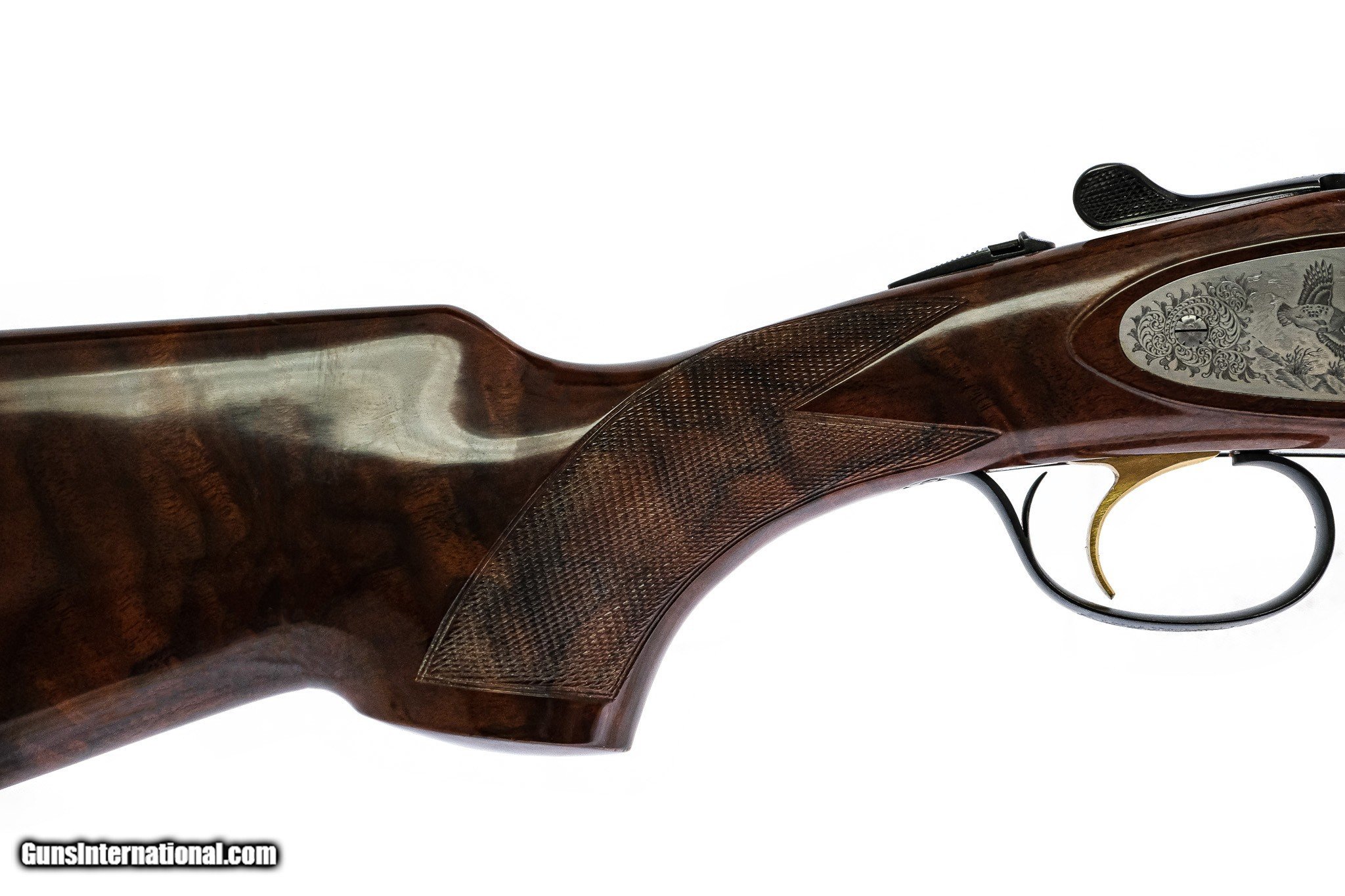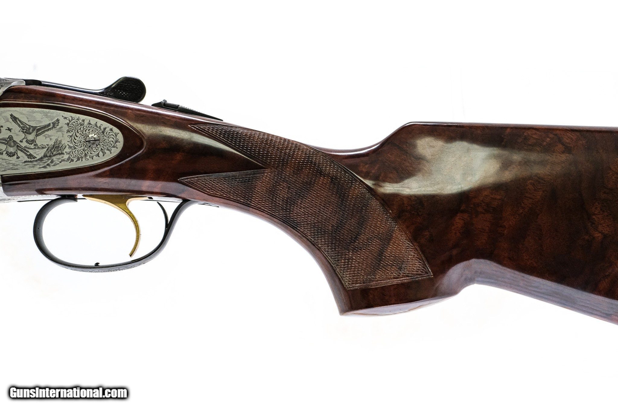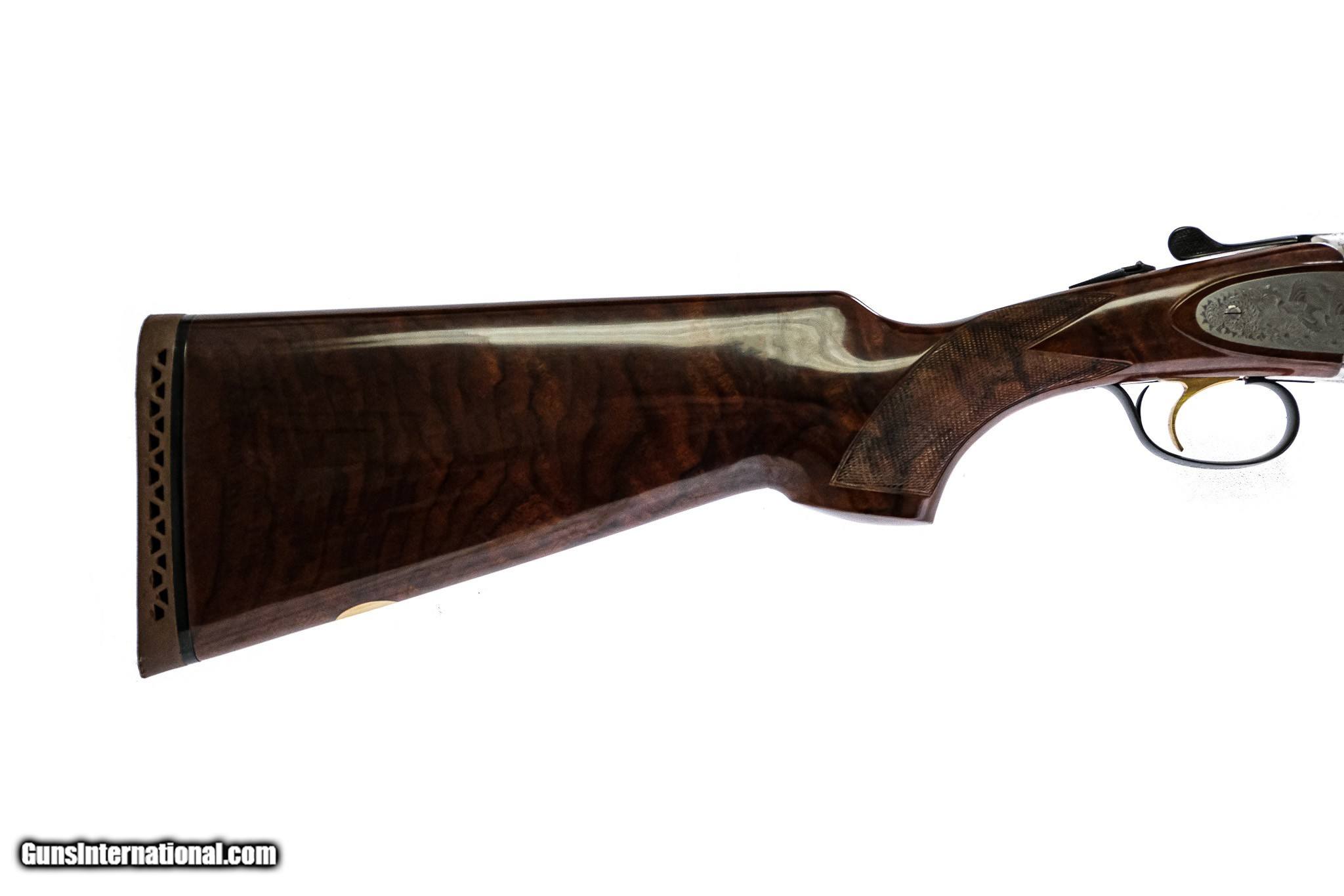 Description: Beretta - 687 EELL Diamond Grade, O/U, 20ga. 26" Vent Rib Barrels Choked IC/M. Vent rib barrels, fixed chokes IC/M , side plate action, engraving of birds, ducks, woodcock, surrounded by scroll, single selective trigger, automatic ejector, pistol grip, fancy wood, oval name plate, recoil pad, original Baretta pad, in the original carrying case. Gun looks unused, like new! With Beretta paperwork inside of box. Inv: 73545 5 lbs. 13 oz. 14 5/8" $5,995.00 SOLD |