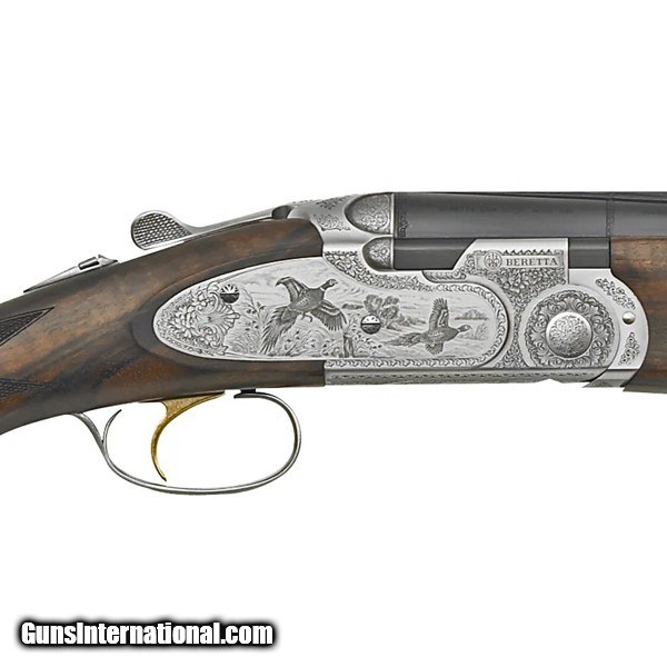 Description: Truly a fine sporting gun that can be passed from generation to generation, Beretta's Model 687 Diamond Pigeon is the peak of performance and beauty. The 687 Diamond Pigeon is the culmination of all the bast that Beretta has to offer in a sporting over-under firearm, whether you are hunting or competing. This firearm includes a beautifully hand-engraved receiver and premium European Walnut stock, a break action receiver offers two mid-height conical locking lugs, which means tight lock-up with less weight and bulk, and a tang mounted safety and barrel selector. It is also equipped with a point of balance focused at the receiver hinge pin, which translates into an easy to point shotgun and a pistol grip stock and semi-beavertail fore-end for enhanced ergonomics and control. Beretta 687 EELL Diamond Pigeon 12 Gauge 30" Shotgun