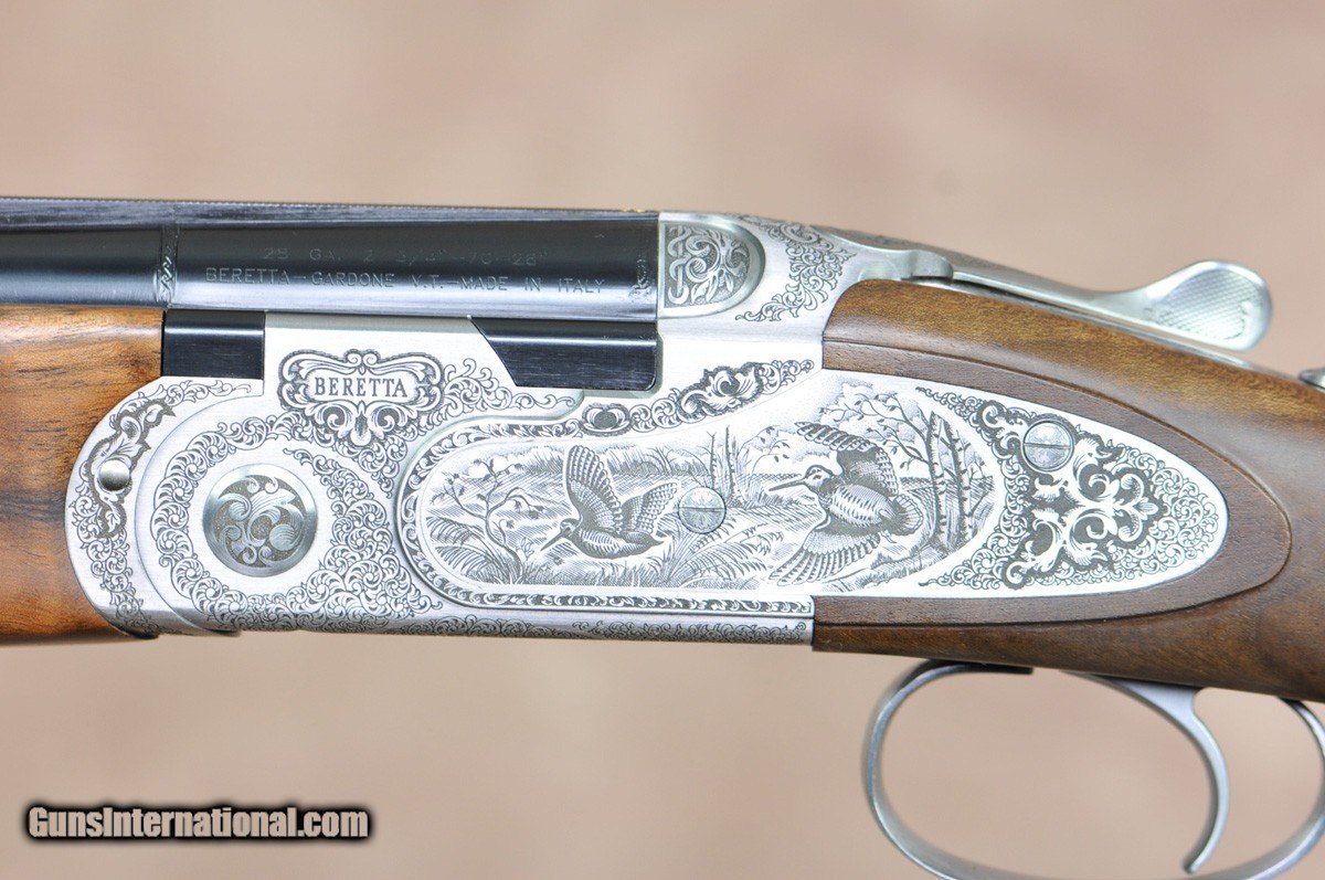 Description: Beretta 687EELL Diamond Piegon 20ga/28GA combo 28″ factory flush mount choke tubed barrel, comes with 5 chokes. 6mm flat parallel rib. Single selective trigger, automatic safety. Factory engraved receiver by the Masters at Bottega Giovanelli featuring fine English scrolling and detailed game scenes. Factory right handed Prince of Wales stock to and slim beavertail forend. Stock dimensions are 1 1/2″ x 2 1/4″ with a LOP of 14 1/2″. Overall weight of the gun is 6lbs 2oz. Comes with chokes, tools and factory Beretta hard case. This gun is located at our NEW Michigan location at 8585 PGA Drive, Suite 104. Walled Lake, MI 48390. 248-960-7262. We are an Authorized Beretta Premium Dealer. Refer to 41x. SOLD |