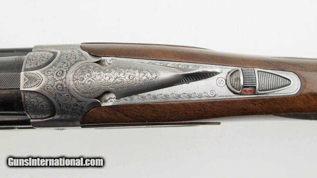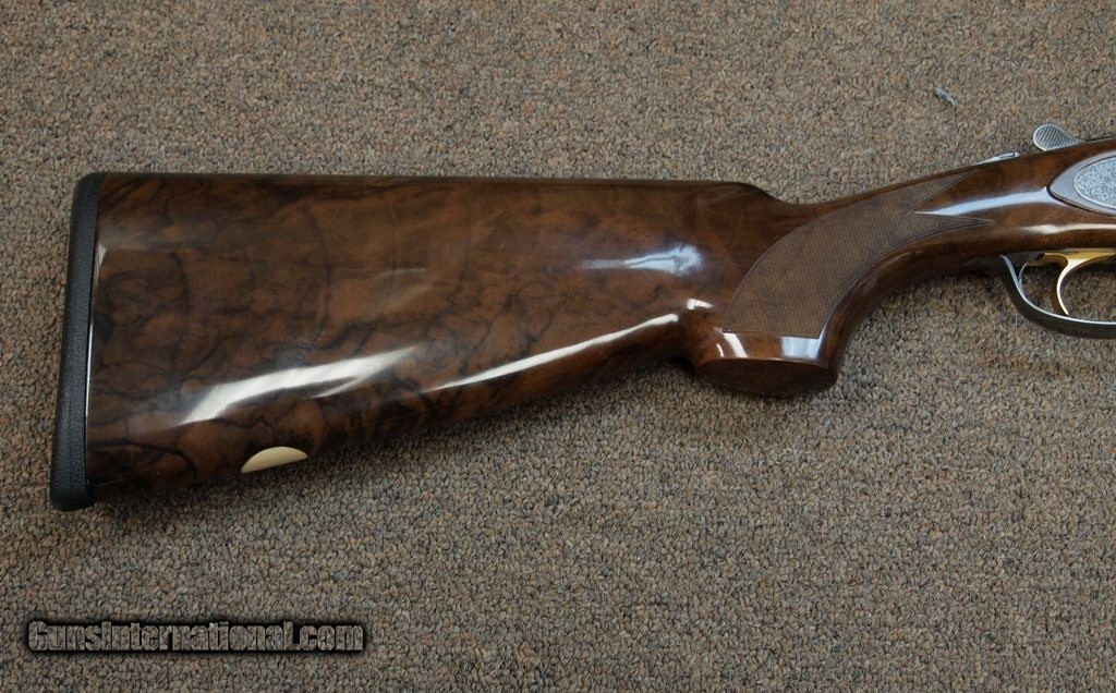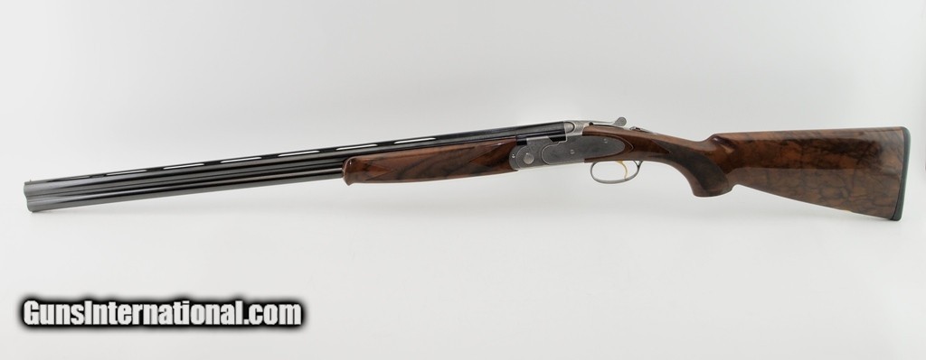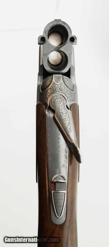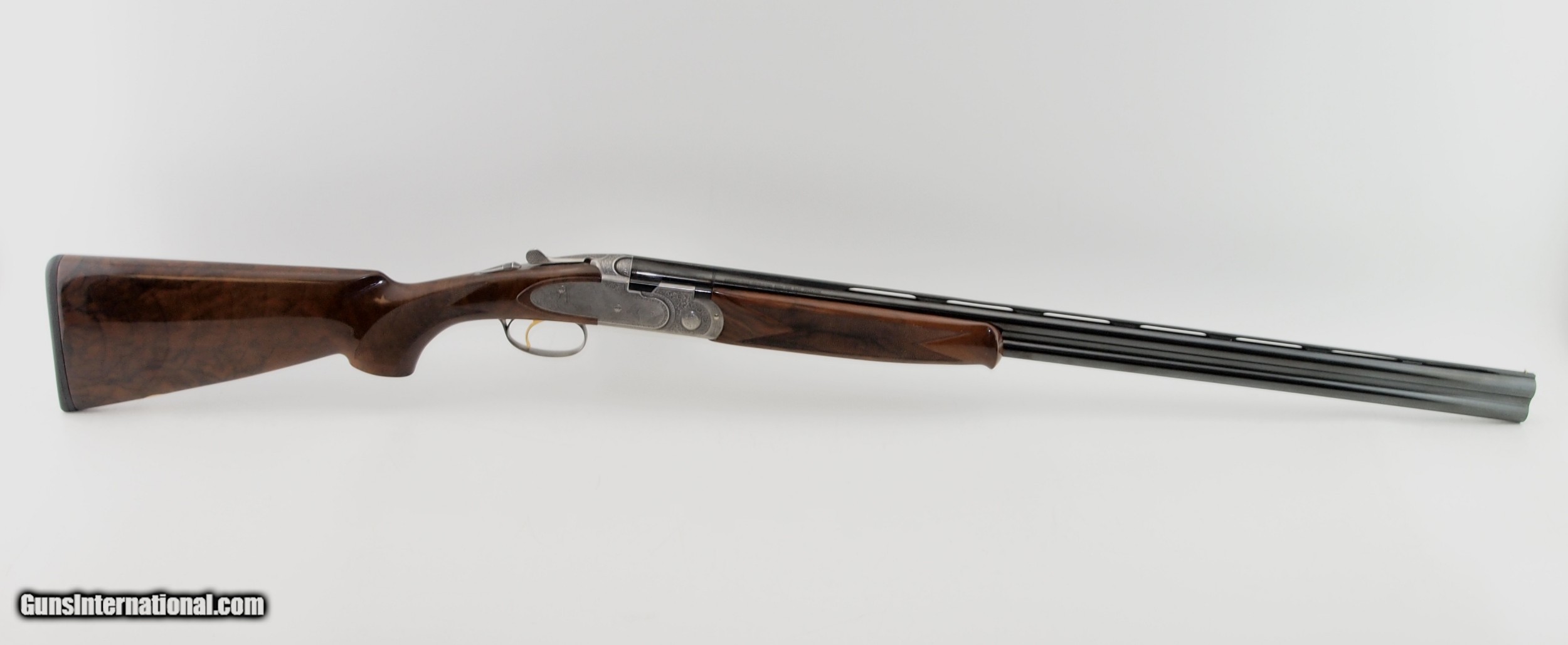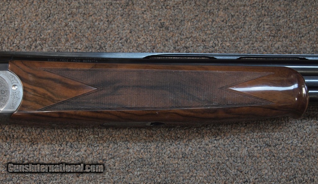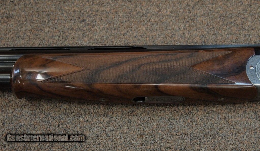 Description: Beretta 687 EELL Diamond Pigeon 20 GA WCase, 28" vented rib bbl, smooth shiny bores, choke tubes included: Full - IMPMOD - MOD - IMPCYL - SKEET, blued finish, silver bead front sight, hand-chased engraved receiver with super-fine classic game scenes enhanced by intricately detailed motifs of branches - leaves - flowers, beautiful checkered premium Europian Walnut grip stock - forearm, LOP - 14 1/2", DAC - 1 5/8", DAH - 2 3/8", very light handling marks, single gold trigger, and black Beretta recoil pad. Add 3% for Credit Card Shipping $35.00 SOLD |
