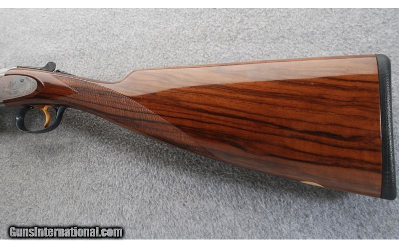 Description: This Beretta Diamond Pigeon is in excellent condition and is the top of the line in Beretta’s 680-series over/under shotguns. This shotgun features magnificent hand carved engraving and specially selected walnut for the stock and front hand guard. The balance point on this gun was placed at the hinge pin which makes it simple and super natural to pull up and point. This is an all-around amazing gun to have in your hands. SOLD Caliber Info: 20 gauge. Chambers: 3 inch over/under. Metal Condition: Excellent. Wood Condition: Excellent. Bore Condition: Excellent. Barrels: 26 1/2 inch ventilated rib with front bead. Triggers: Single. Stock: Specially-selected walnut stock. Stock Dimensions: 14 1/2 inch LOP. Fore End: Matching specialty selected front guard. Butt Pad: Beretta butt pad. Weight: 6 lbs. 14 oz. Sights: Ventilated rib with front bead. Chokes: Comes with improved cylinder, modified and full. Extras: Comes with factory case, manual, chokes and choke wrench. Item Location: Greenville, SC |