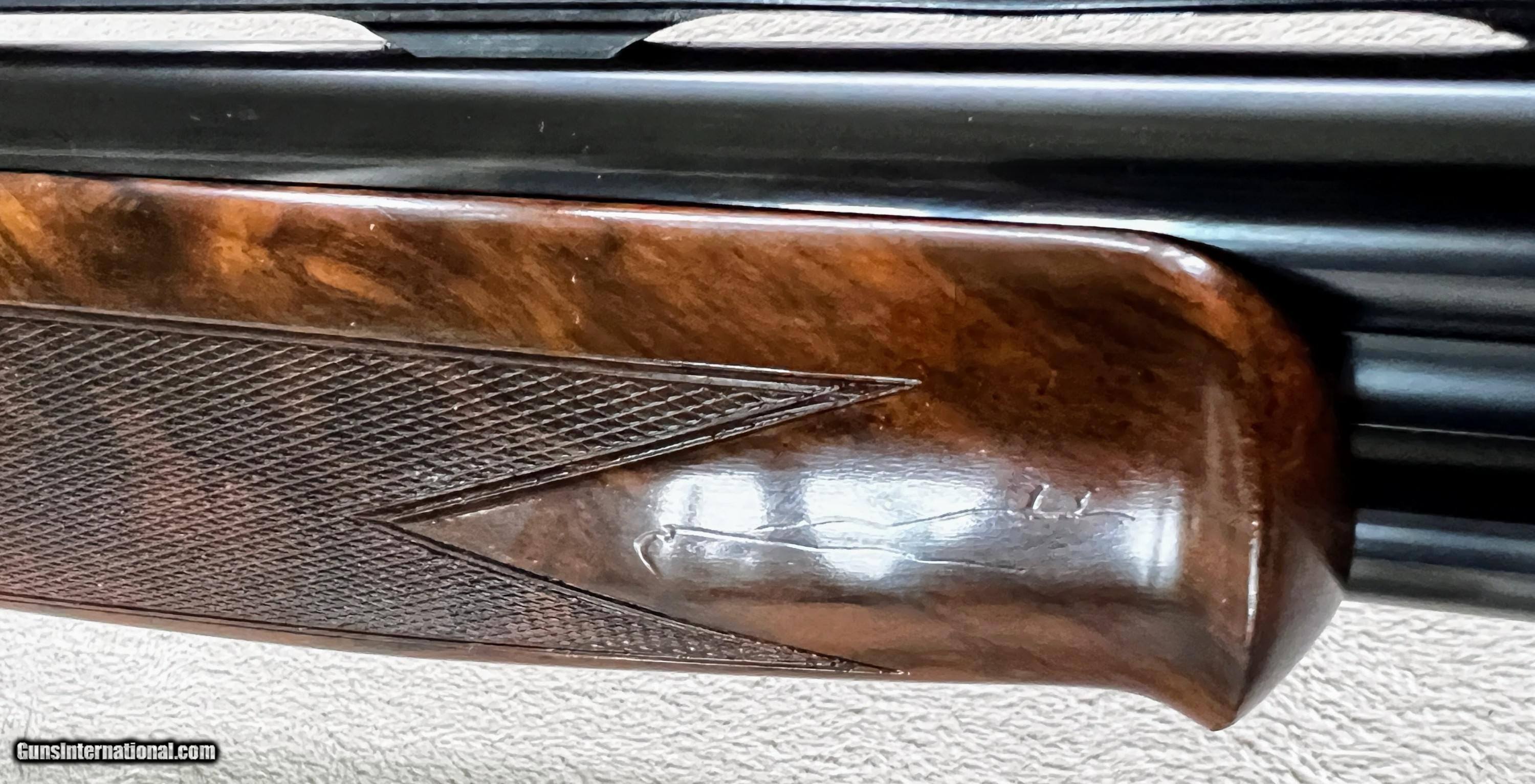 Description: This is a beautiful Beretta EELL Diamond Pegeion in 20Ga. It sports a 28" barrel with 3" chamber and single selective trigger. It will ship with 4 extended chokes, IC, LM, M, LF. It also ships with a factory Beretta blue case (not original to gun). Subjectively I would rate the gun 90% as it is beautiful but it does have some usage marks that I have tried to show in the photos. The forearm has small chips out of the back on both sides. The stock appears to be standard and has a 14 1/2" LOP. Please see the photos to determine condition for yourself. Let me know if you need additional photos. Please ask questions before purchasing. Sold only where legal to own and you are expected to know your local laws. Cashiers or certified check only. Credit cards are not available. Shipping will be $50 and I will include insurance. SOLD Shotgun Gauge: 20 Gauge Manufacturer: Beretta Model: 687 EELL Ejectors: Yes Condition: Very Good Metal Condition: Very Good Wood Condition: Very Good- small chips on fore end Bore Condition: Excellent Barrels: Blued Barrel Type: O/U Action: O/U Triggers: Single- Selective Stock: Walnut Stock Comb: 1 3/8 Stock Heel: 2 1/8 Stock Cast: Neutral Fore End: Schnabel Butt Pad: Factory LOP: 14.5 Rib: Vent Finish: Excellent Chokes: Extended: IC, LM, M, LF Engraving: Factory Case: Beretta |