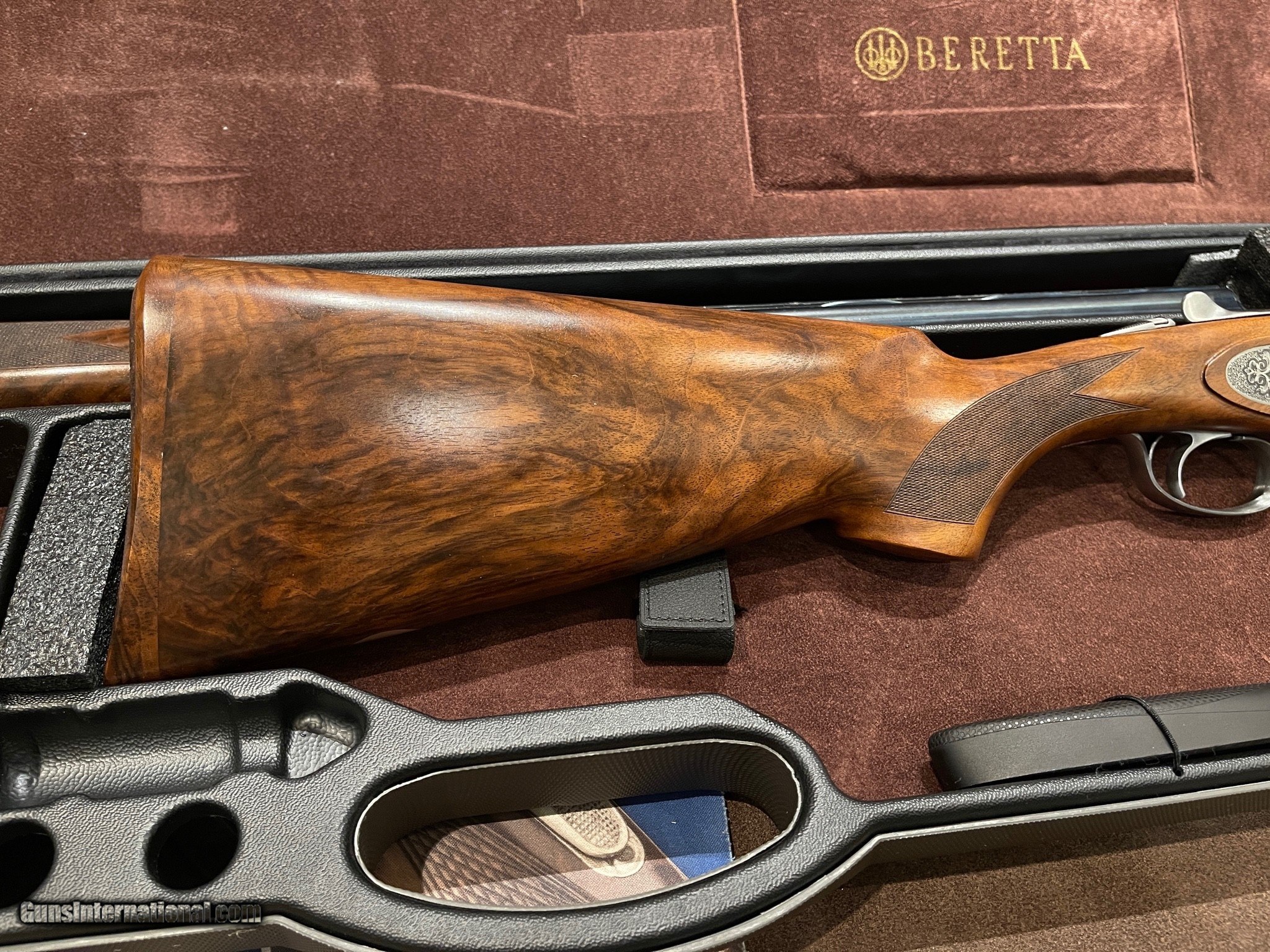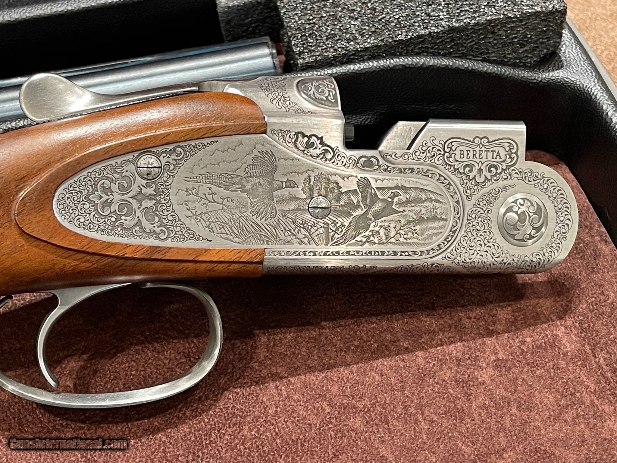 Description: Berett 687 EELL Diamond Pigeon 410ga 28" barrels The exceptionally strong, low-profile receiver is elegantly adorned with exquisite game scene and intricate scroll engravings, made with the best in class premium laser engraving technology. The stock and fore-end are superior quality walnutembellished with hand cut checkering, demonstrating how improved performance and refined beauty can be perfectly matched. SOLD Shotgun Gauge: .410 Gauge |