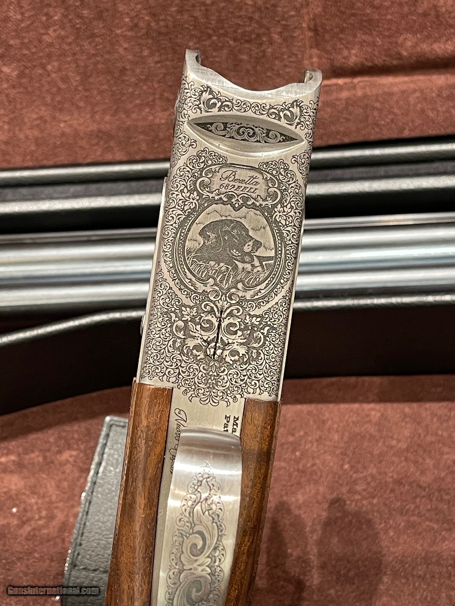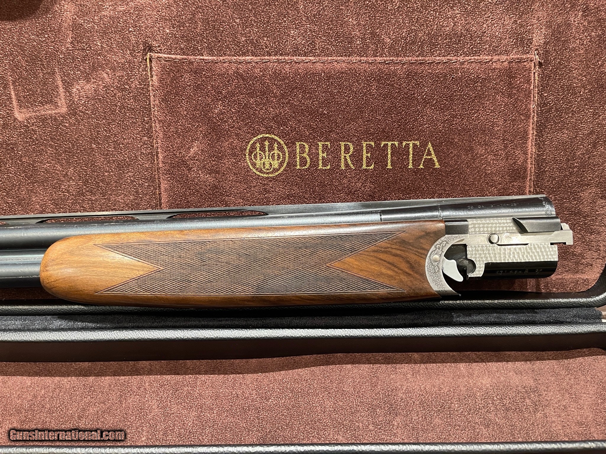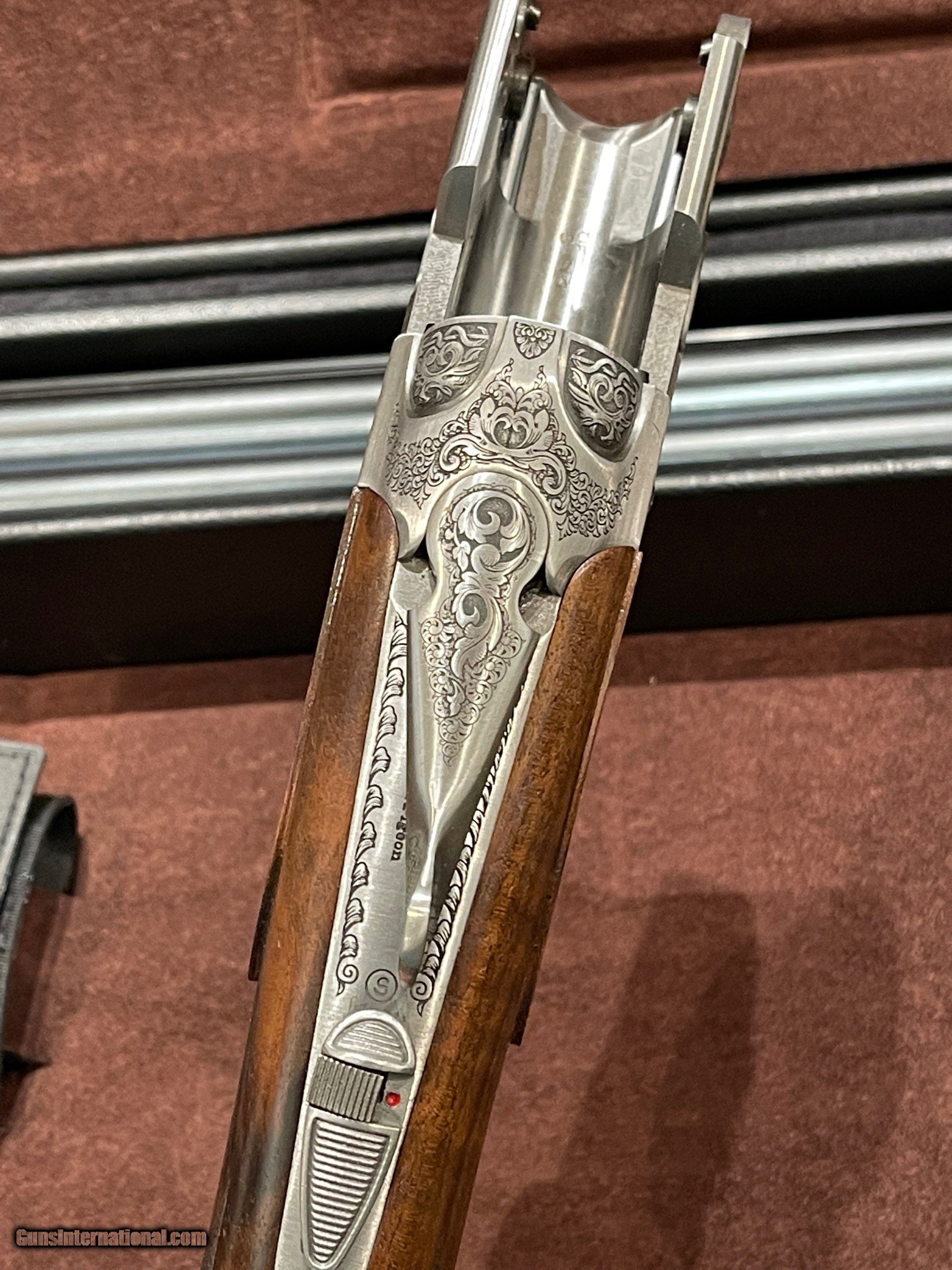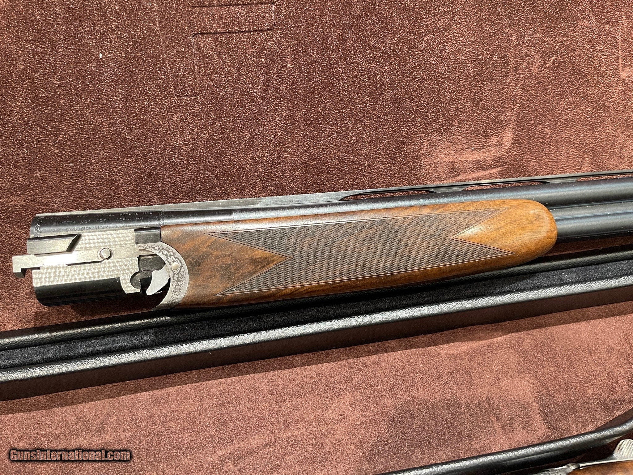 Description: Berett 687 EELL Diamond Pigeon 20ga 28" barrels The exceptionally strong, low-profile receiver is elegantly adorned with exquisite game scene and intricate scroll engravings, made with the best in class premium laser engraving technology. The stock and fore-end are superior quality walnutembellished with hand cut checkering, demonstrating how improved performance and refined beauty can be perfectly matched. SOLD Shotgun Gauge: 20 Gauge |