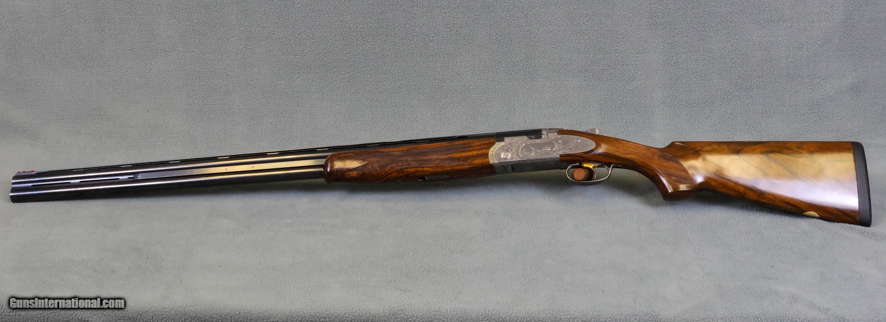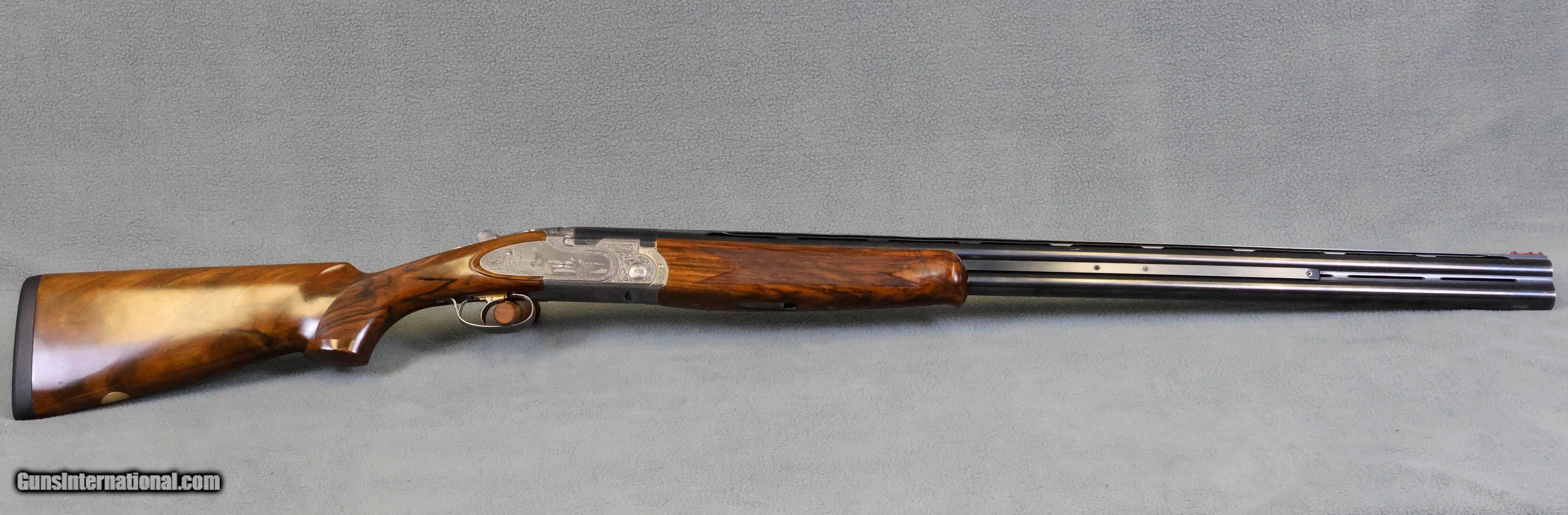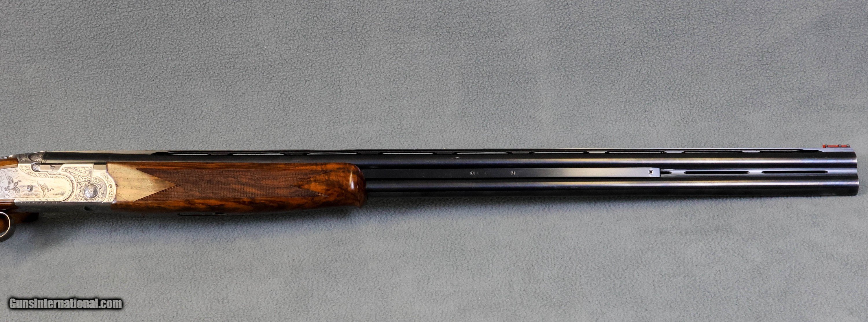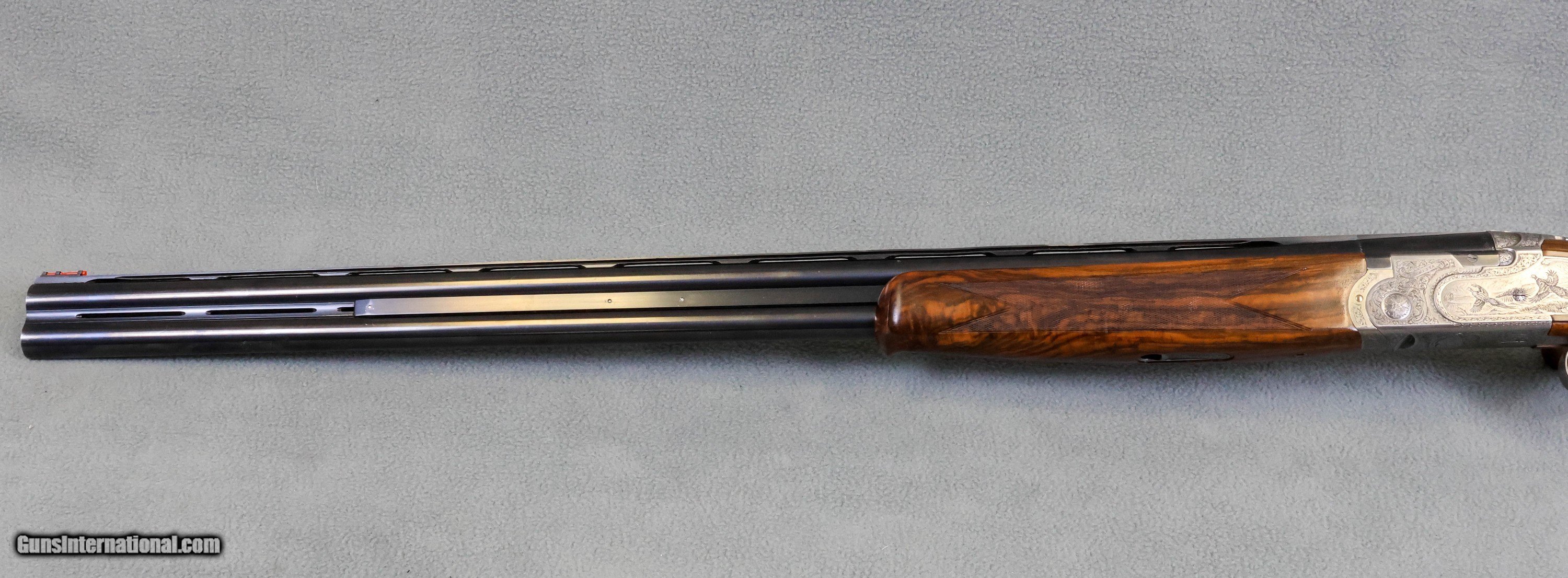 Description: Beretta 687 EELL Diamond Pigeon 12ga 32" 4 Barrel Set Description Used- Beautiful Beretta 687 EELL Diamond Pigeon 12ga 32" 4 barrel set. Gun comes with 3 gauge specific barrels in 12ga, 20ga, and 28ga, and a carrier barrel with .410 tubes. Also includes an air-cushioned, or pneumatic stock that can easily be put back on gun to help reduce recoil. You can use the air pump to increase the air pressure in the stock to affect the amount of compression to find the perfect fit for you. All barrels have also been cryo treated. This is a Beretta Gallery model, engraved by Bottega I. Giovanelli