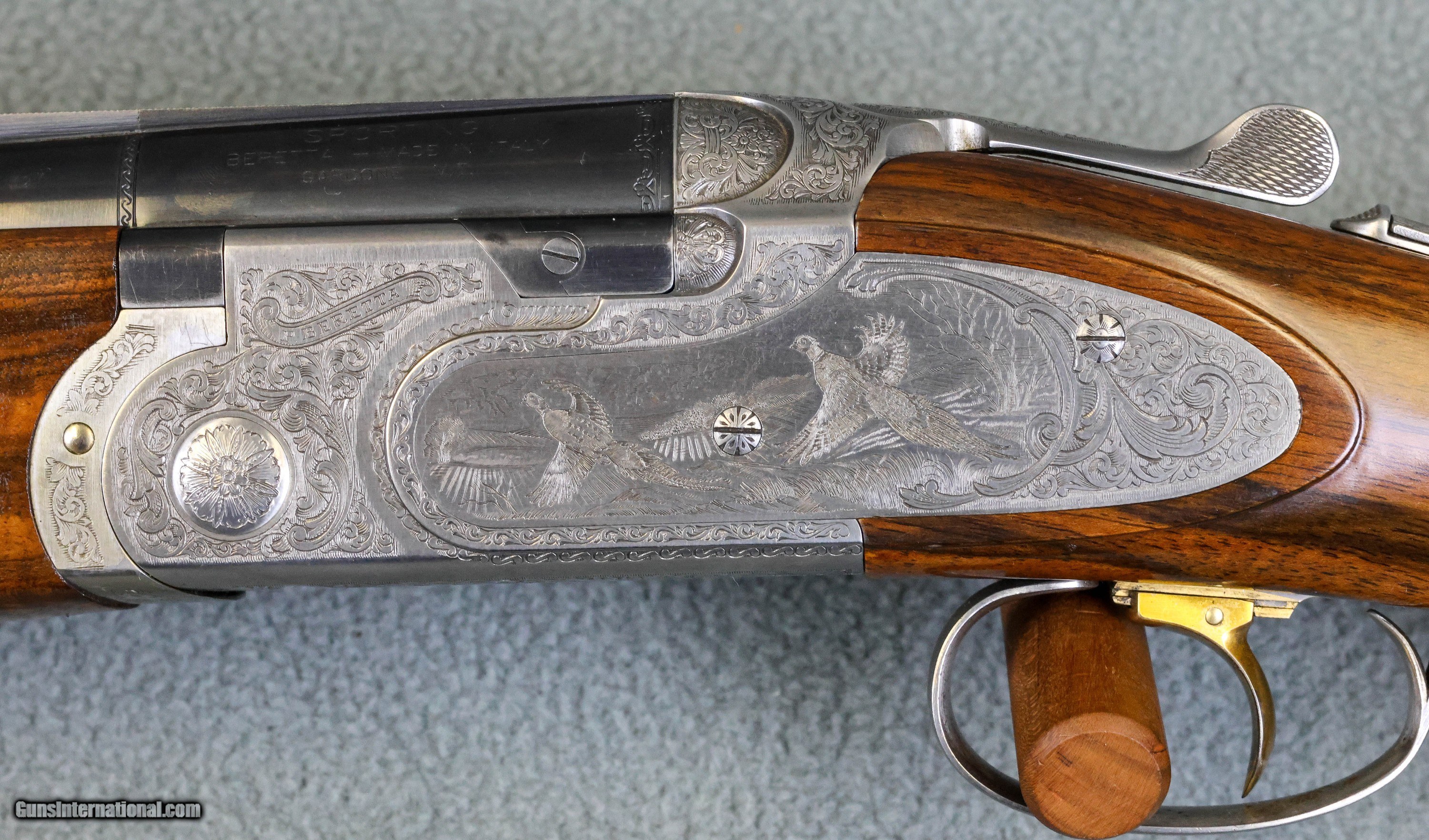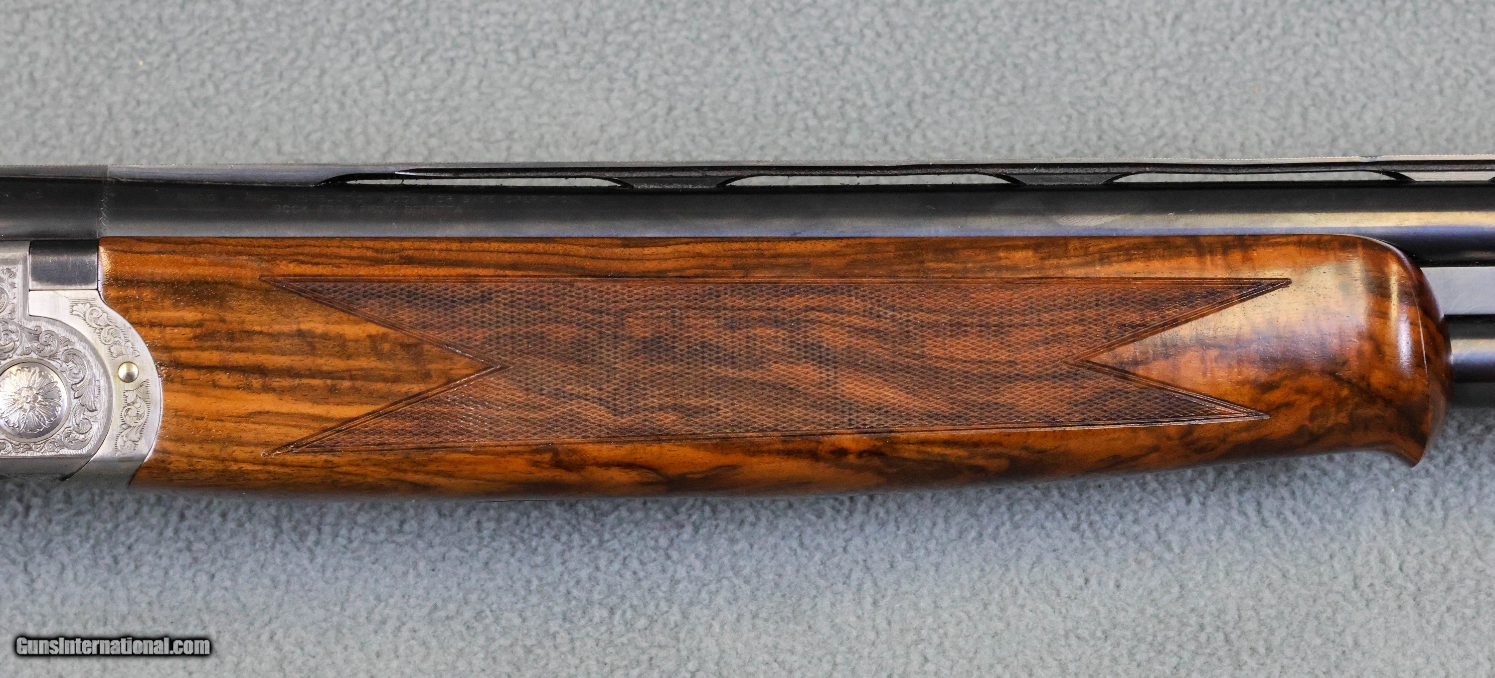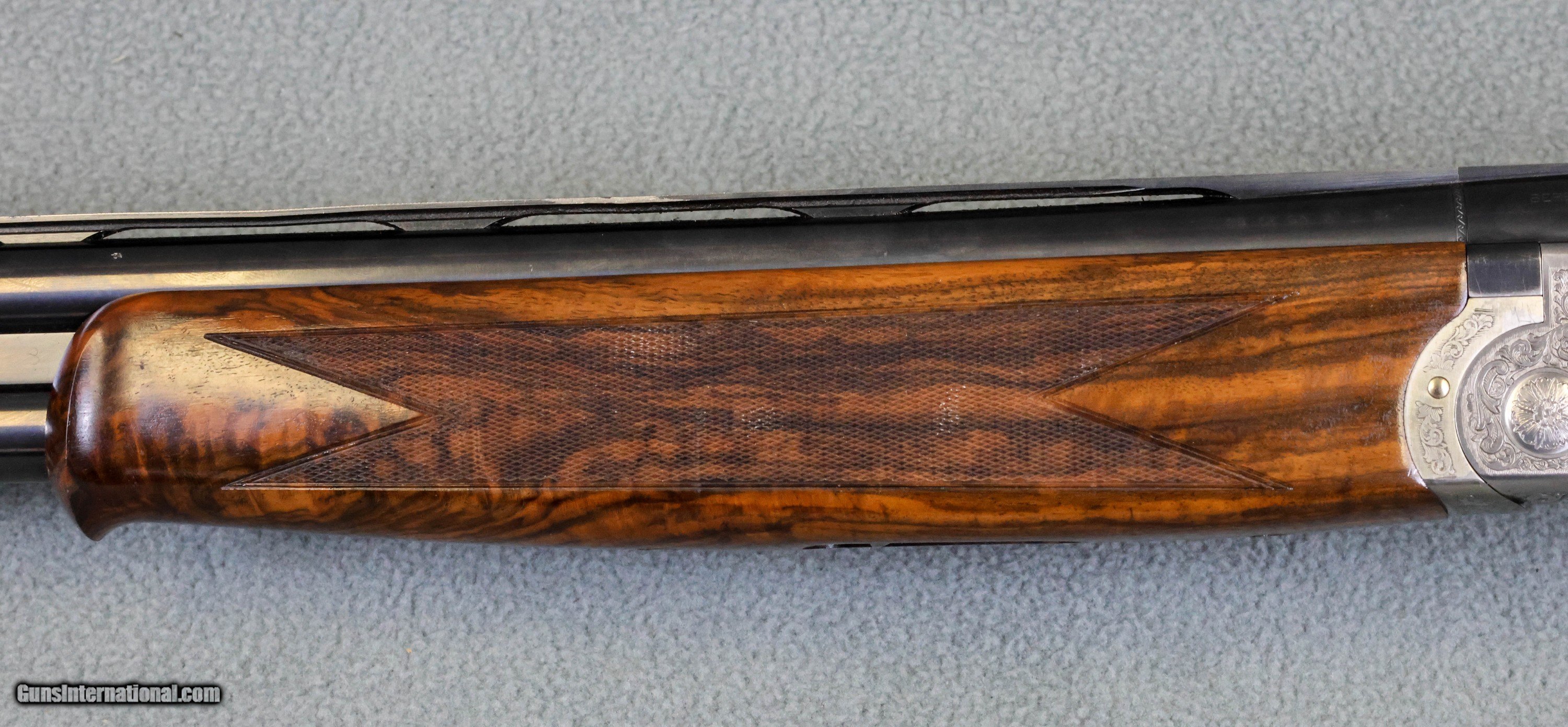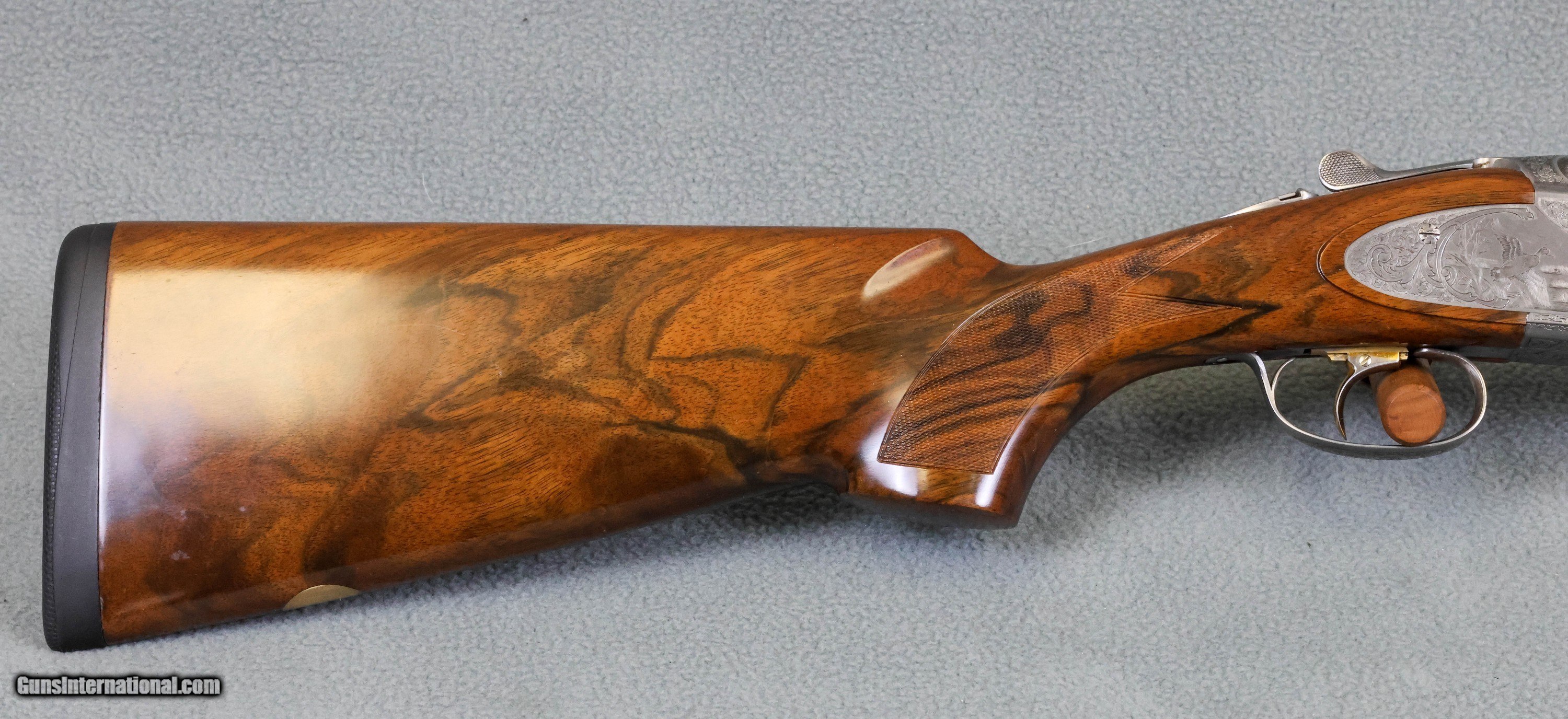 Description: Beretta 687 EELL Diamond Pigeon 12ga 32" 4 Barrel Set Description Used- Beautiful Beretta 687 EELL Diamond Pigeon 12ga 32" 4 barrel set. Gun comes with 3 gauge specific barrels in 12ga, 20ga, and 28ga, and a carrier barrel with .410 tubes. Also includes an air-cushioned, or pneumatic stock that can easily be put back on gun to help reduce recoil. You can use the air pump to increase the air pressure in the stock to affect the amount of compression to find the perfect fit for you. All barrels have also been cryo treated. This is a Beretta Gallery model, engraved by Bottega I. Giovanelli
