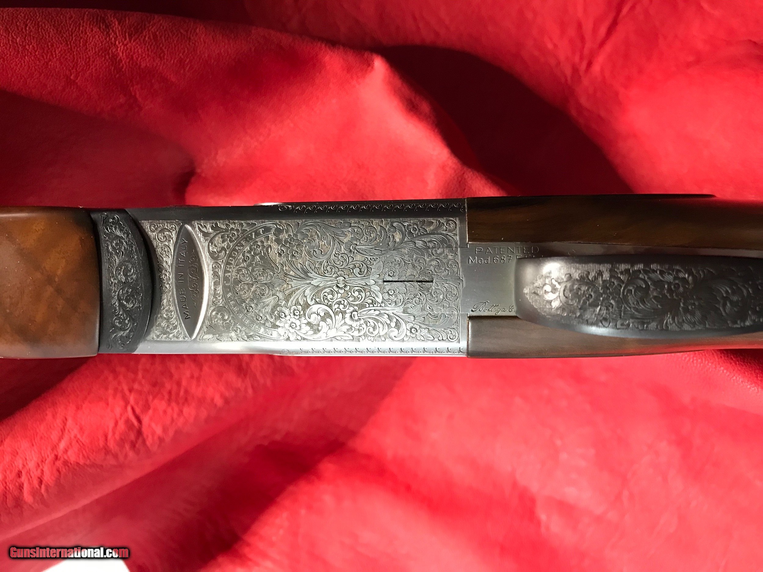Description: Italian manufactured Beretta 687 EELL Sporting Over/Under Shotgun,28 inch matte vent rib barrels, screw-in choke tubes (with full, modified, SK and SK choke tubes), matte finished checkered walnut forearm and pistol grip stock with initial plate, some minor handling marks as in photos, gold single select trigger, wonderfully engraved receiver and side-plates, 14 5/8 inch LOP over a 3/4 inch recoil pad, 2 3/4 inch 12 Gauge. Action is tight as new. Bores are bright. Comes with a Beretta hard case, stock removal tool, and all paper-work. Serial Number: L476XXB Model: J687952 Product Description: 687EELL D PIGSPTG 12/28/2-3/4 Approximate Manufacture Date: 1999 Buyer pays Shipping USPS and Insurance to your FFL. If your FFL requires FFL to FFL add $35 to cover that cost. Standard 3 day non-firing inspection. Any questions please email. SOLD Shotgun Gauge: 12 Gauge |