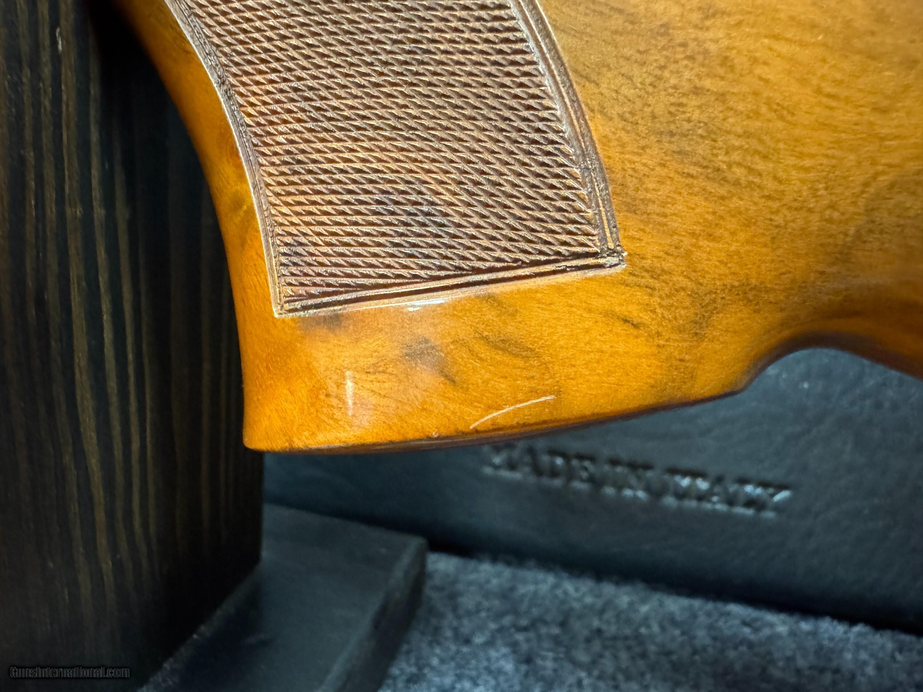 Description: For sale on consignment: Beretta 687 EL Gold Pigeon 12 Gauge This Beretta 687 EL Gold Pigeon is an excellent example of a shotgun that blends Italian craftsmanship with field-ready performance. The EL variant elevates the classic 687 with elegant gold inlays of game birds on a coin-finished receiver, hand-cut scroll engraving, and upgraded wood with a rich oil finish. The barrels are topped with a ventilated rib and mid-bead/front sight setup, making it equally at home on the sporting clays course or in the upland field. The action is tight, the bores are in great shape, and there are only a couple of dings in the stock. Something else to note is slight wear on the barrel as well. Overall this gun is in great shape and ready to roll in either the field or on the sporting clays course. For more information call us at 715-388-8411 Shotgun Gauge: 12 Gauge Manufacturer: Beretta Model: 687 EL Gold Pigeon Serial Number: M10499B Barrel Length: 30 Chambers: 3 Ejectors: Auto Condition: Excellent Metal Condition: Excellent Wood Condition: Excellent Bore Condition: Excellent Barrels: Over Under Barrel Type: Matte Finish Action: Break Triggers: Single Selective Fore End: Schnabel Butt Pad: Black Rubber Rib: Ventilated Sights: White Bradley style + Silver mid-bead Chokes: Flush Mount Chokes Case: Factory Fitted Hard Case Item Location: WI Price: $3,400.00 Contact Seller |