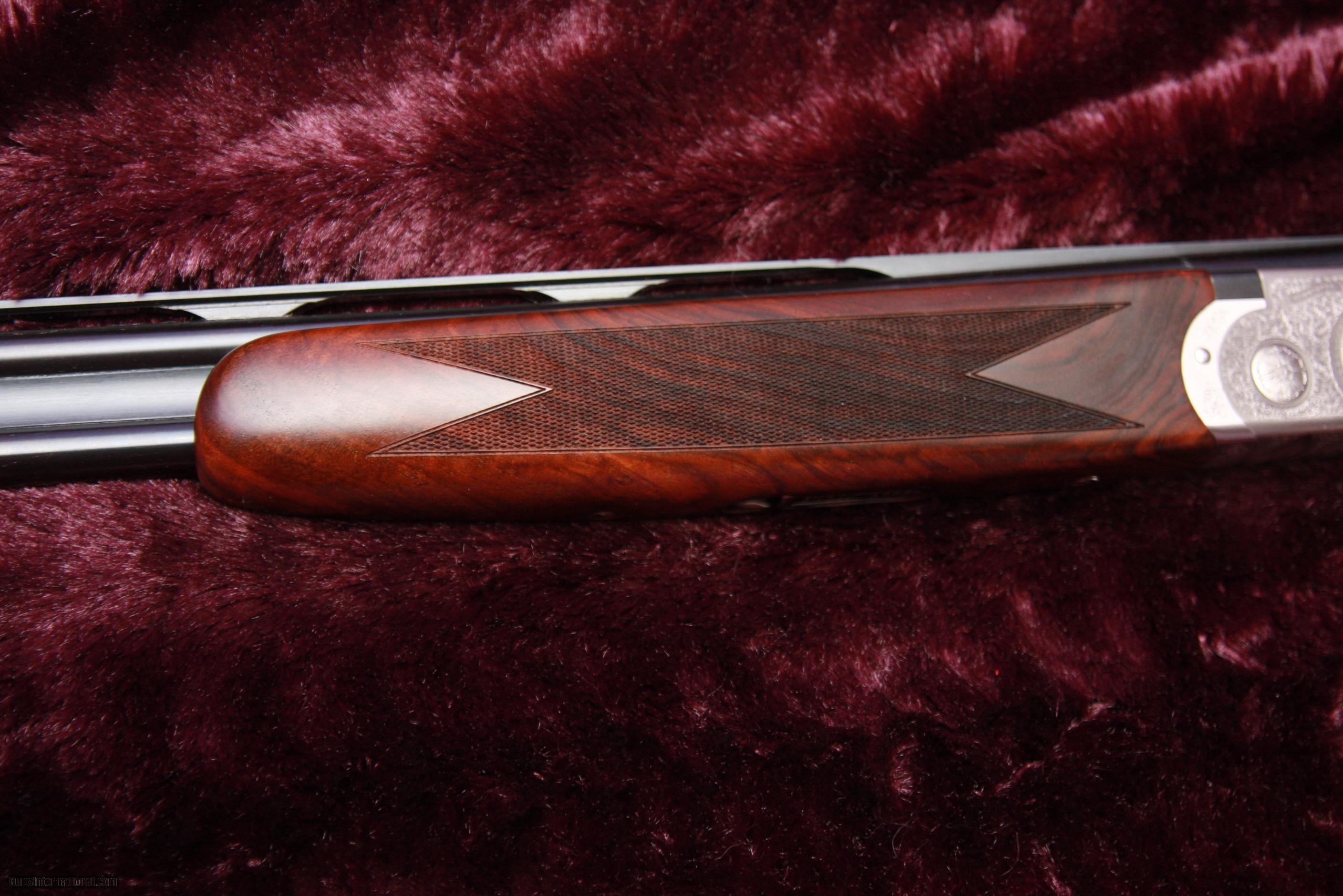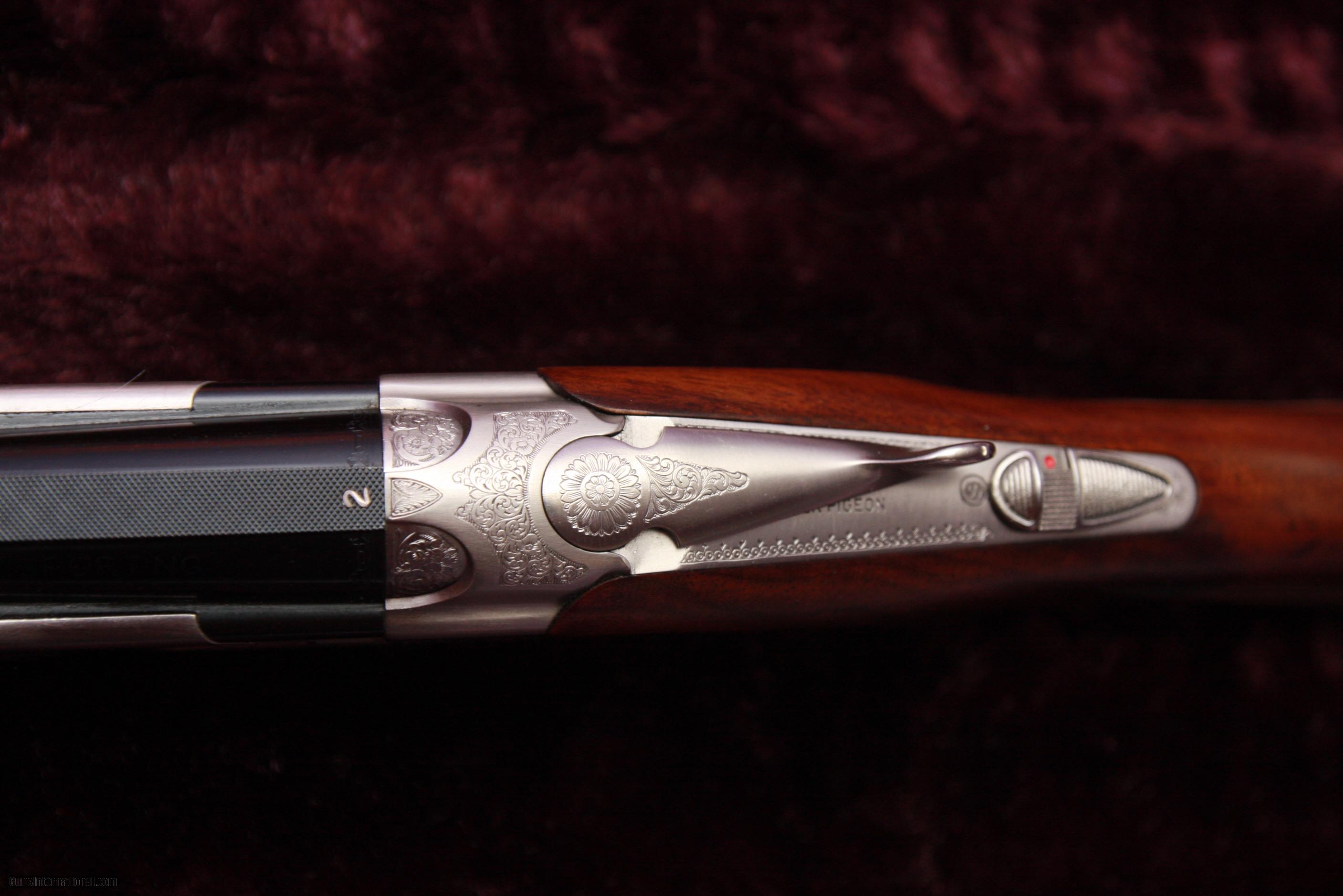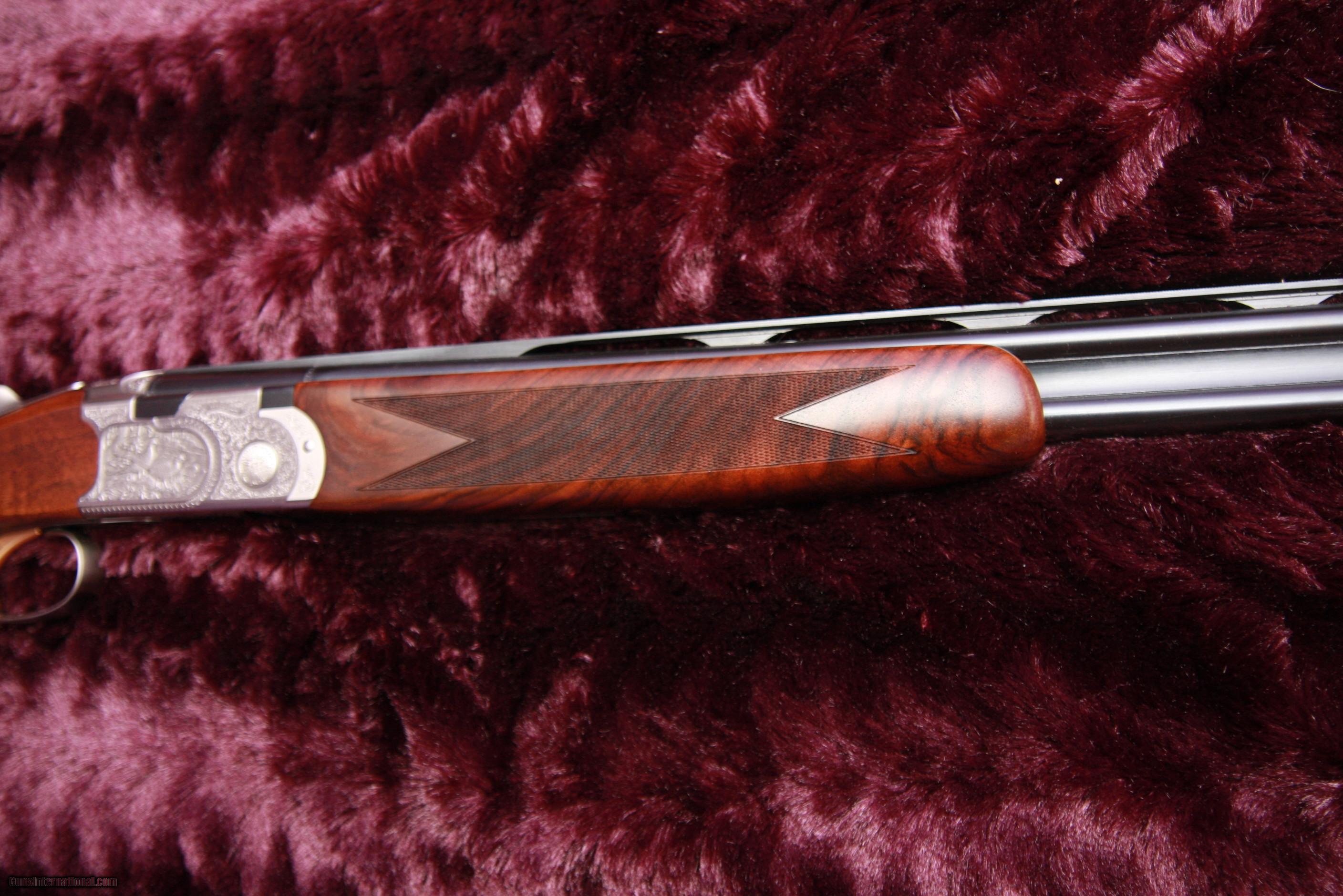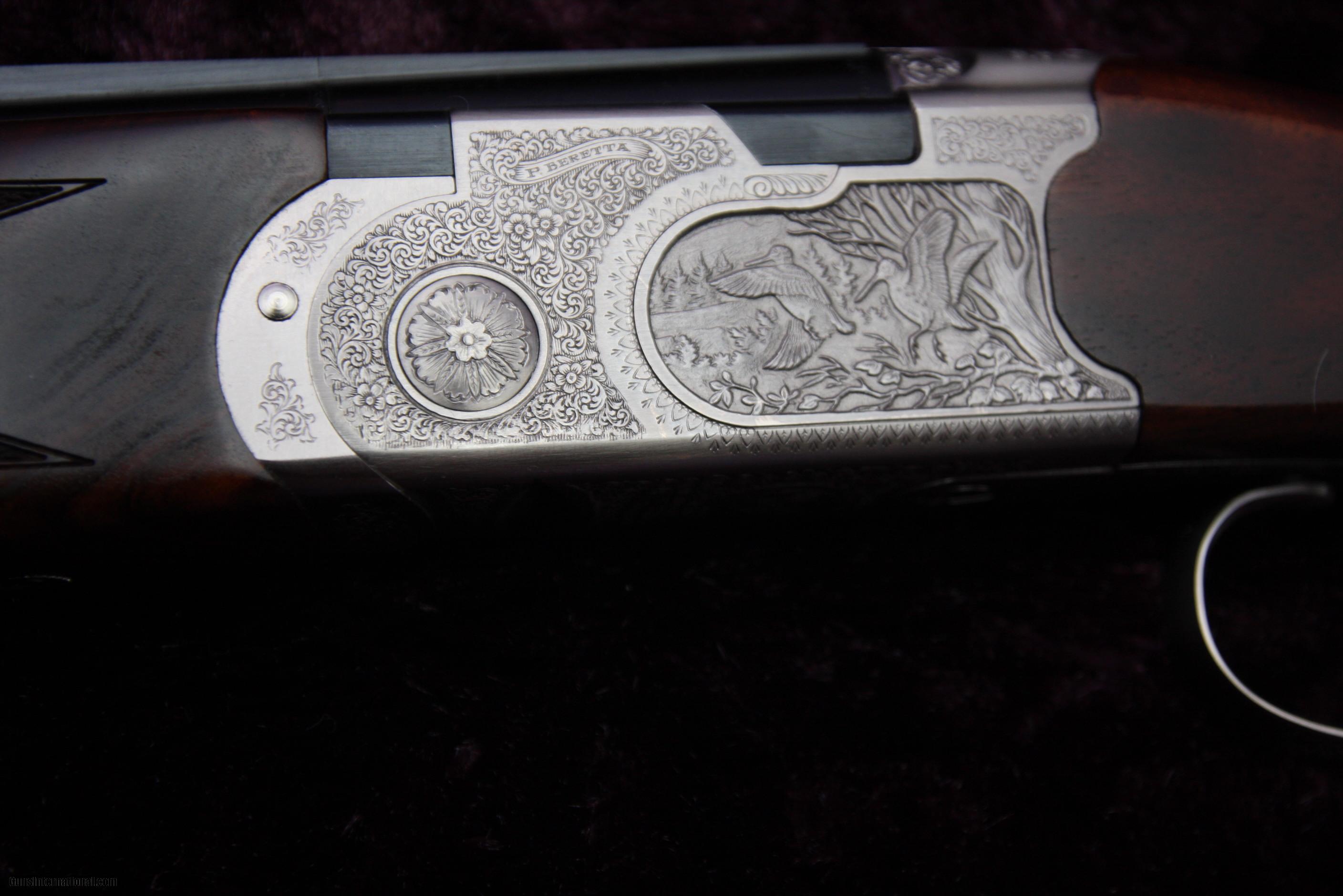Description: ALMOST NEW IN THE BOX A BERETTA 28/410 2 BARREL SET 687 SILVER PIGEON II SIGNATURE SERIES BY JOEL ETCHEN CUSTOM ENGRAVED. THIS GUN HAS JEWELED MONO BLOCK, DEEPLY ENGRAVED GAME SCENES ON BOTH SIDES AND THE BOTTOM OF THE RECEIVER. THIS GUN HAS EELL FANCY WOOD WITH A PISTOL GRIP AND OIL FINISH.THIS GUN HAS A WIDER SPORTING CLAYS VENTILATED RIB WITH A WHITE FRONT BEAD, BRASS MIDDLE BEAD AND GOLD TRIGGER. COMES WITH 5- INTERNAL 28 AND 410 GAUGE CHOKE TUBES, 6 BRILEY SPECTRUM BLACK OXIDE 410 CHOKE TUBES AND A HARD CASE MADE IN ITALY. THIS GUN HAS A 1 1/4" DROP AT THE COMB AND 2" AT THE HEEL. THE LOP IS 14 3/8". IF YOU HAVE ANY QUESTIONS, FEEL FREE TO CALL OR E-MAIL ME. SOLD |