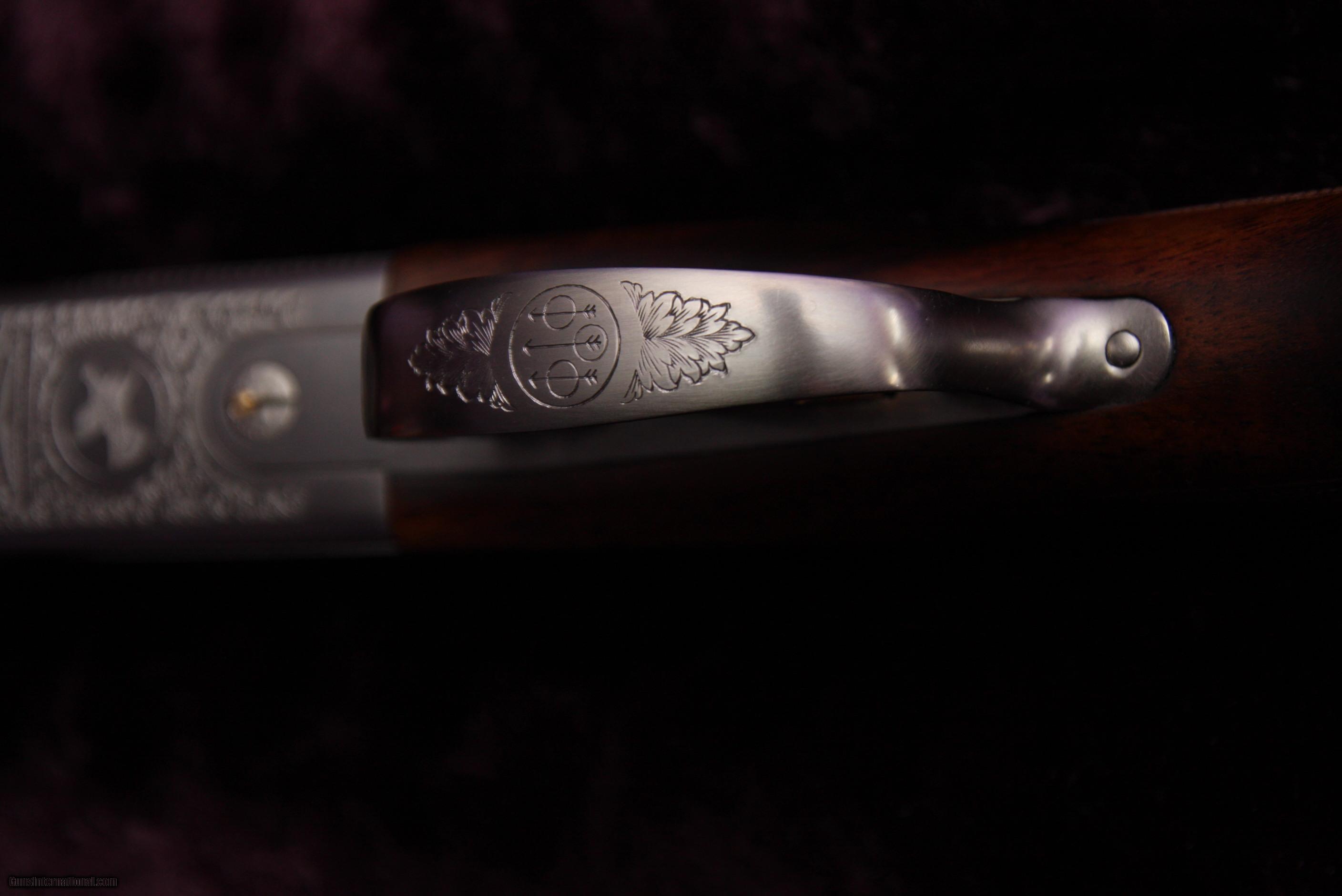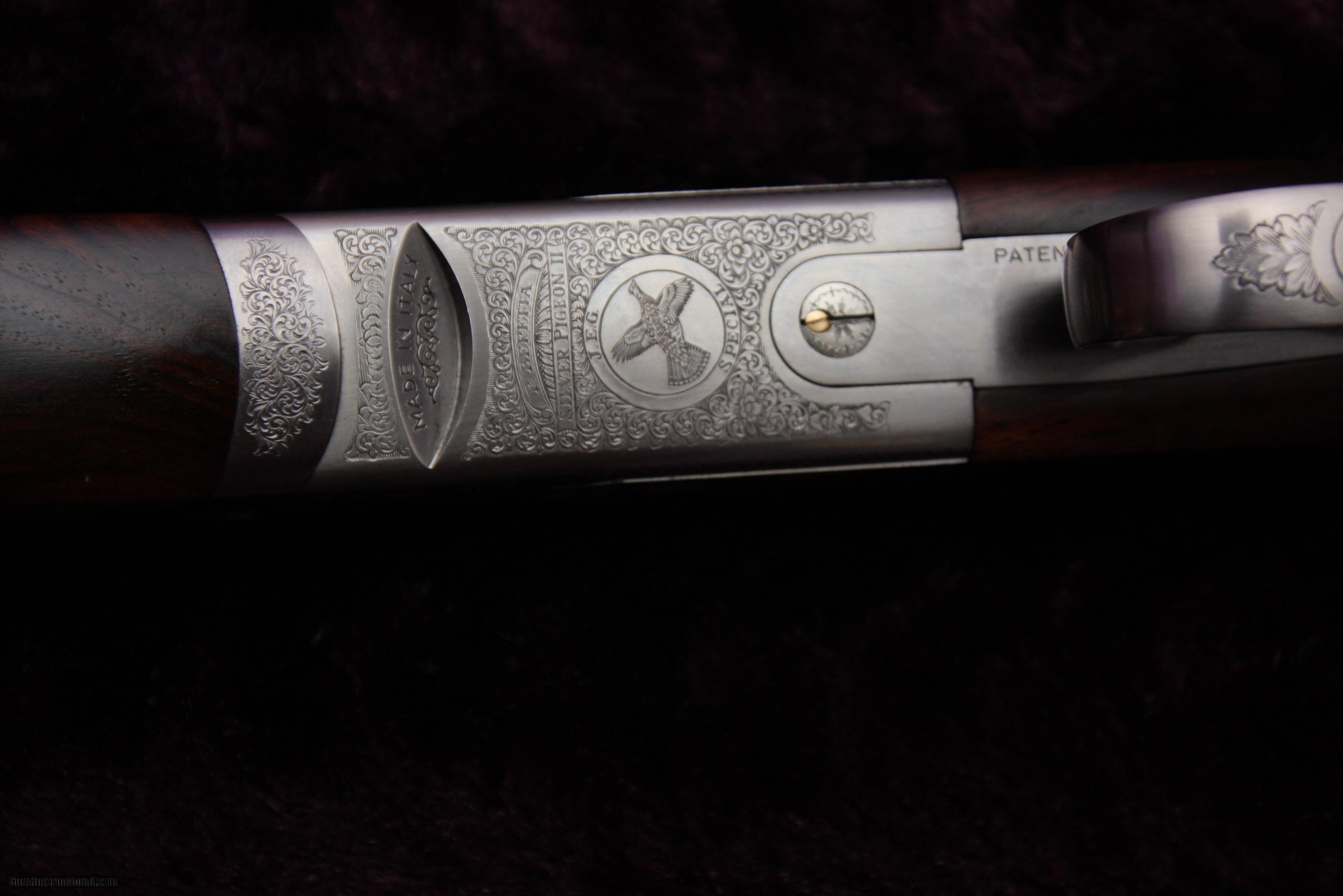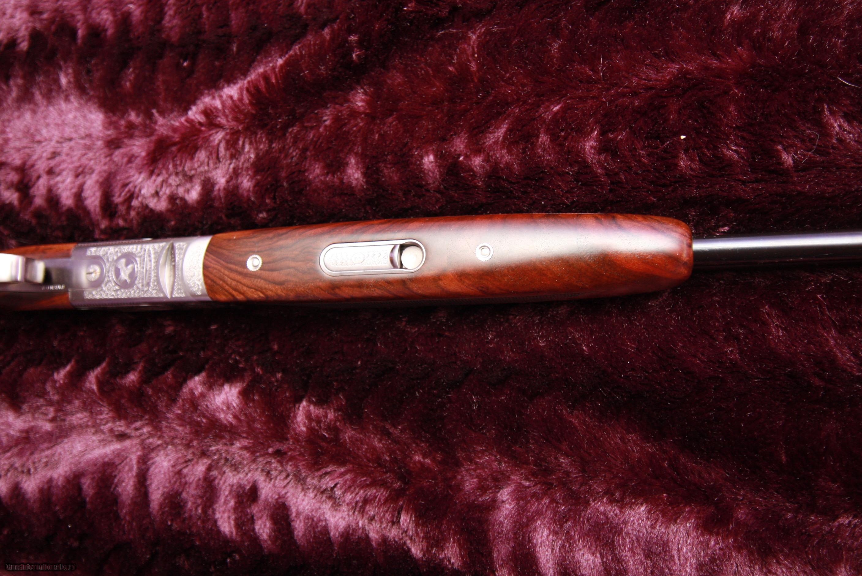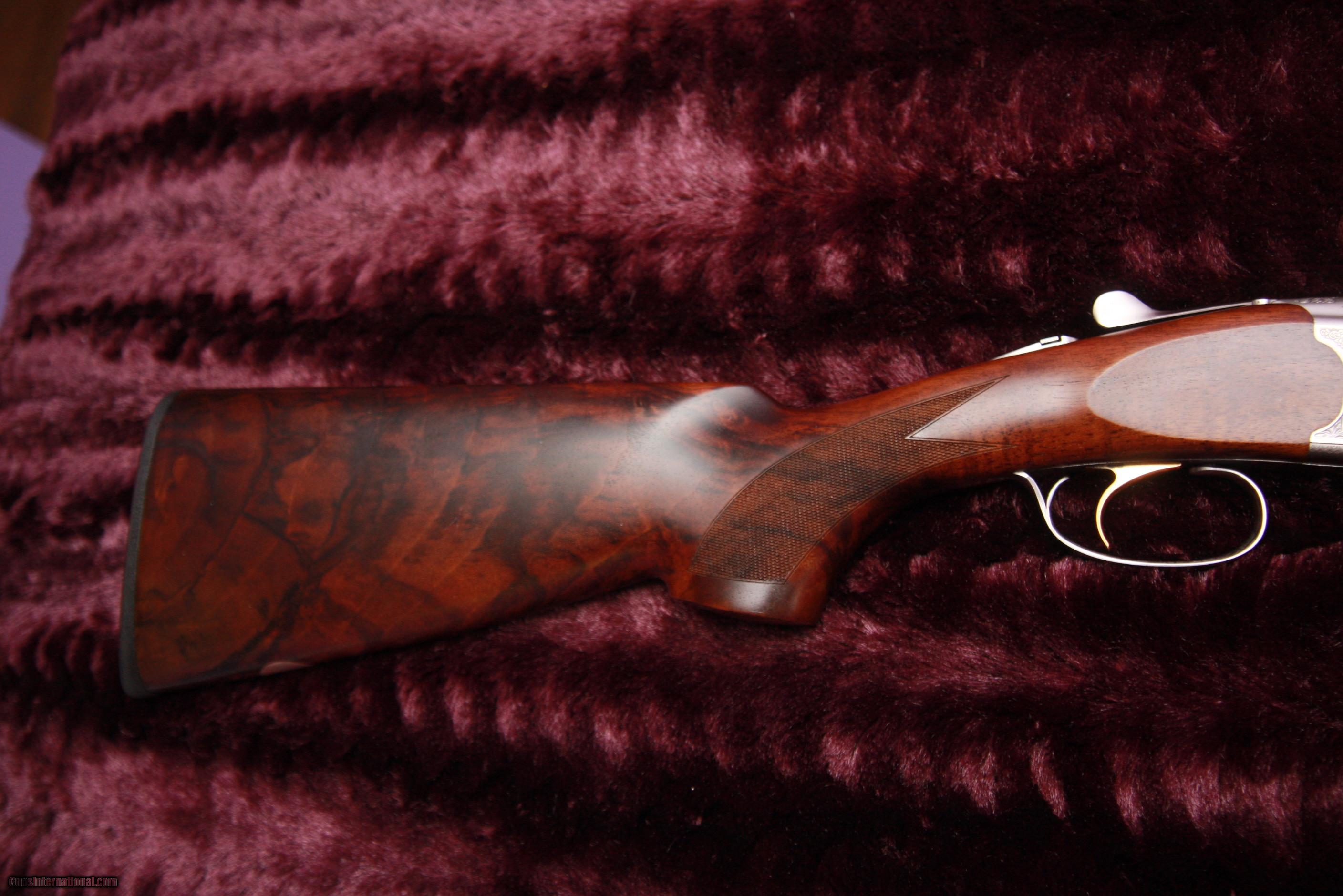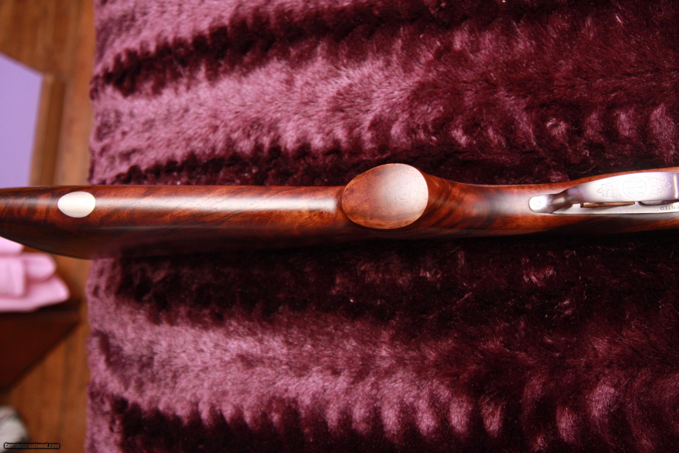 Description: ALMOST NEW IN THE BOX A BERETTA 28/410 2 BARREL SET 687 SILVER PIGEON II SIGNATURE SERIES BY JOEL ETCHEN CUSTOM ENGRAVED. THIS GUN HAS JEWELED MONO BLOCK, DEEPLY ENGRAVED GAME SCENES ON BOTH SIDES AND THE BOTTOM OF THE RECEIVER. THIS GUN HAS EELL FANCY WOOD WITH A PISTOL GRIP AND OIL FINISH.THIS GUN HAS A WIDER SPORTING CLAYS VENTILATED RIB WITH A WHITE FRONT BEAD, BRASS MIDDLE BEAD AND GOLD TRIGGER. COMES WITH 5- INTERNAL 28 AND 410 GAUGE CHOKE TUBES, 6 BRILEY SPECTRUM BLACK OXIDE 410 CHOKE TUBES AND A HARD CASE MADE IN ITALY. THIS GUN HAS A 1 1/4" DROP AT THE COMB AND 2" AT THE HEEL. THE LOP IS 14 3/8". IF YOU HAVE ANY QUESTIONS, FEEL FREE TO CALL OR E-MAIL ME. SOLD |