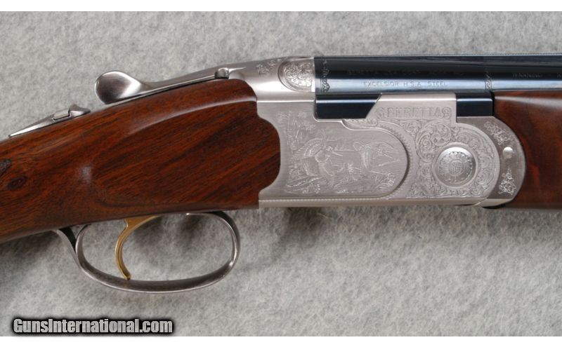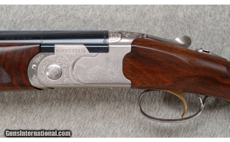 Description: Great game gun or for clay targets. This mid-level gun from Beretta features a low profile receiver with game bird engraving, select walnut stock, checkered grip and Schnabel forend. Premium looks, features and value all in one really nice shotgun. SOLD Caliber Info: 20 Gauge. Chambers: 3" break action over and under. Metal Condition: Very good, glossy blue. Wood Condition: Very good, oil finish. Bore Condition: Very good, bright and shiny. Barrels: 28" blued. Triggers: Single, selective gold colored trigger. Stock: Checkered walnut with oil finish, flat pistol grip knob. Stock Dimensions: 1 5/8" DAC, 2 1/2" DAH, 14 3/4" LOP. Fore End: Matching checkered walnut with oil finish, schnabel end. Butt Pad: Factory rubber pad. Weight: 6 lb. 10 oz. Sights: Vent rib with single bead. Chokes: Removable choke system. Extras: Box Item Location: Dundee, MI |