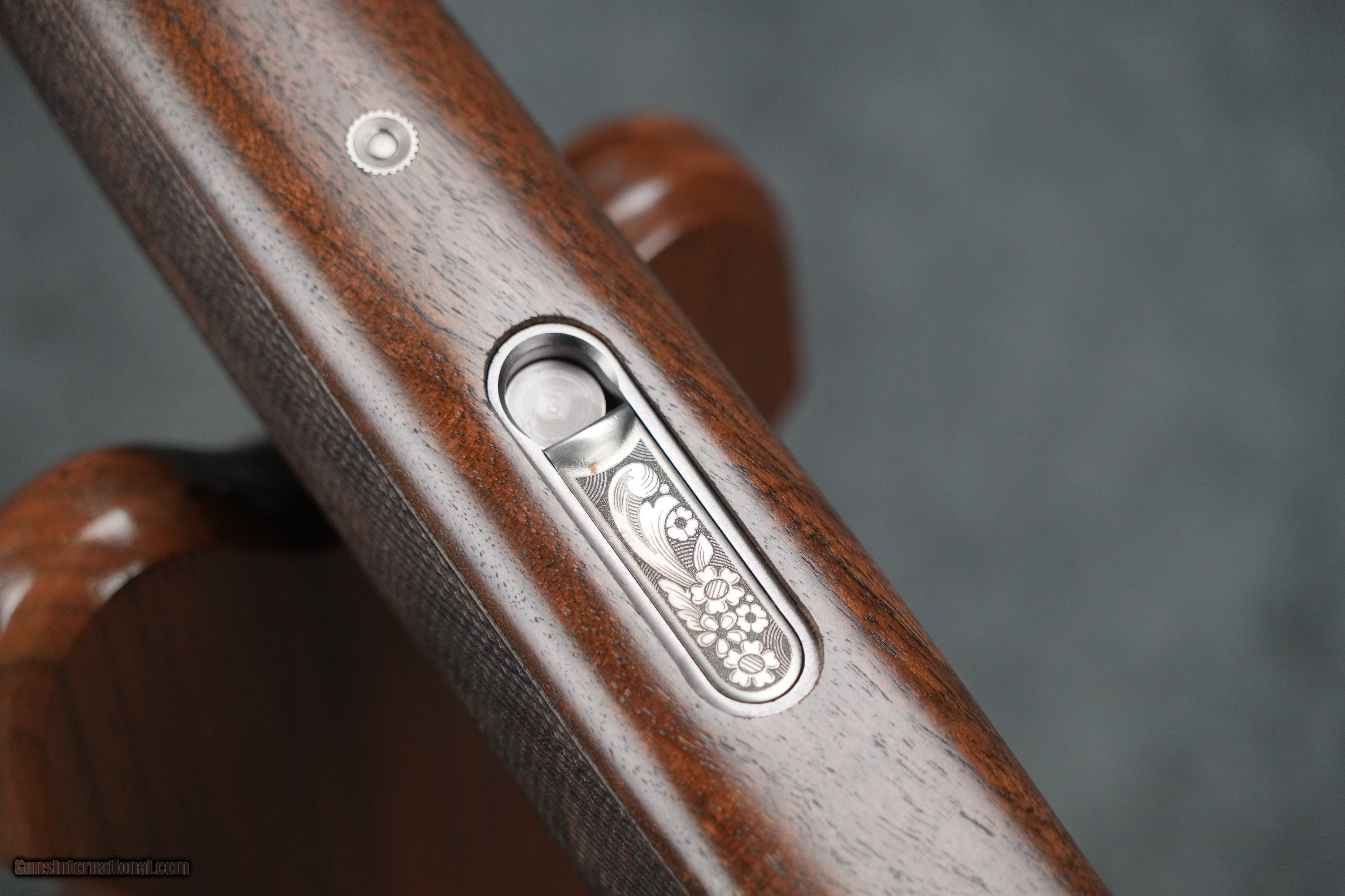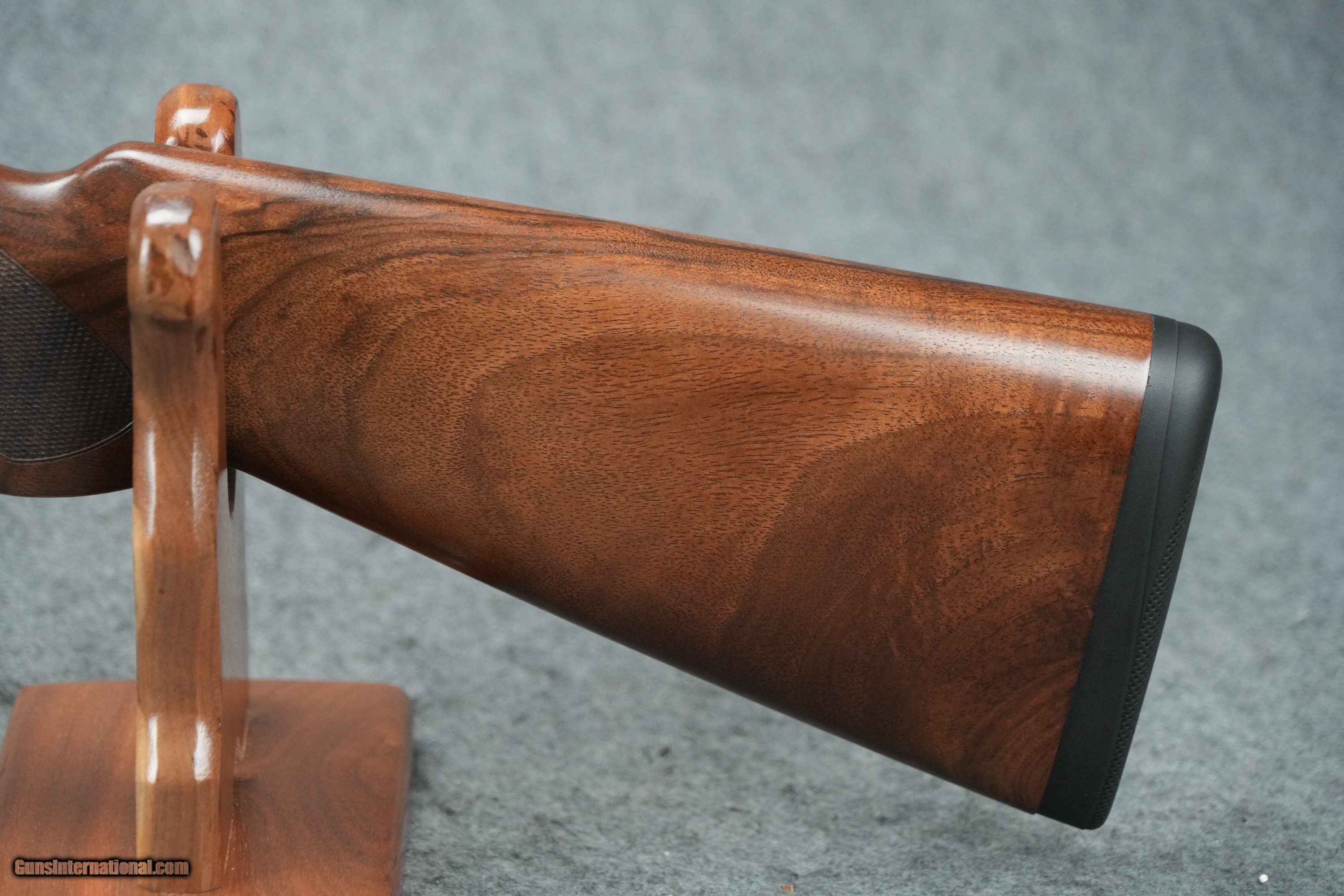 Description: What’s impressive at first sight, in the new Beretta Silver Pigeon III, is the superior quality of the walnut stock and fore-end; its beauty further exalted by a precious oil finish and the newly designed, ergonomic checkering executed by Laser technology. The Schnabel fore-end and oval initials shield further personalize these handsome shotguns. If the standard shock absorbing Gel-Tek recoil pad makes a day of intense hunting even more enjoyable, then the Truglo® luminous front sight (in alternative to the classic nickel silver one) assures maximum performance even in conditions of scarce visibility. The cold hammer forged and deeply blued barrels come with the appreciated screw-in Mobilchoke® tubes. On the Silver Pigeon III, the rich engraving perfectly marries the ornate floral motifs of the receiver to the lovely hunting scenes of the side panels depicting quails and woodcocks on the smaller gauges. The “gold” Beretta logo stands out on the trigger plate making the firearm identifiable in the gun rack at a glance. The special Beretta nickel base treatment protects the receiver from weather conditions. Beretta 687 Silver Pigeon III 20 Gauge 28” Barrels 3” Chamber Game Scene & Floral Motifs Engraving SOLD Shotgun Gauge: 20 Gauge Manufacturer: Beretta Model: 687 Silver Pigeon III Barrel Length: 28" Barrels Condition: BRAND NEW |