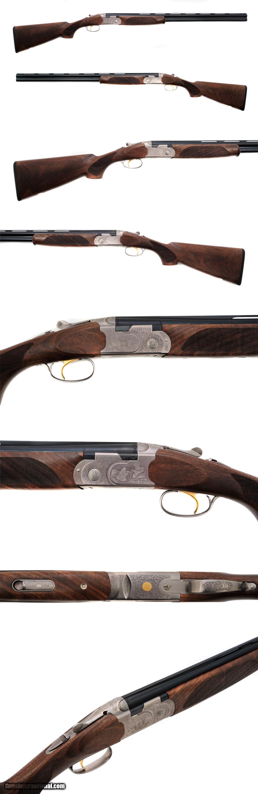 Description: Shotgun type: O&U Action: Boxlock Ejectors: Yes Trigger: Single Selective Grip: Pistol Grip Forend: Checkered Lop: 14 1/2 " Pad thickness: 0.5 " Type of butt: Factory Drop comb: 1 3/8 " Drop heel: 2 3/8 " Cast amount: 1/8 " Cast: Off Weight: 6 lbs, 4 oz Manufactured in: Italy Finish: Coin Overall condition: NEW Stock condition: NEW Metal condition: NEW Stock: Original finish Metal: Original finish Type of Case: Maker's ABS case Extra barrels: 0 Barrel info: Gauge: 20 ga Chamber: 3 " Length: 28 " Chokes: 5 Factory Chokes Rib type: Ventilated SOLD |