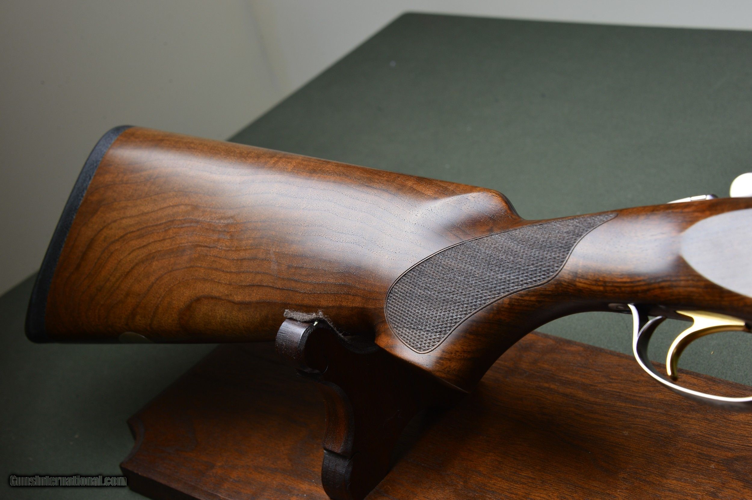Description: *** SOLD *** Like new Beretta 687 Silver Pigeon III with game scene engraving and like-new in Beretta factory case with Beretta choke tubes and extra Beretta recoil pad. 12 gauge over/under with gold single selective trigger and gold Beretta logo medallion inlaid in the bottom of the action. Highly engraved with pheasants on the right side of the action and waterfowl on the left. The action bottom is profusey engraved with a floral scroll perfectly accented by a gold Beretta medallion. *** The 28” multi-choke Excelsior Steel barrels are chambered for both 2-3/4” and 3” shotshells. Topped by a raised ventilated rib. Comes with three Beretta choke tubes in Improved Cylinder, Modified and Full. Versatile gun for game or clays. *** The pistol grip stock and Schnabel forearm are made of nicely figured European walnut. Stock dimensions are 14-3/4” by 1-3/8” by 2-1/4”. Cast off for the righthanded shooter. *** This Beretta has seen very little use and is truly in like-new condition. Berettas are sturdy and handsome guns. Great for game and clays. You will be proud to uncase this gun at the range and carry it afield. *** I am an FFL and will need a signed copy of your dealer’s FFL license. Buyer is responsible for all shipping, insurance, and any other related charges. I give a 3-day non-firing inspection period and will only accept returns at buyer’s expense. SOLD |