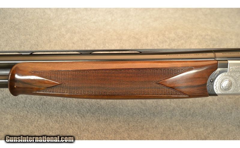 Description: Very nice condition with shortened stock for small-statured shooter or for an adjustable butt plate add-on! SOLD Manufacturer: SN : L76240B ; made in Italy Caliber Info: 12 Gauge Chambers: 3 Metal Condition: Excellent Wood Condition: Very good to excellent overall, with a few dings; stock length cut Bore Condition: Clean Barrels: 28 inches, Over and Under with ejectors; top tang barrel selector Triggers: Single selective trigger, recoil reset, automatic safety Stock: Factory walnut, pistol grip; NOTE stock has been shortened Stock Dimensions: LOP 13" to wood, 13 5/8" with pad ; DAC 1 1/2" ; DAH 2 1/8 Fore End: Matching walnut, checkered Schnabel style Butt Pad: Decelerator black rubber recoil pad Weight: 7 lb 6 oz Sights: Vent rib with front metal bead Chokes: Beretta Mobil Choke system, includes only Full and Modified chokes Extras: No box, no extra chokes Item Location: Greenville, SC |