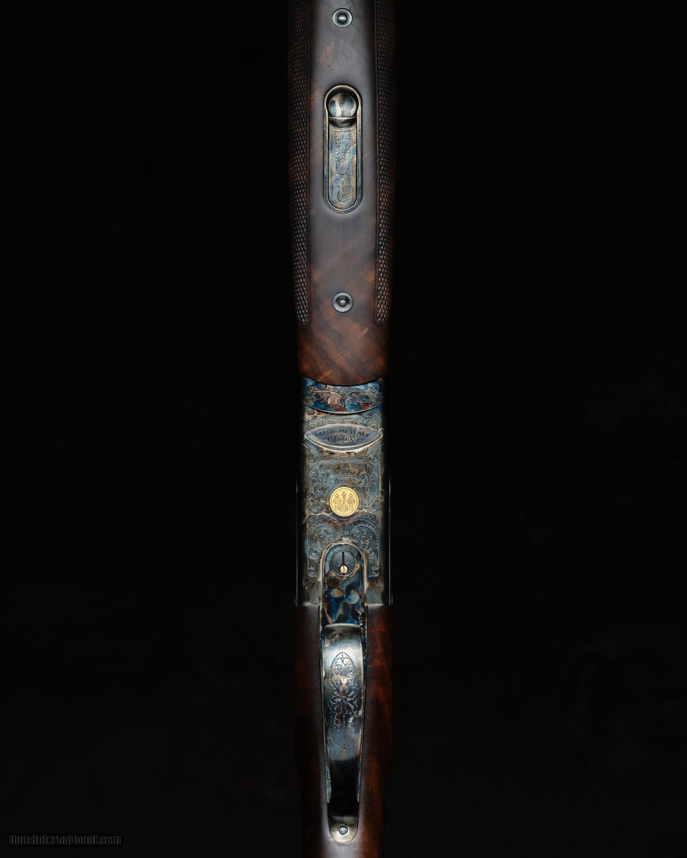 Description: Beretta 687 Silver Pigeon V 20 Ga, 28" vent rib barrels with interchangeable chokes. Excellent case colored boxlock receiver with game scene and gold Pheasant. Single Select Trigger with ejectors. Checkered pistol grip walnut stock with Decelrator Pad. Six Beretta Victory exteneded chokes. Excellent Condition overall with light useage marks on barrels. Wood stock and forend in excellent condition with sling swivel studs. SOLD Shotgun Gauge: 20 Gauge Manufacturer: BERETTA Model: 687 SILVER PIGEON V Serial Number: N09771S Bore: Clean Condition: Excellent Metal Condition: Excellent Wood Condition: Excellent Bore Condition: Excellent Barrels: Near Excellent w/ Light Scuffs Stock Comb: 1 9/16 Stock Heel: 1 15/16 LOP: 13 5/8 Rib: Vent Rib Finish: Color Hardened Sights: Fiber Optic Chokes: Screw-In Choke Left: Various Choke Right: Various Engraving: Game Scene with Gold Pheasant Extras: 11 Total Screw-In Choke Tubes Case: Makers Case Item Location: TX |