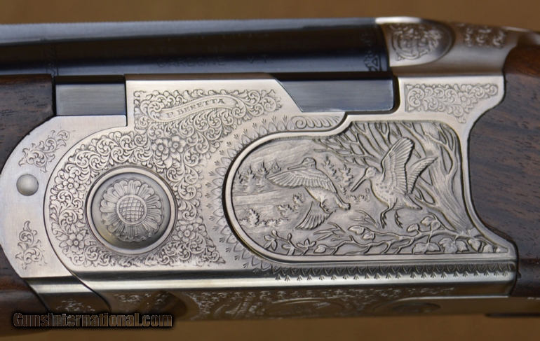 Description: Beretta 687 Silver Pigeon II (Etchen Custom) Sporting Combo 30" 20GA/28GA barrels with sporting rib and individual forearms. Receiver features deep game scene engraving and English style scrolls, upgraded highly figured pistol grip stock with schnabel forearms. Overall outstanding condition, minor handling marks-shows little use. Includes factory case, chokes and tools. SOLD |