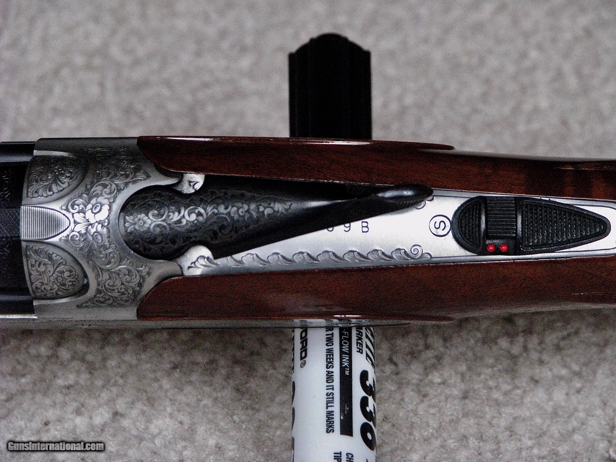 Description: EXCELLENT Beretta 687EELL 20GA, 26.5" barrels, 3" chambers, Single Selective Trigger, Auto Ejectors. Has coin finish sideplates with Giovanelli true hand-engraving of snipes on one side and pheasants on the other. Comes with 4 flush mobilchokes (F, M, IC, SK) and original Beretta hard case. Beautiful feather-crotch walnut wood with gloss finish and fine checkering. Metal is 99+% and Wood 98%. Stock Dimensions are 14 3/4 over 5/8" Beretta recoil pad, 1 1/2, 2 1/2. Tight lock up. This gorgeous gun was Beretta's top of the line when manufactured in 1992. Shipping is $50 to U S only. SOLD Manufacturer: Beretta Model: 687EELL Serial Number: F843XXB Chambers: 3 Inch Ejectors: Auto Condition: Excellent Metal Condition: Excellent Wood Condition: Excellent Bore Condition: Excellent Barrel Type: O/U Action: Break Open Triggers: Single Selective Gauge Info: 20 GA Stock: Fancy Walnut Stock Comb: 1 1/2 Inches Stock Heel: 2 1/2 Inches Fore End: Fancy Walnut Butt Pad: Beretta 5/8 Inch LOP: 14 3/4 Inches Rib: Vent Finish: High Gloss Weight: Approx 6 1/2 Lbs Sights: Bead Manufacture Date: 1992 Chokes: Mobilchokes Engraving: Giovanelli Fancy Case: Orig Beretta Case |