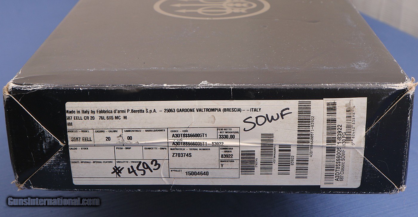 Description: Spectacular Wood - with Round Knob Pistol Grip ! Unique Engraving Motif ! 2015 - Beretta - 687EELL Classic - Special Operations Warrior Foundation - Limited 96 of 100 - - 20ga, 3", 29-1/2" Mobilchoke, LOP 14-5/8, Drop 1-1/4 to 2", Very Slight Cast Off, Weight 6 lbs 5 oz. Appears to be New - Unfired. Shipping to CONUS included in price. PLEASE SEE MY OTHER LISTINGS - I will consider trades on any item, and I am not averse to paying if your trade is more valuable than my listed item. Three day inspection always honored. All Federal and State laws apply. No credit cards. Any Tennessee buyer will have to arrange for transfer through another dealer who will have to collect sales tax on the transaction. PLEASE NOTE THE FOLLOWING: No credit cards. I do not have a retail business location. Therefore, any Tennessee buyer will have to arrange for transfer through another dealer, and will have to pay SALES TAX on the transaction. SOLD |
