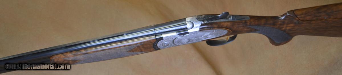Description: Beretta 687EELL Diamond Pigeon 20GA with 28" factory Mobil choked barrels. Features engraved side-plates with game scenes and scrolls. Pistol grip stock with aftermarket adj. comb and adj. plate installed to 13 1/2" LOP. Minor handling marks in wood, some minor bluing wear. Includes factory case and chokes. SOLD |