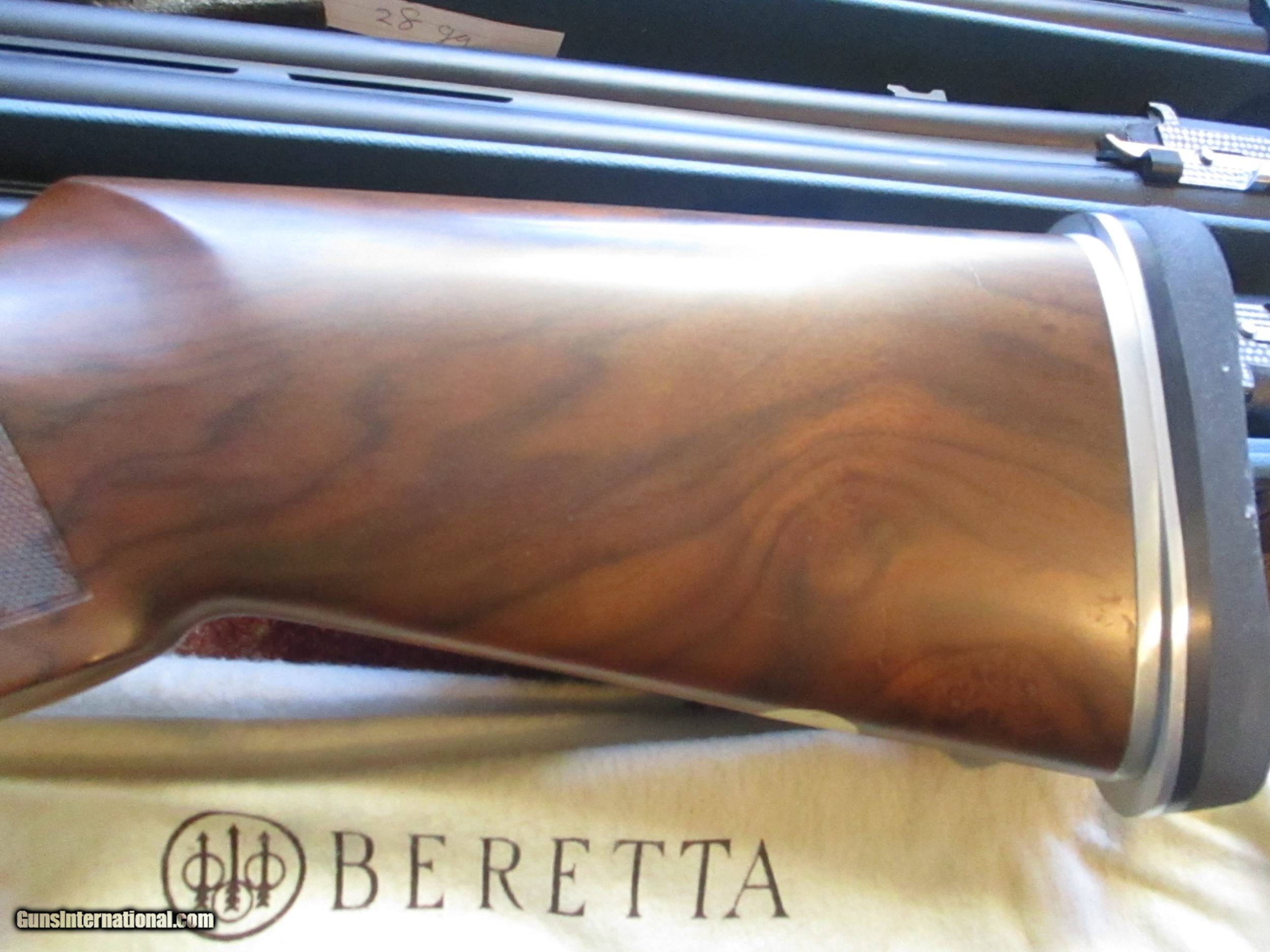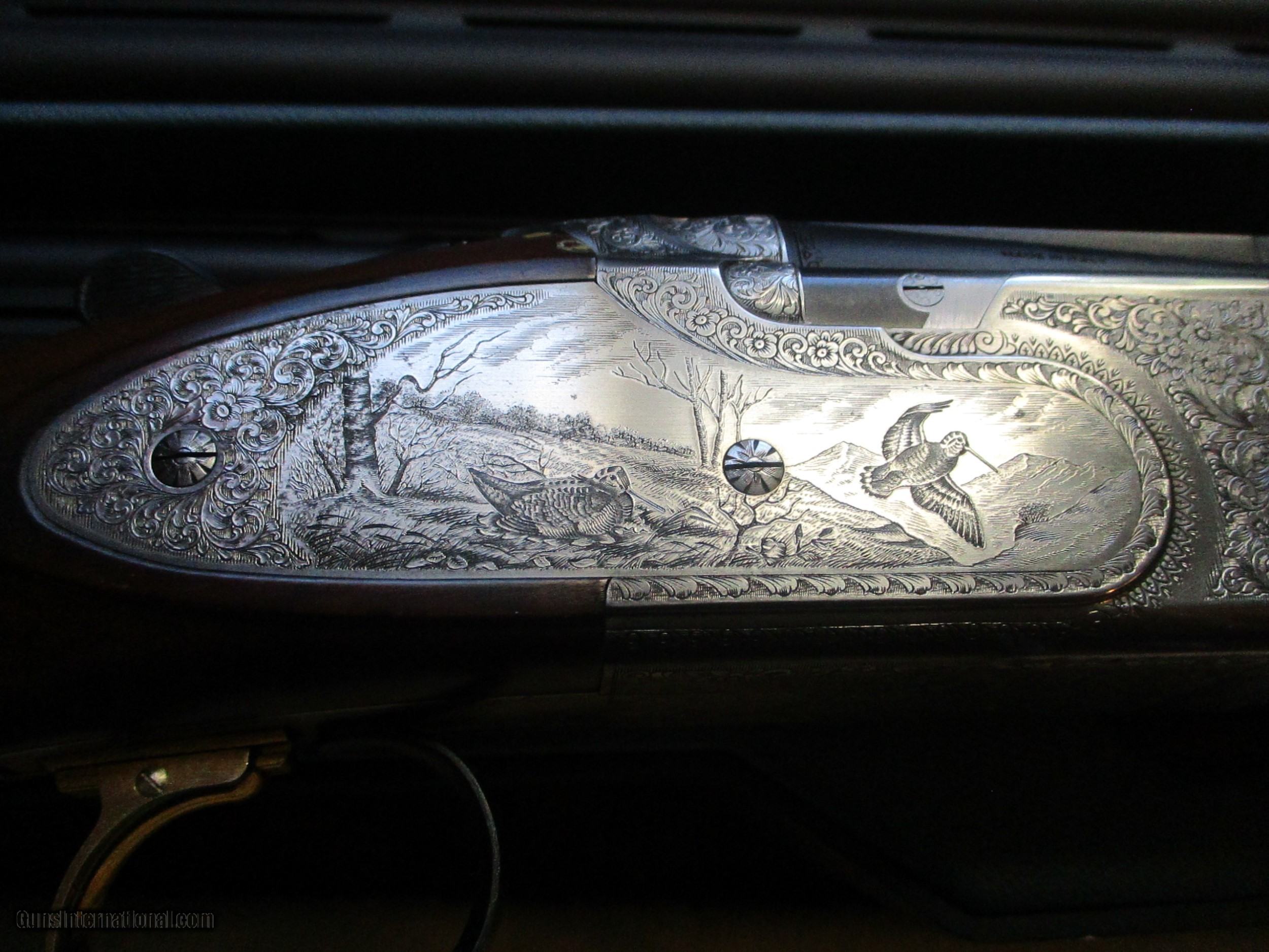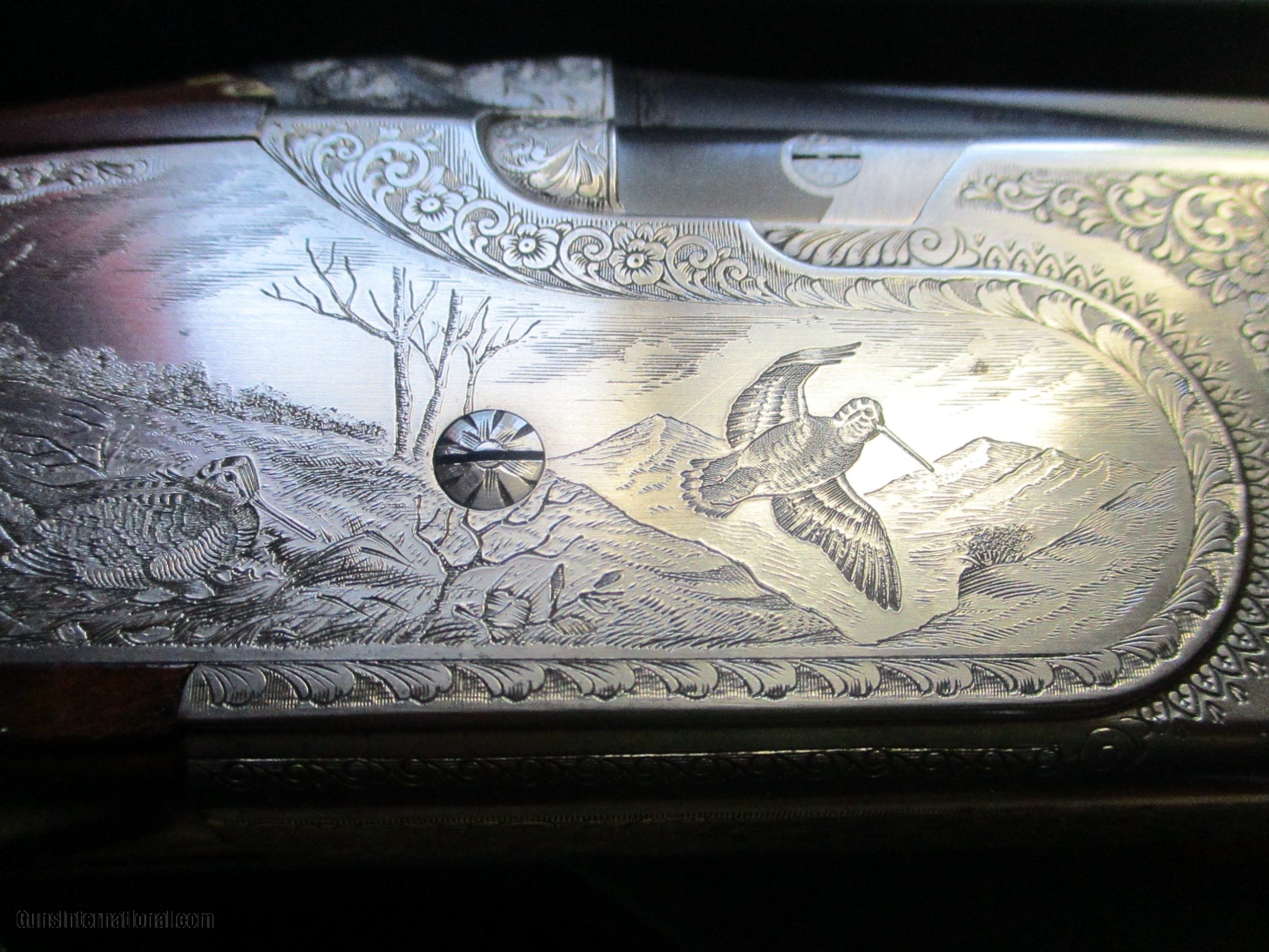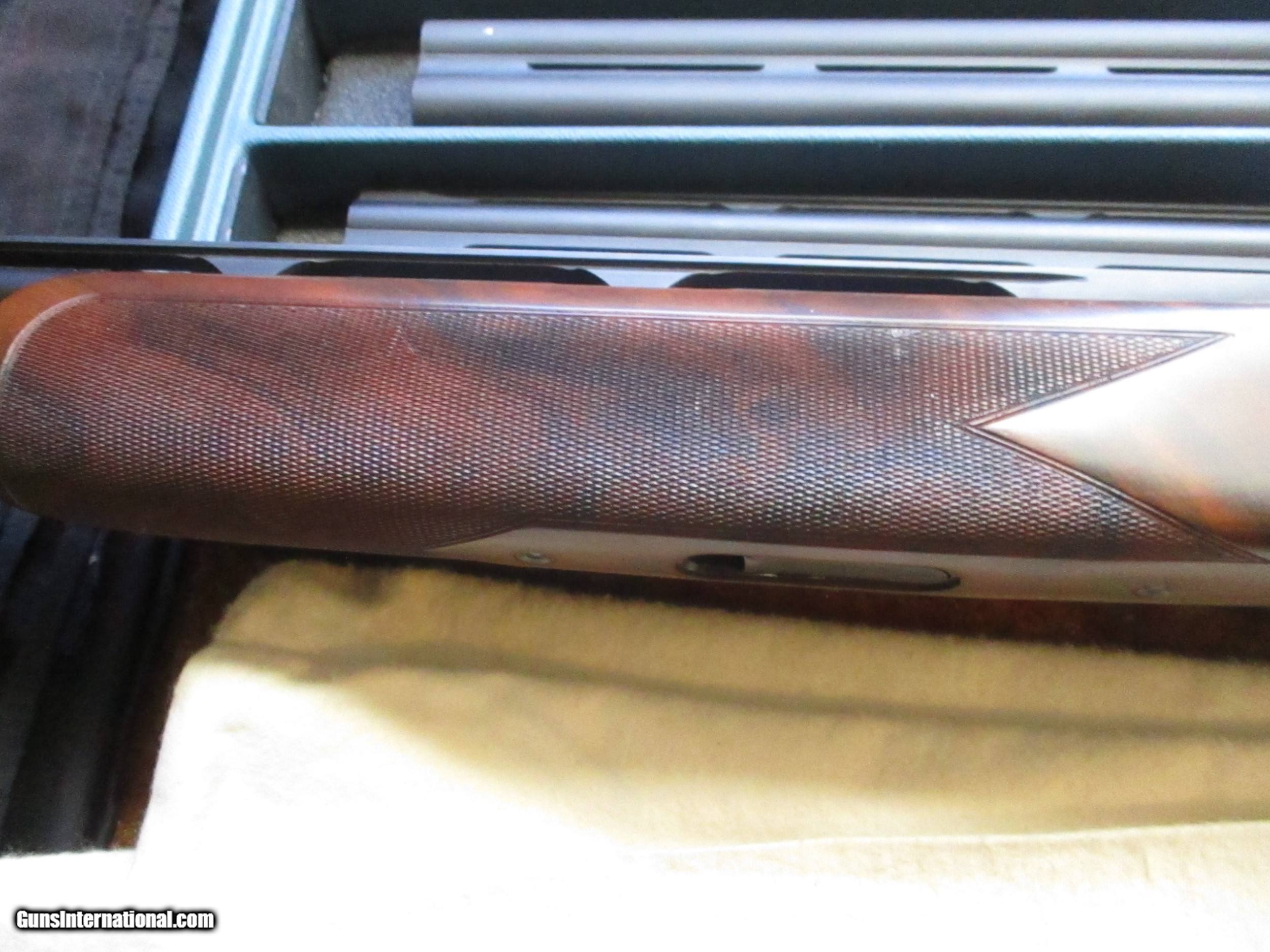 Description: all bbls, double bead bbls., all bbls. 28" VR, choked SB/SB, 12 ga has 2 bbls (#1bbl. 28"- extra matched factory bbl. 30" with Beretta MC system), single select trigger, ejectors, special select oil finished stock & forearm, extra engraving, adj. sporting pad from 14 1/2" to 15 1/2" with adj. tool, 8 1/2lbs, manual, info & Beretta hard case, very scarce shotgun in 99%+ as new condition: SOLD |