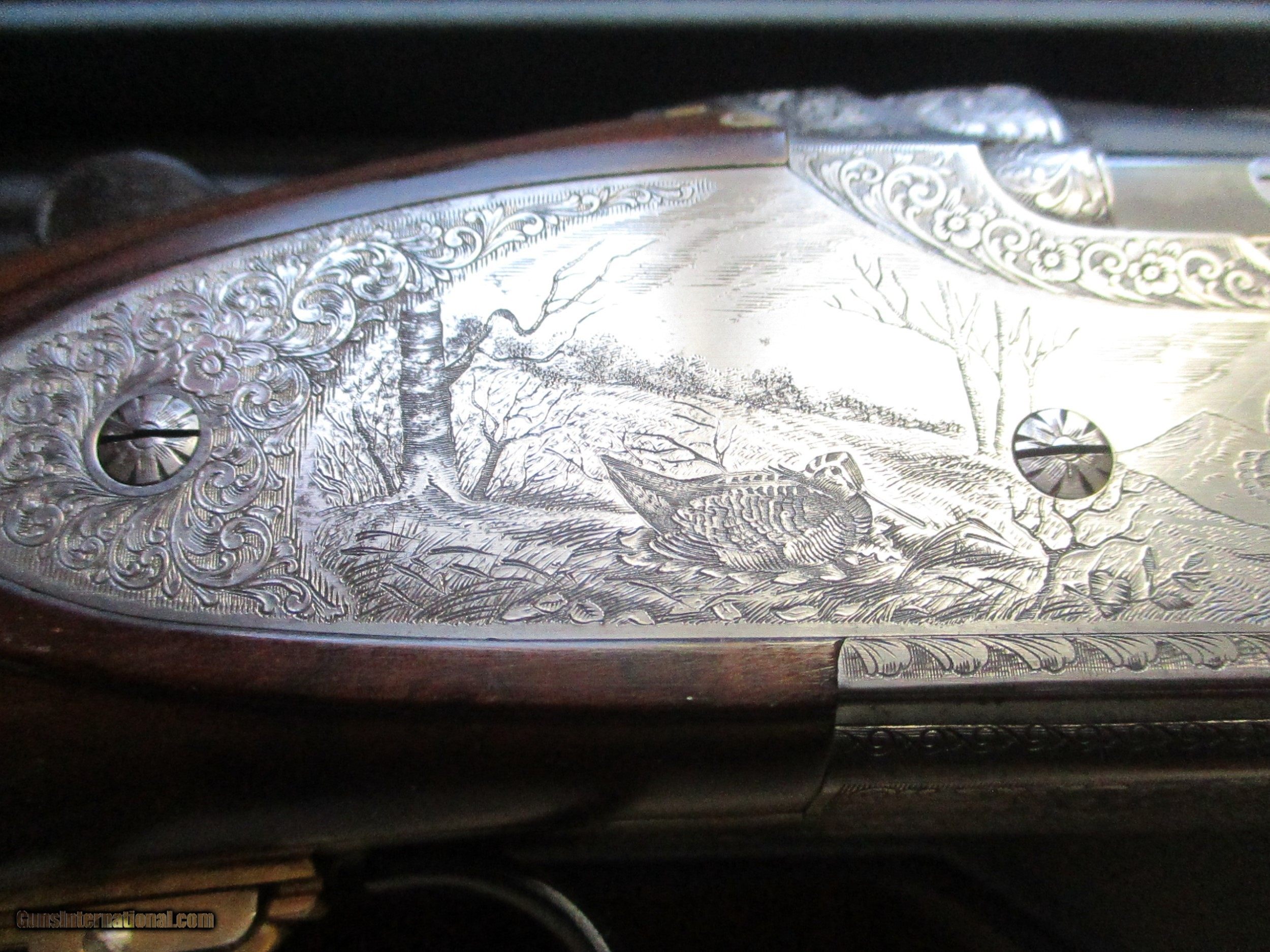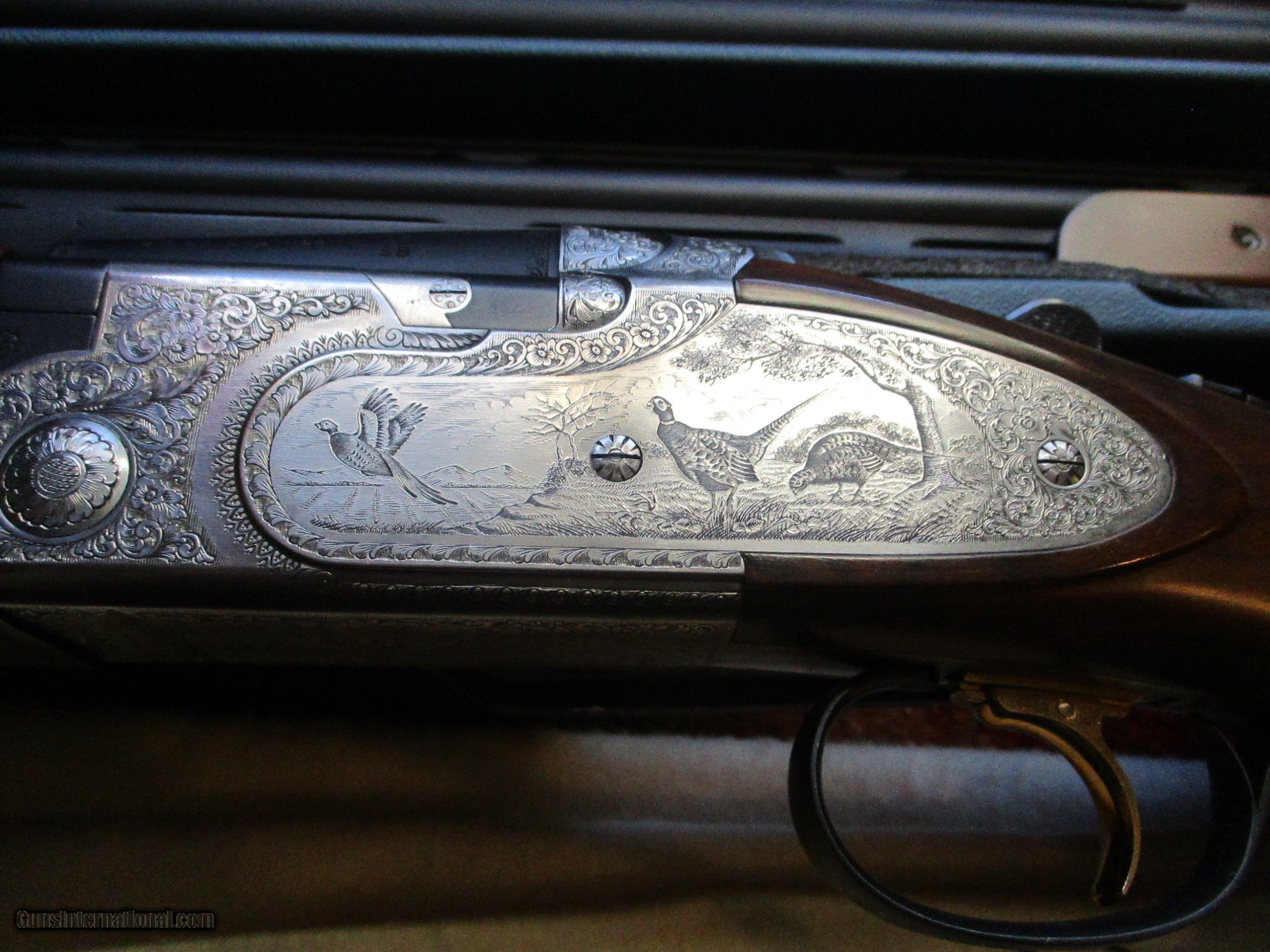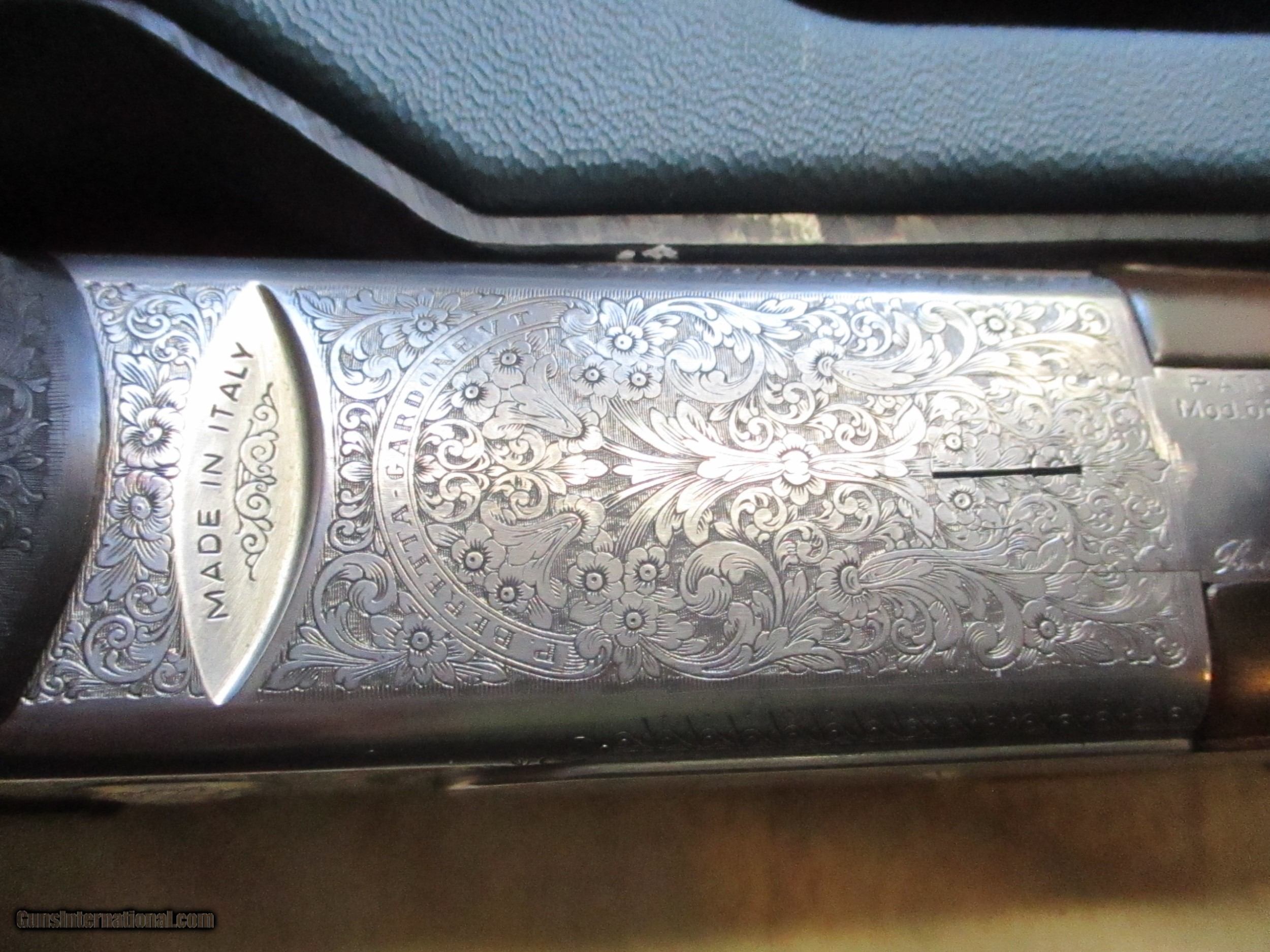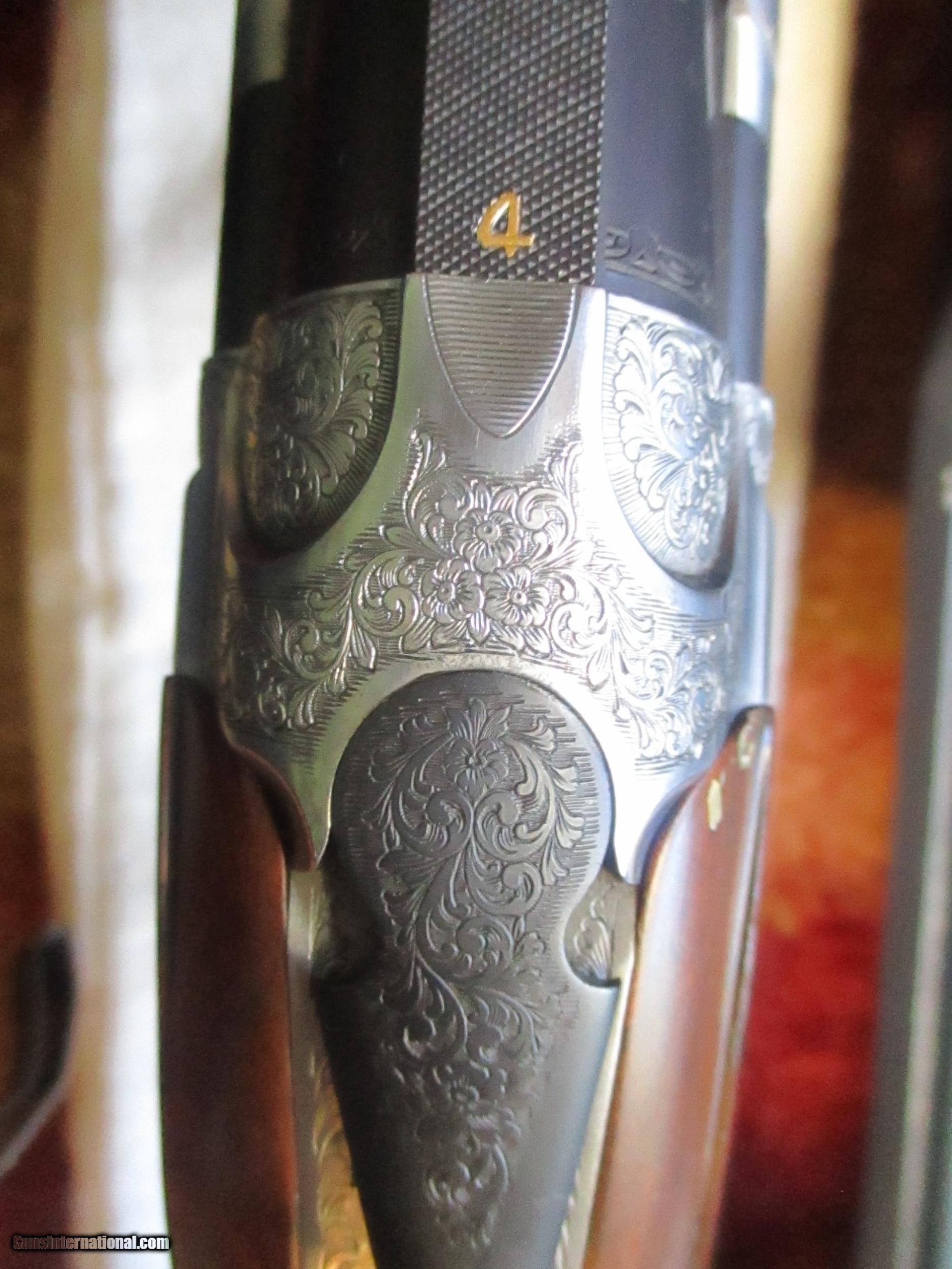 Description: all bbls, double bead bbls., all bbls. 28" VR, choked SB/SB, 12 ga has 2 bbls (#1bbl. 28"- extra matched factory bbl. 30" with Beretta MC system), single select trigger, ejectors, special select oil finished stock & forearm, extra engraving, adj. sporting pad from 14 1/2" to 15 1/2" with adj. tool, 8 1/2lbs, manual, info & Beretta hard case, very scarce shotgun in 99%+ as new condition: SOLD |