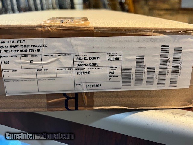 SOLD Shotgun Gauge: 12 Gauge Manufacturer: Beretta Model: 688 BFAST Left Serial Number: L00729X Barrel Length: 32 Condition: NEW |