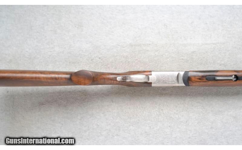 Description: This Beretta Model 690 III is an over and under shotgun in 12 Ga. It has 26 inch barrels with ejectors and a top barrel ventilated rib. A metal bead front sight. With 3 inch chambers it comes with choke tubes. It has a Single Select Trigger. The butt stock is a checkered grip walnut pistol grip. The forearm is a checkered grip walnut. The coin finish receiver is very nicely engraved with game birds in flight in an outdoor scene. 12 Gauge SOLD Chambers: 3 inch. Metal Condition: Excellent. Wood Condition: Excellent. Bore Condition: "Clean, bright and shiny. Barrels: 26 inch barrels with ejectors and a top barrel ventilated rib. Triggers: SST Stock Dimensions: LOP 14 3/4 inches. DAC 1 1/2 inch. DAH 2 1/4 inch. Fore End: Checkered grip walnut. Butt Pad: Beretta black rubber recoil pad. Weight: 7 Lb. 6 Oz. Sights: Metal front bead. Chokes: Choke Tubes Item Location: Richfield, WI |
