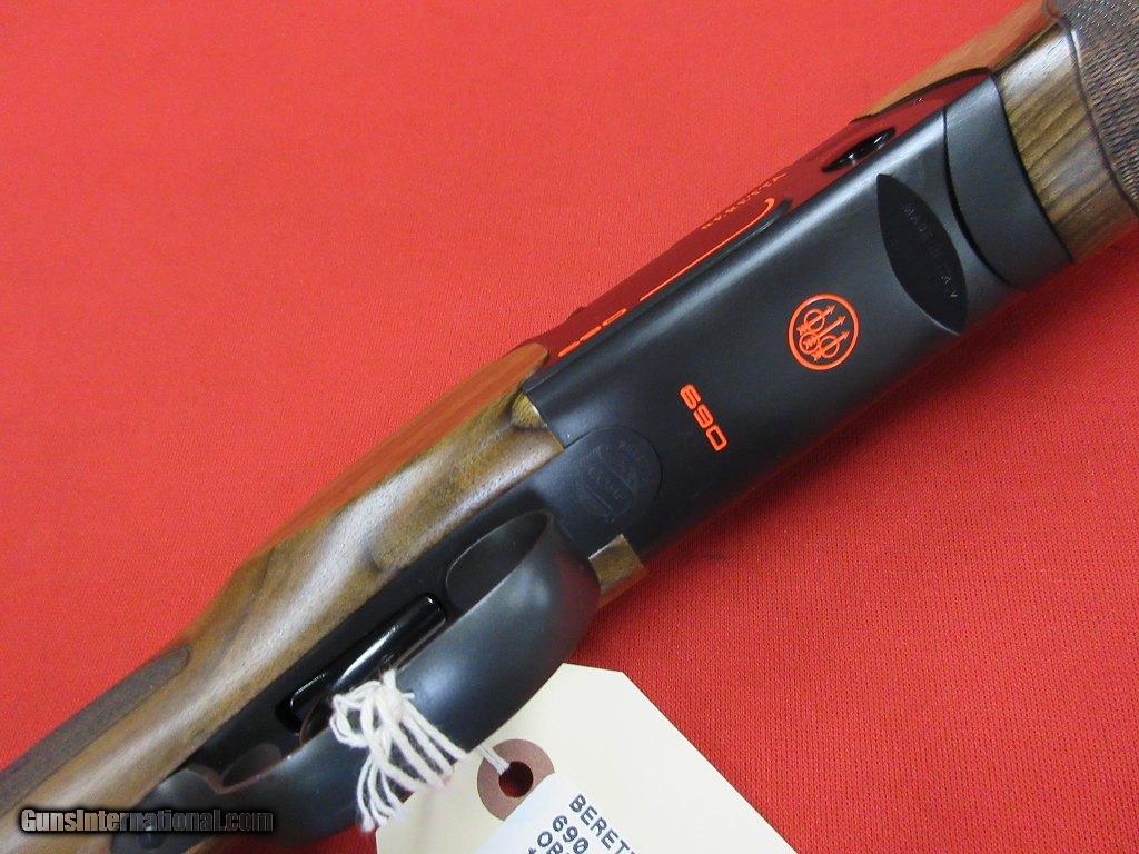 Description: Beretta 690 Sporting "Black Edition" 12ga/30" OBHP (NEW)-- The 690 Sporting Black Edition boasts a matte black finish on the receiver with orange accents, vented mid rib on the barrel, grade 2.5 walnut with an oil finish, schnable forend, Steelium barrels with lengthened forcing cones, selectable for ejection or extraction of fired hulls, over-molded top lever, flat rib with a 10mm X 8mm taper, selective manual safety, Microcore recoil pad, 5 extended Optima HP choke tubes, and a factory case. SOLD |