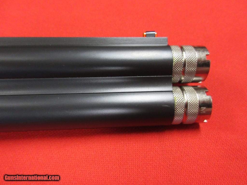 Description: Beretta 690 Sporting "Black Edition" 12ga/32" OBHP (NEW)-- New offering from Beretta: The 690 Sporting Black Edition boasts a matte black finish on the receiver with orange accents, vented mid rib on the barrel, grade 2.5 walnut with an oil finish, schnable forend, Steelium barrels with lengthened forcing cones, selectable for ejection or extraction of fired hulls, over-molded top lever, flat rib with a 10mm X 8mm taper, selective manual safety, Microcore recoil pad, 5 extended Optima HP choke tubes, and a factory case. SOLD |