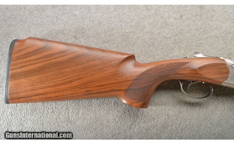 Description: The new Vittoria series is the first Beretta's shotgun specifically designed for women. Developed with Beretta's champion lady-shooters for all the women who want to shoot like a star. Based on the 690 platform, Vittoria shotguns feature a dedicated ergonomics to ensure a smooth, comfortable and precise handling. Vittoria shotguns perfectly fit smaller frames while offering full-size performance. While made for women shooters it will fit many smaller folks. This is a Beretta Certified Used Firearm with a Certificate of Inspection. The shotgun may have been a trade show gun or try gun, we do not know. This fine shotgun is as new and comes with a full mechanical warranty. There are no visible issues with this nice shotgun and it has the highest grade Y-1. 20 Gauge SOLD Chambers: 3" Over/under with ejectors. Metal Condition: Looks like new. Wood Condition: Excellent and new looking Bore Condition: Bright and shiny. Barrels: 28" blue OBHP steelium barrels with flush fit OCHP chokes. Triggers: Single selective. Stock Dimensions: 13 5/8" LOP. Fore End: Very nice walnut with fine checkering. Butt Pad: Checkered pistol grip with a Monte Carlo cheek and fine line checkering. Weight: 6 Lbs. 7 Oz. Sights: Comes with a full set of 5 OCHP flush fit chokes. Chokes: Comes with a full set of 5 OCHP flush fit chokes. Item Location: Owatonna, MN |